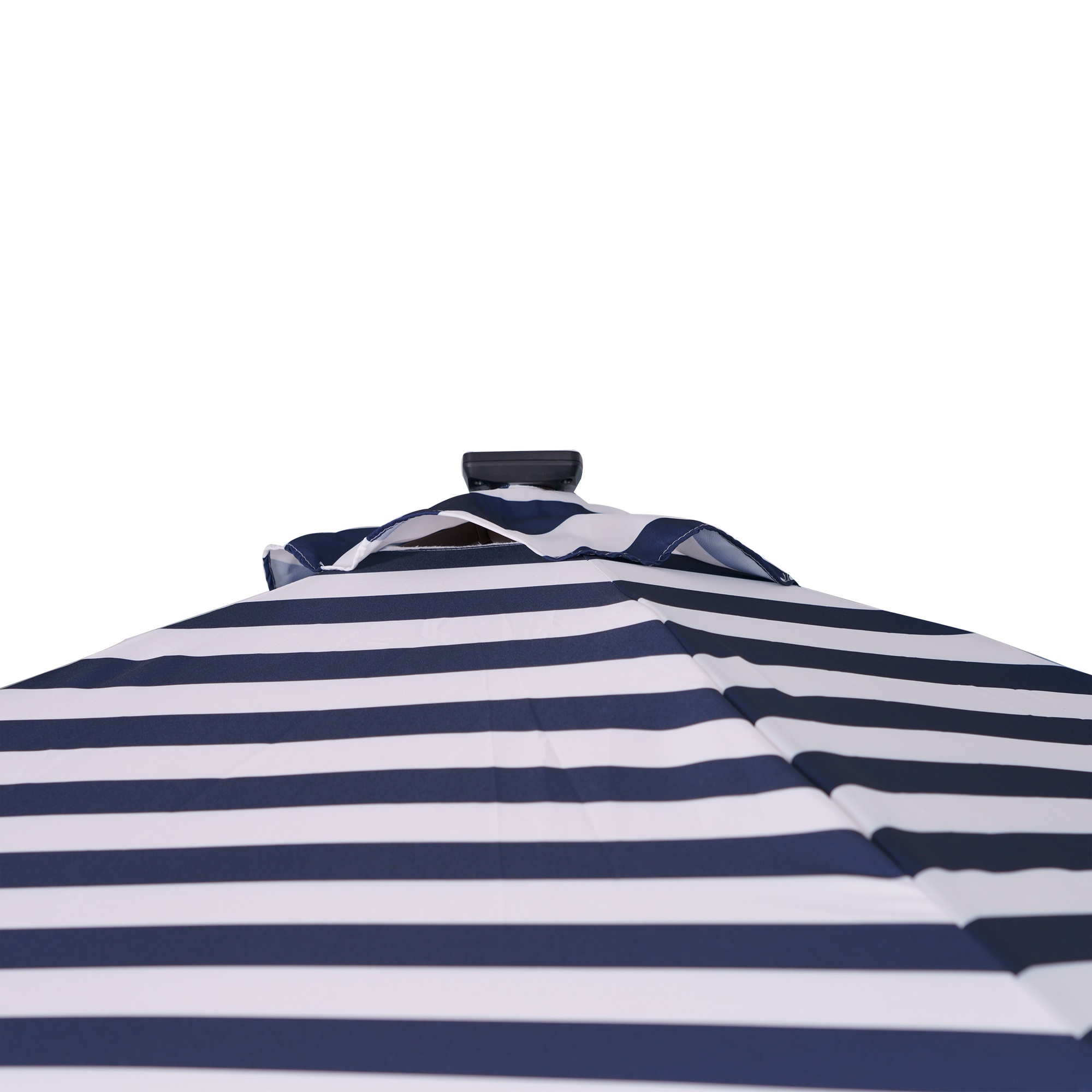 【Wind Vent】It has an air vent at the top to stop the wind pulling the parasol upwards. It also helps to keep you cool when you're sitting beneath the canopy while adding extra stability.