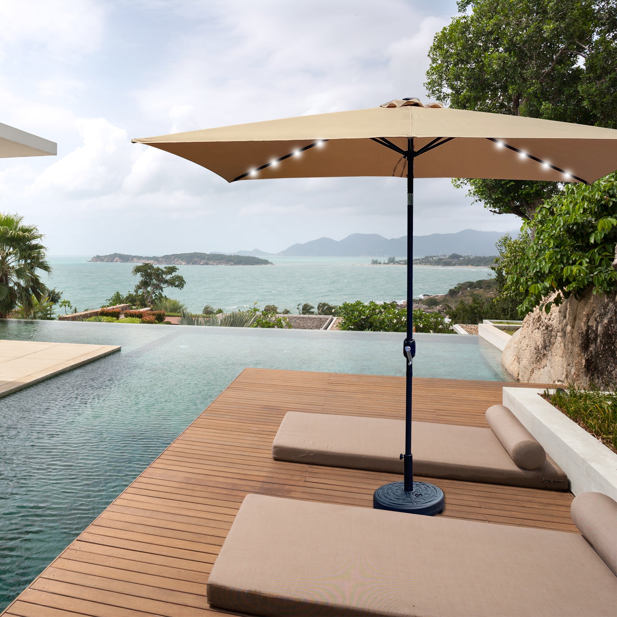 The unique 10x6.5ft rectangle umbrella is offers quite different feeling comparing to the round umbrella, and provides an extra wide range of shade for you to enjoy outdoor scenery and create a comfortable outdoor dining experience. Ideal for patio tables, patio, back yard, garden, porch, cafe, coffee shop, deck, beach, ranch, balcony and any outdoor area with shading & decorating needs