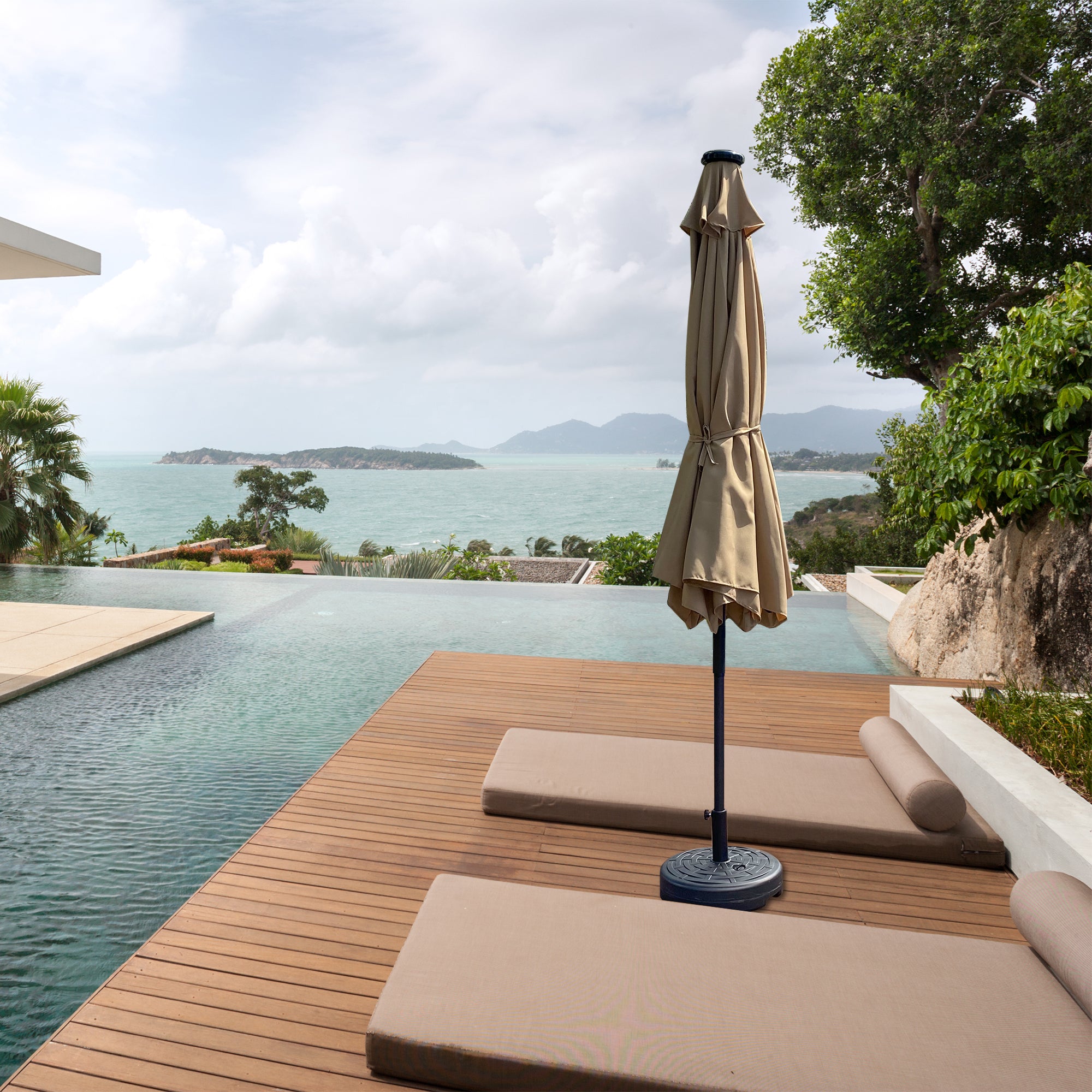Hand crank design allows opening & closing the umbrella with little effort. And handy tilt mechanism means you can angle the canopy to create the optimum amount of shade in seconds to block the sun from any angle at any time of the day. It is even easy to use for kids and the elderly.
