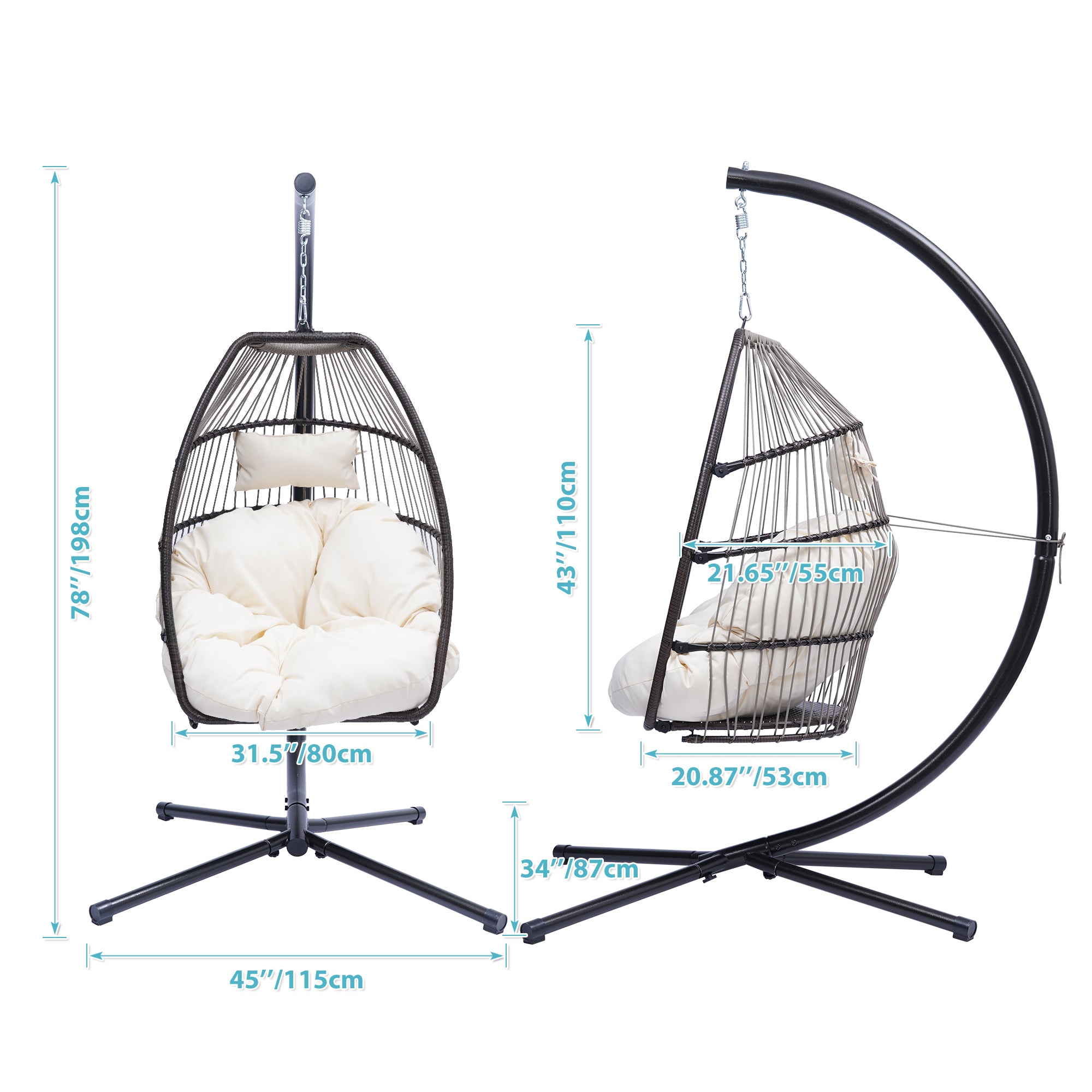 【Humanized Design】The seat cushion is thick enough that you will never feel the structure of the swing chair. Additional headrest pillow offers lounging comfort like nothing you’ve experienced before.The curved design of the back of the egg chair is in line with the comfort requirements of human body.The folding design of the chair makes it easy to store .
