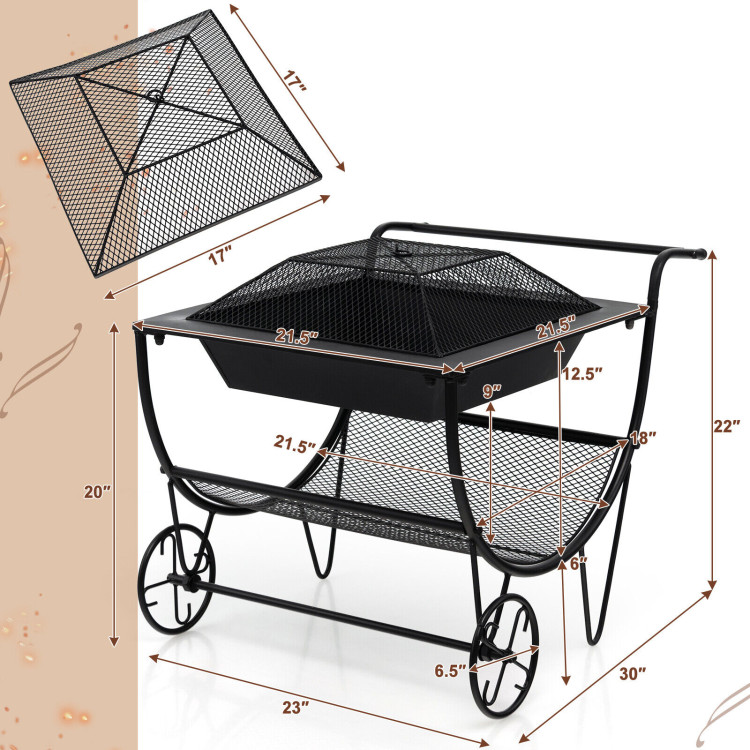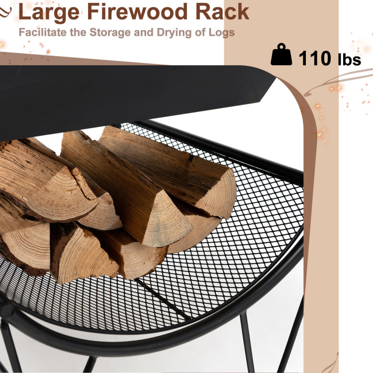 With 2 smooth and wear-resistant wheels, this firewood log rack allows you to move anyplace without hassle. And then, you can put the logs on the firewood rack for easy access so that if the fire pit above needs to be refilled with logs, all you need to do is get them from the rack. During burning, the mesh spark screen avoids embers from flying out while promoting air circulation to make the flame burn more vigorously. In addition to the winter use, this fire pit is suitable for summer as well because it can be used as an ice bucket to cool your drinks. No matter what kind of weather is it, the high-temp resistant and rustproof steel frame ensures this fireplace has high durability outdoors.