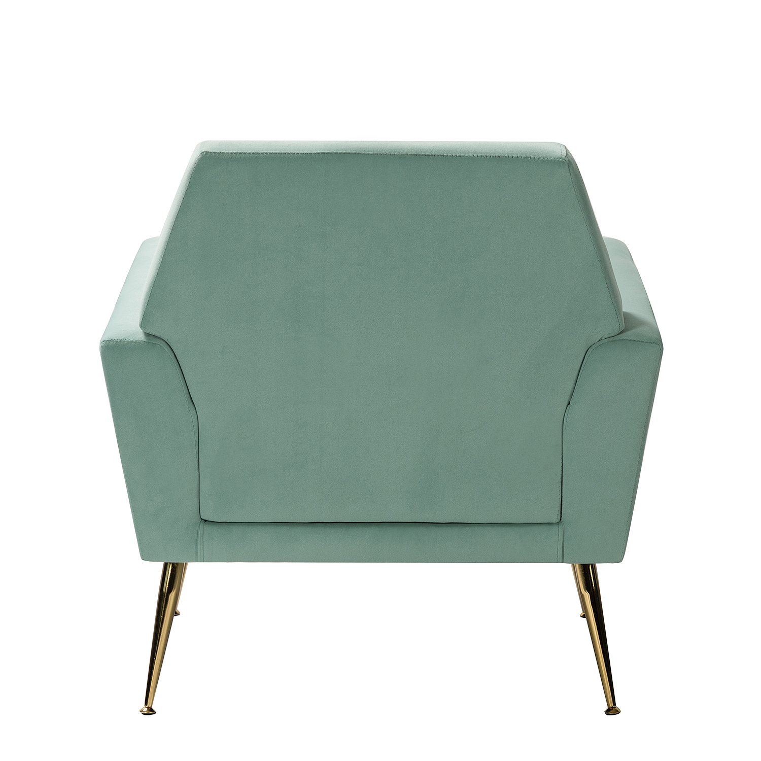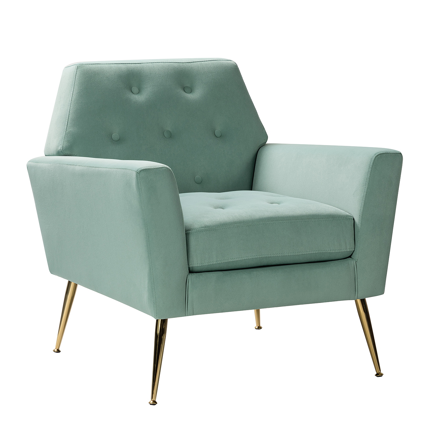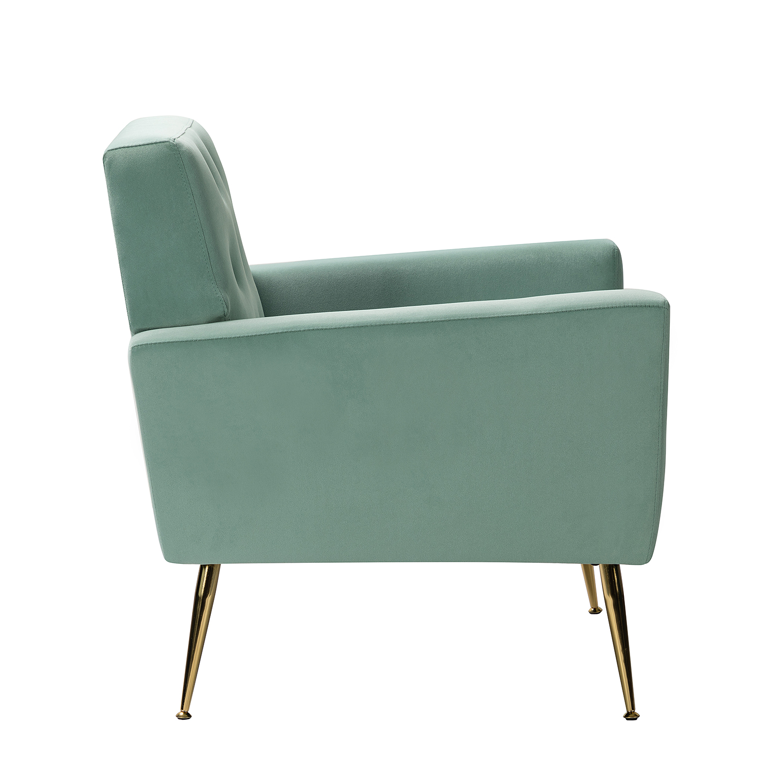 The perfect contemporary-look piece to complete your home decor with its vivid color palettes, this attractive solid and manufactured wooden frame armchair has it all: style, comfort, and durability. With slender polished golden metal legs and unique geometrical-shaped back design, this modern work of art boasts a charming sharp silhouette and showcases an approachable aesthetic while the button-tufted backrest and seatrest adds a touch of elegance to it. Built-in s-spring with medium-density foam filling are upholstered in a skin-touch friendly velvet fabric that gives you a sense of comfort and is suitable for all kinds of living room decoration. Incorporating the modern and classic style perfectly in a gentle appeal, this accent armchair offers wonderful enjoyment as you curl up with a cup of chamomile or relax with your latest read. It's the perfect pick for the living room, office room and bedroom.