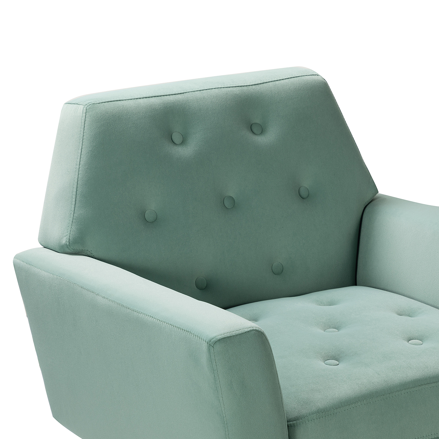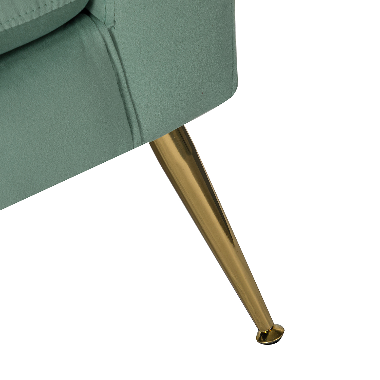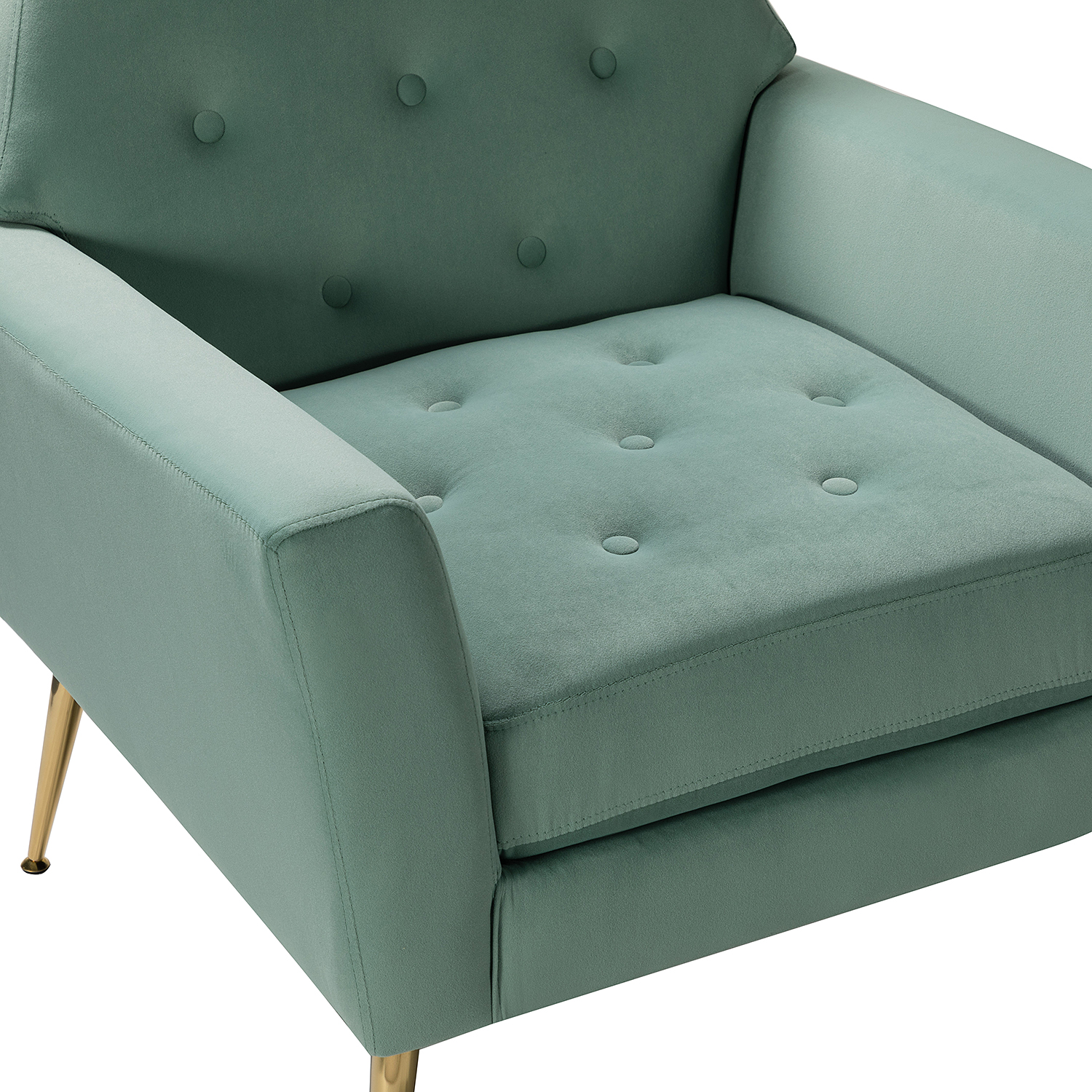 The perfect contemporary-look piece to complete your home decor with its vivid color palettes, this attractive solid and manufactured wooden frame armchair has it all: style, comfort, and durability. With slender polished golden metal legs and unique geometrical-shaped back design, this modern work of art boasts a charming sharp silhouette and showcases an approachable aesthetic while the button-tufted backrest and seatrest adds a touch of elegance to it. Built-in s-spring with medium-density foam filling are upholstered in a skin-touch friendly velvet fabric that gives you a sense of comfort and is suitable for all kinds of living room decoration. Incorporating the modern and classic style perfectly in a gentle appeal, this accent armchair offers wonderful enjoyment as you curl up with a cup of chamomile or relax with your latest read. It's the perfect pick for the living room, office room and bedroom.