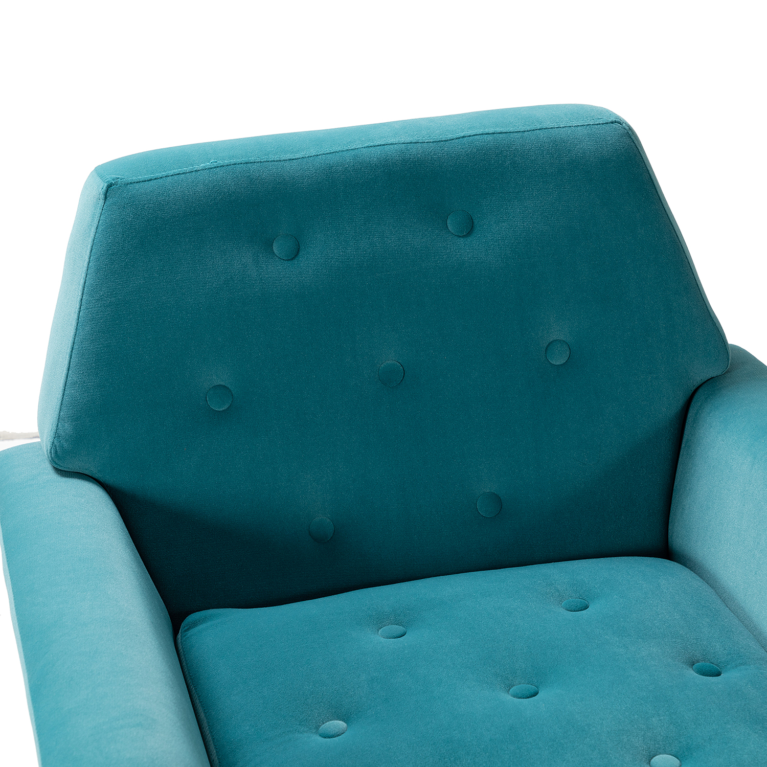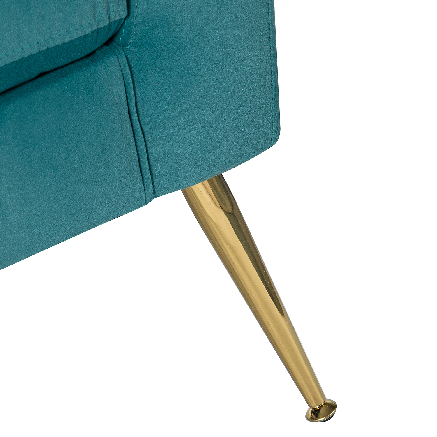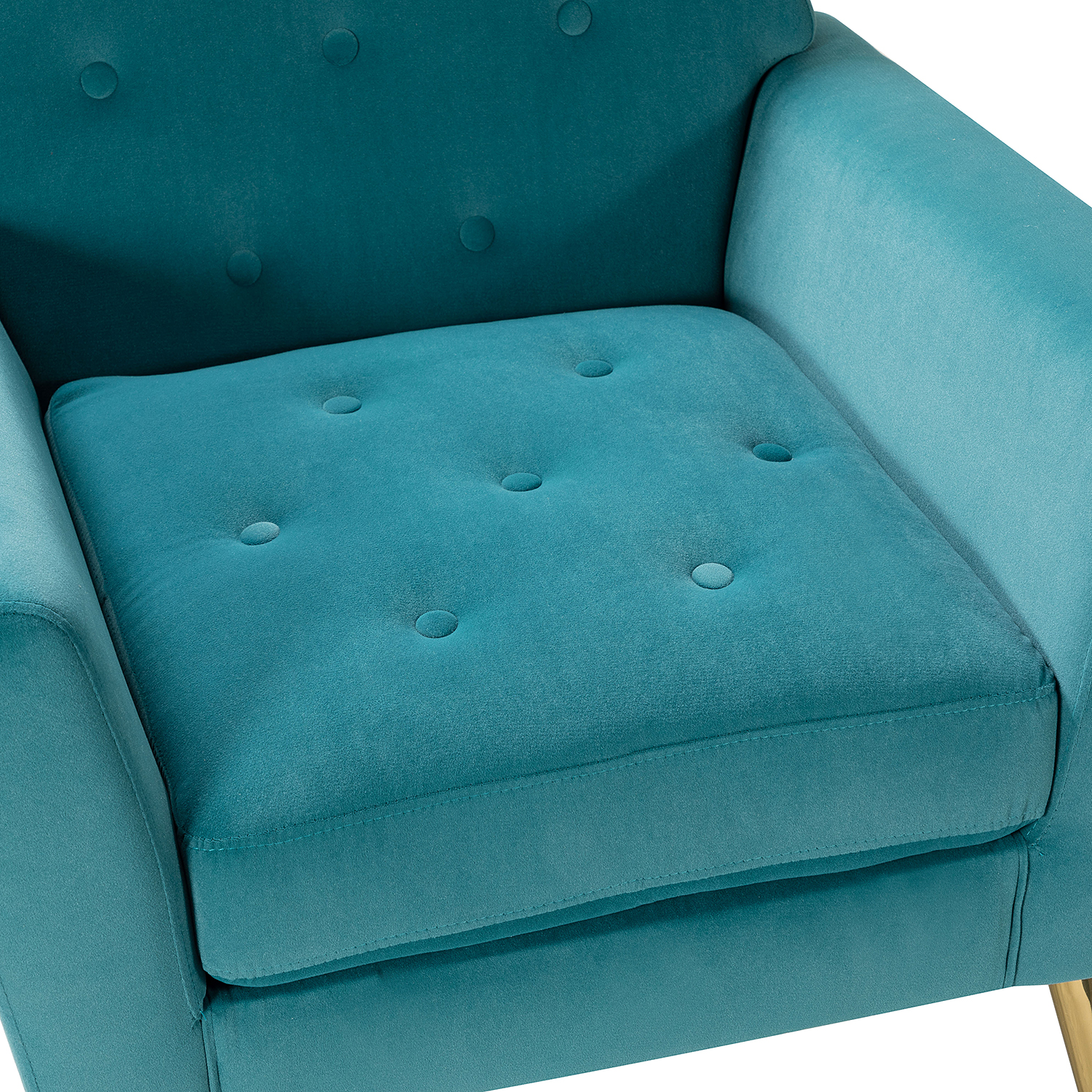 The perfect contemporary-look piece to complete your home decor with its vivid color palettes, this attractive solid and manufactured wooden frame armchair has it all: style, comfort, and durability. With slender polished golden metal legs and unique geometrical-shaped back design, this modern work of art boasts a charming sharp silhouette and showcases an approachable aesthetic while the button-tufted backrest and seatrest adds a touch of elegance to it. Built-in s-spring with medium-density foam filling are upholstered in a skin-touch friendly velvet fabric that gives you a sense of comfort and is suitable for all kinds of living room decoration. Incorporating the modern and classic style perfectly in a gentle appeal, this accent armchair offers wonderful enjoyment as you curl up with a cup of chamomile or relax with your latest read. It's the perfect pick for the living room, office room and bedroom.