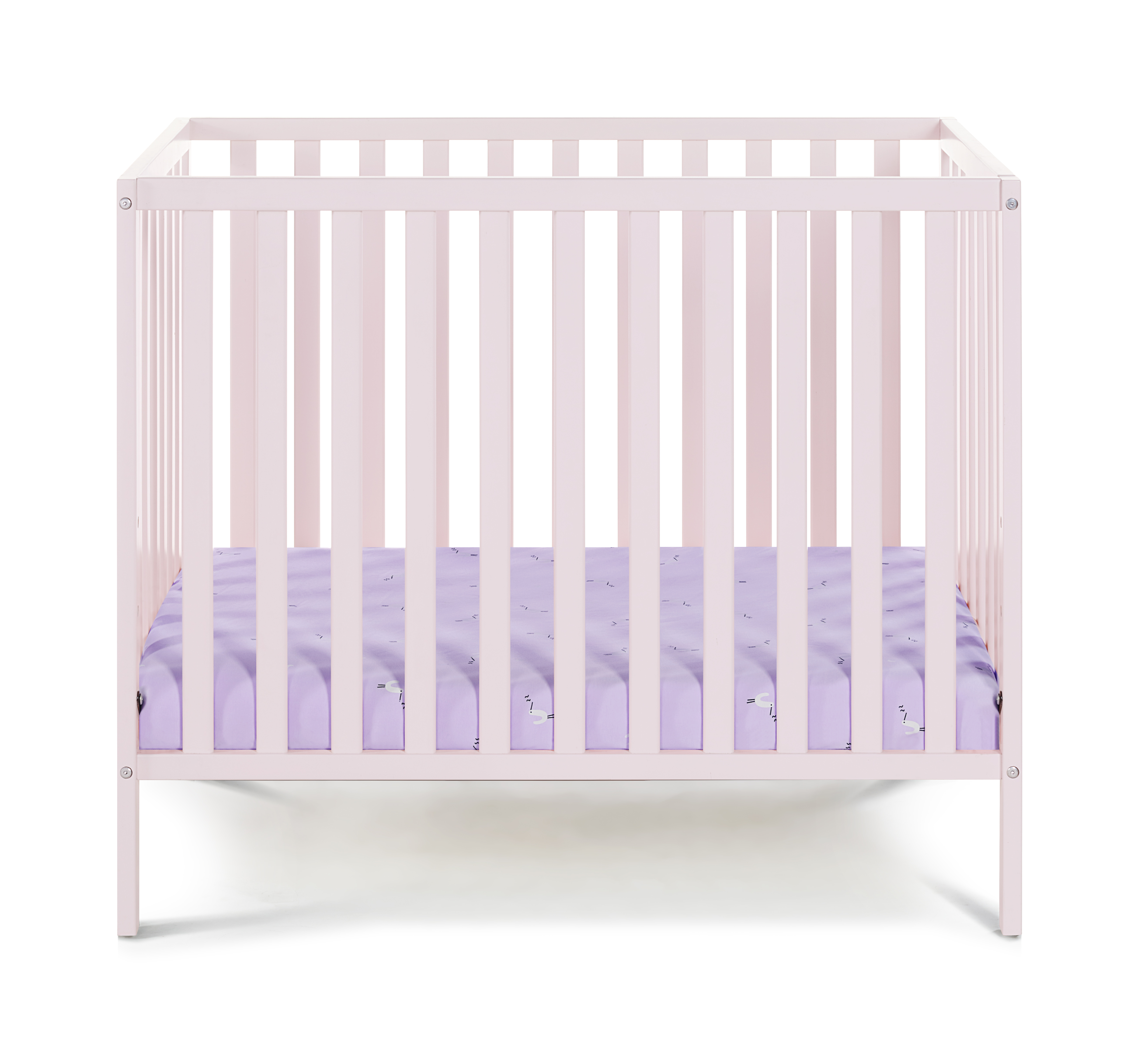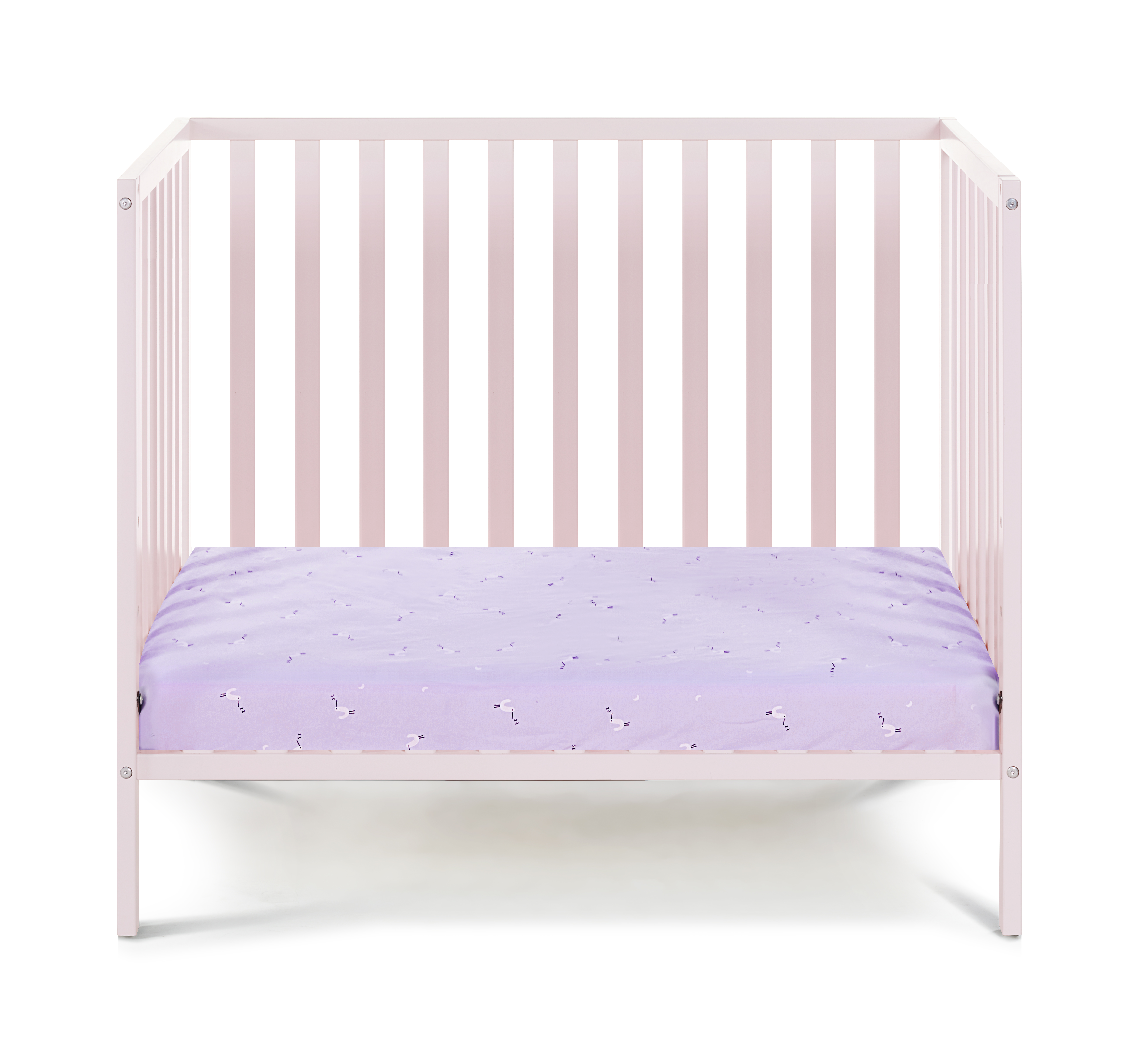 The Palmer mini crib is the “mini” version of one of our most popular island cribs, the Palmer. Clean simple lines that coordinate with any nursery décor, and very attractive price-point, ensures the Palmer Mini crib to be a sure bet! Whether using for grandparent’s home, or just a small space the Palmer mini crib is the answer. The Palmer mini crib is a 3-n-1 design as you can convert to a day bed with the purchase of separate stabilizer bar as well as convert to a twin bed with the purchase of a standardized mattress support. Color is Pastel Pink.