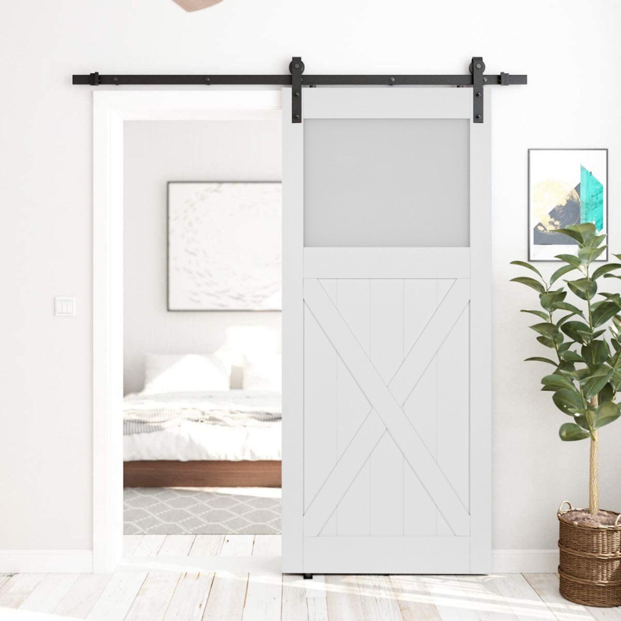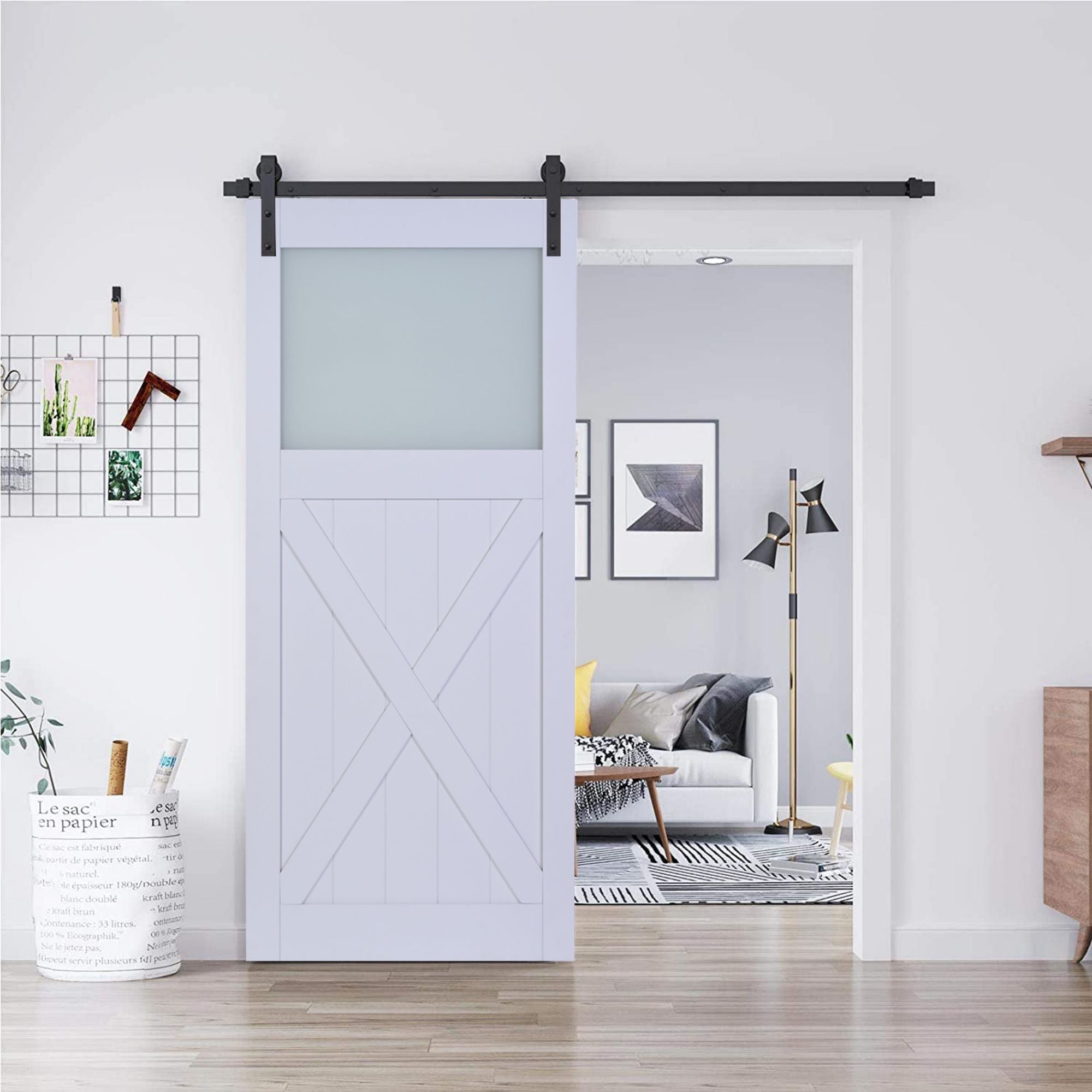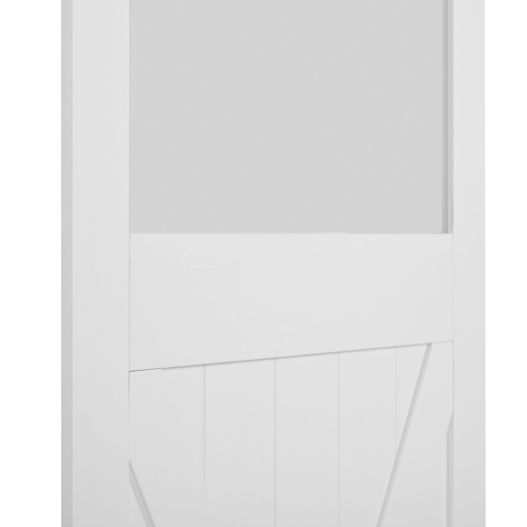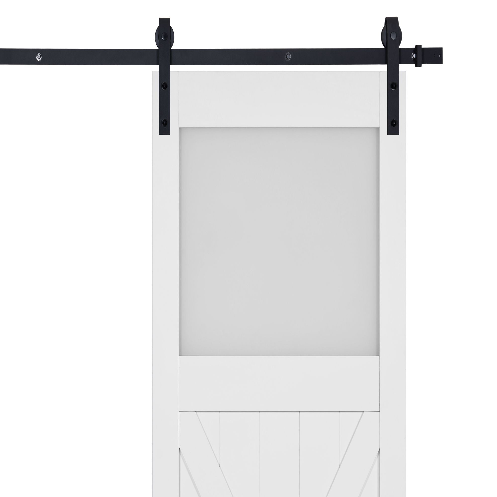 Paneled Manufactured Wood and Glass X Shape Barn Door with Installation Hardware Kit