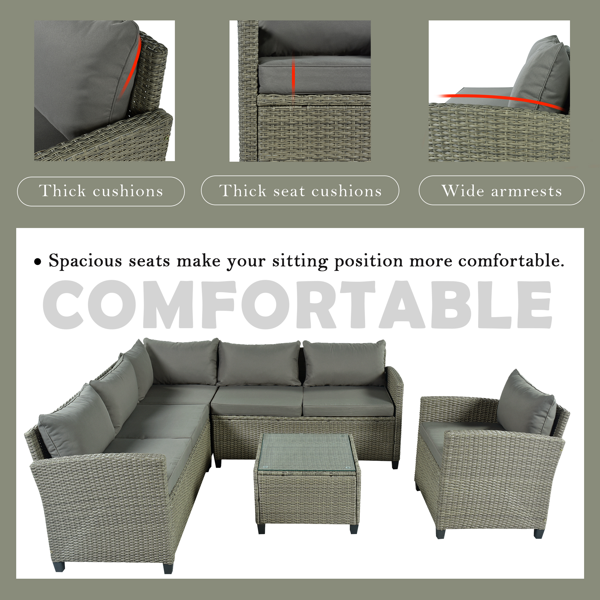Cushions Included: Include 6 seat cushions and 7 back cushions