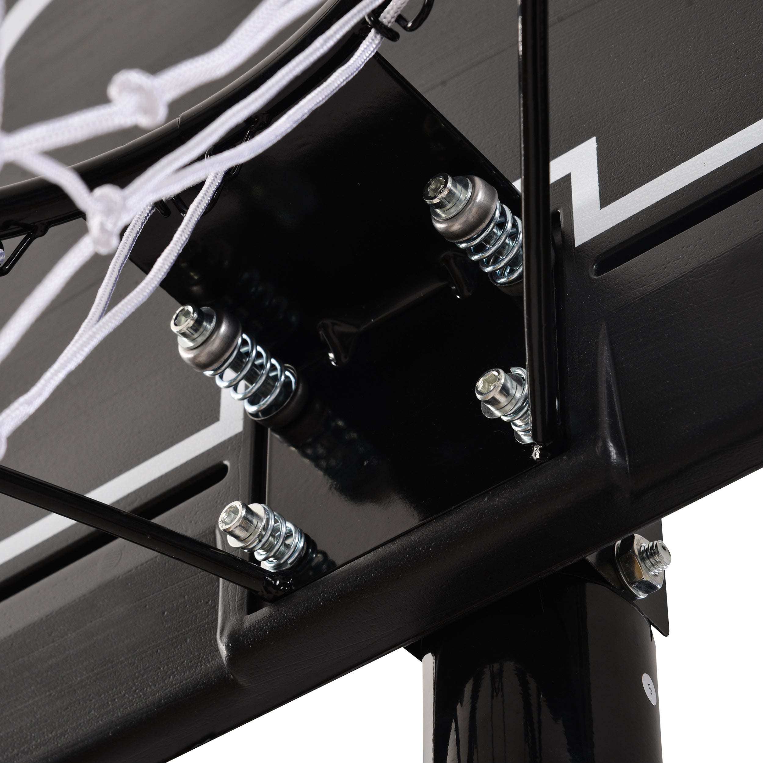 Pro-style four-spring breakaway basketball rim holds up well against the force of emphatic slams.