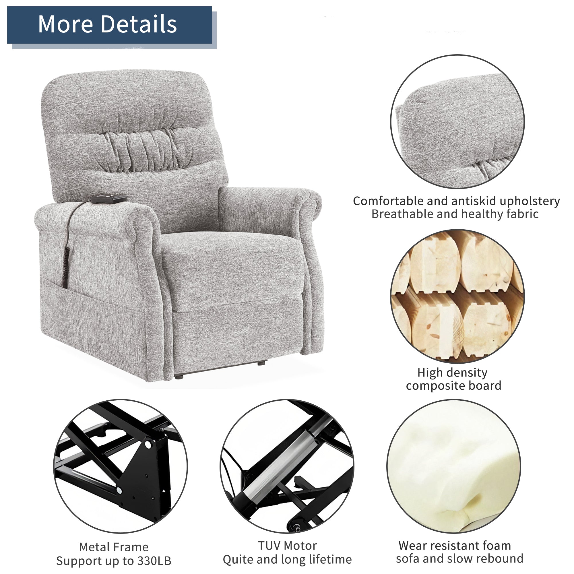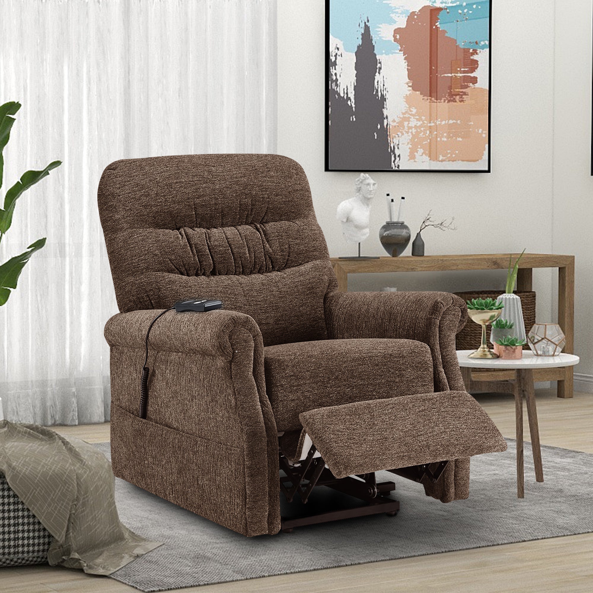 Sturdy and Functional Power Lift Recliner: Modern style and functionality merge together with single motor and heavy duty mechanism, lay back or lift and tilt to stand, smoothly adjust to any customized position which provide ultimate lounging experience.