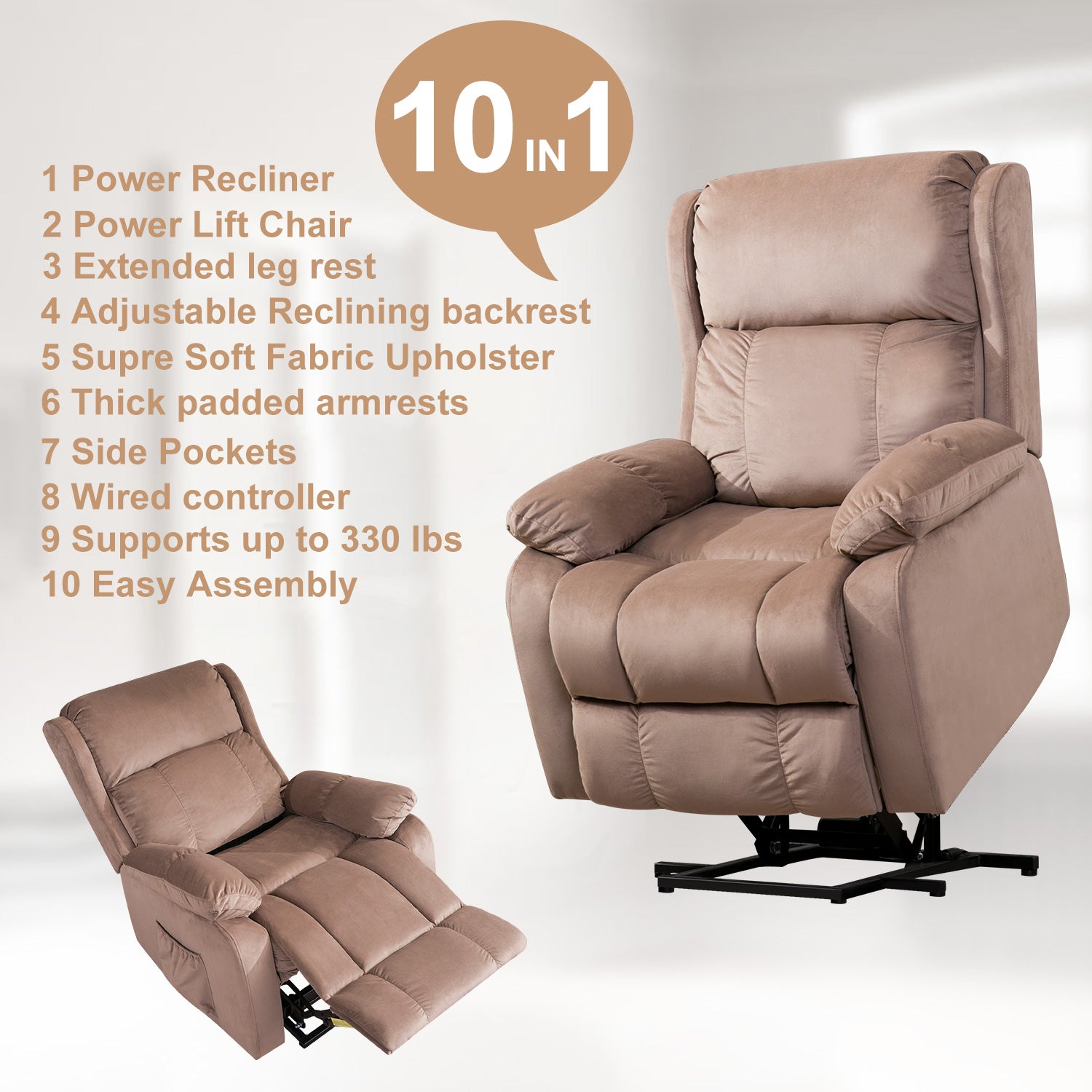 Power Lift Chair Soft Fabric Upholstery Recliner with Remote Control