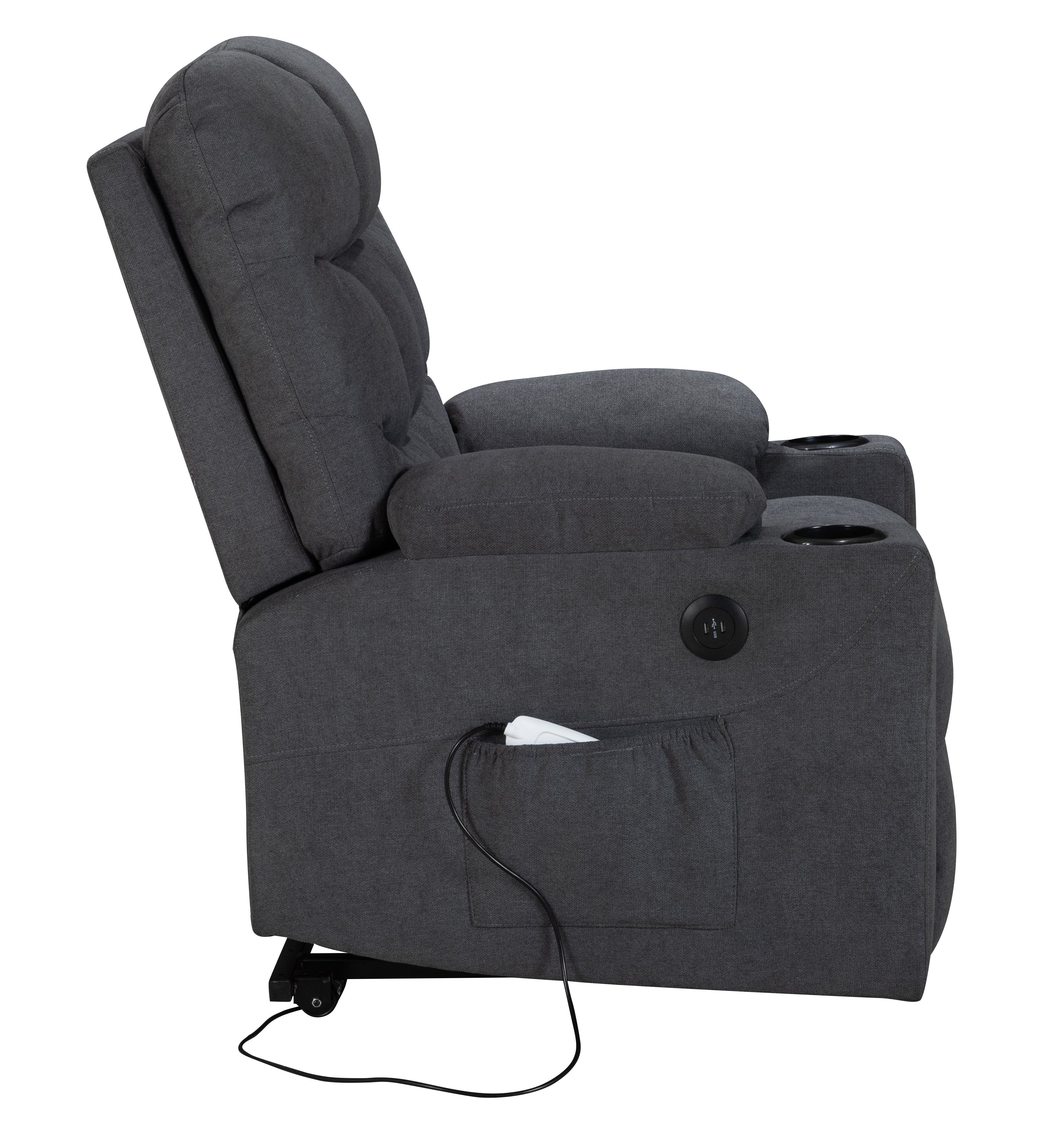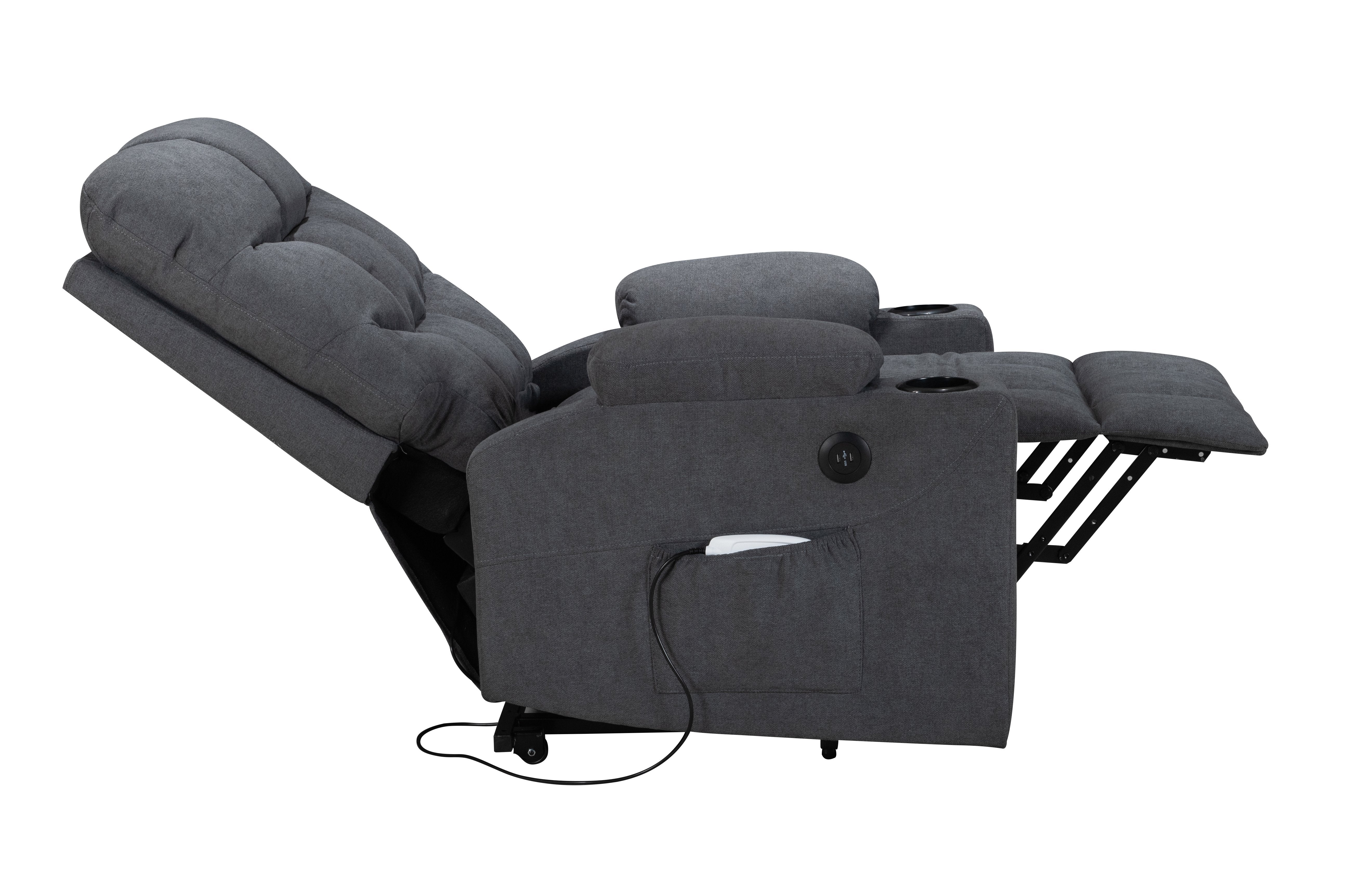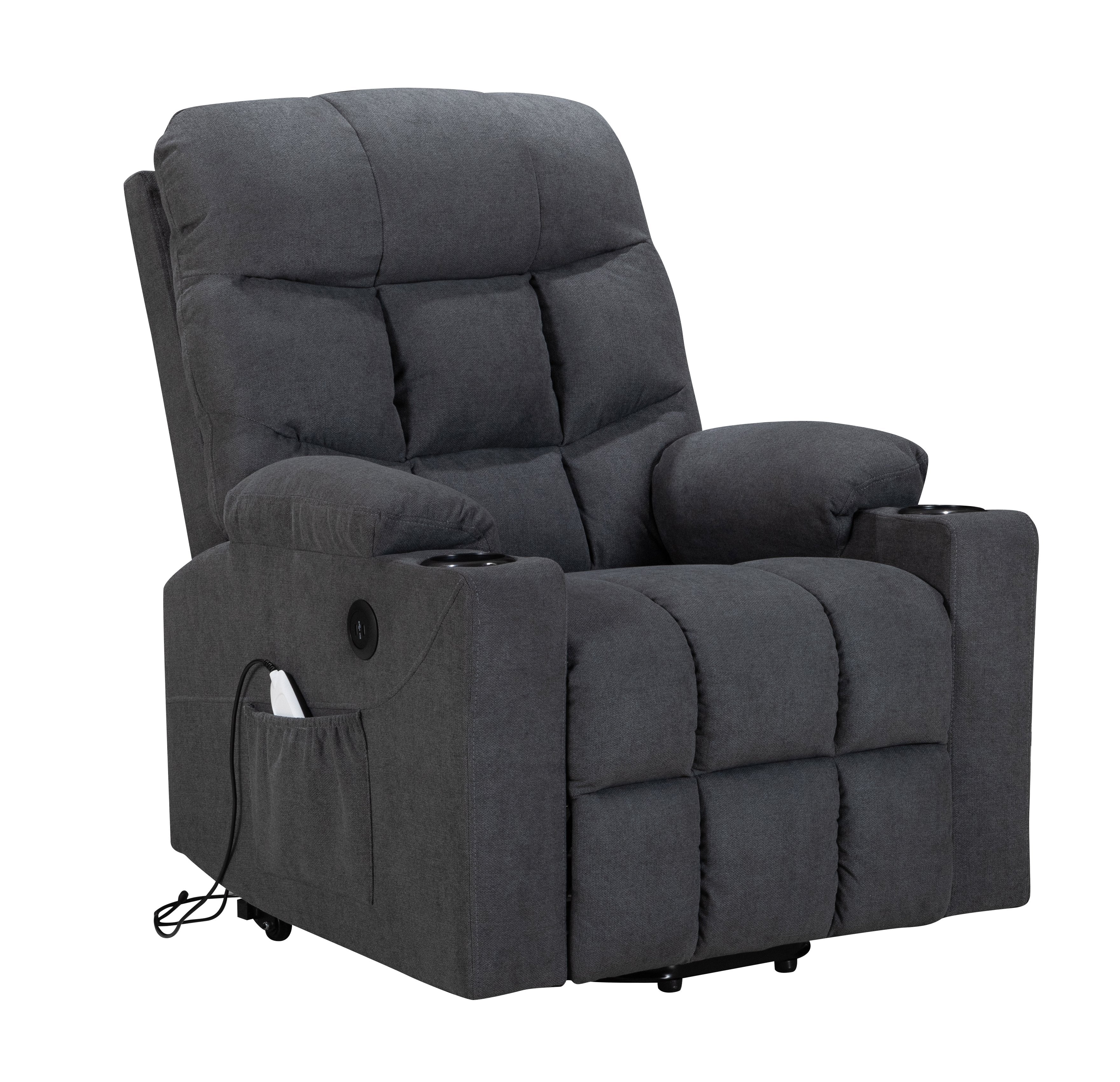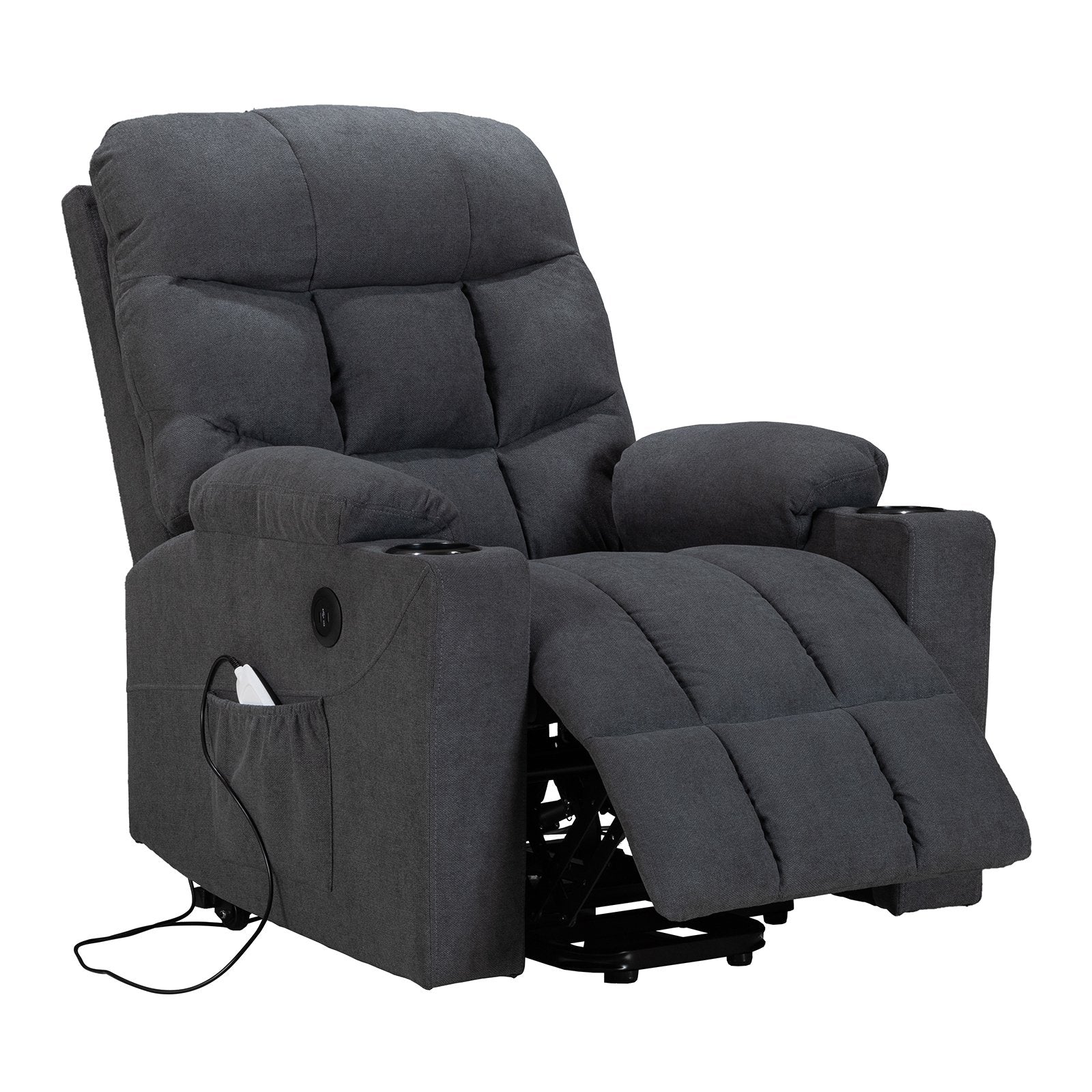 Power Lift Recliner for Elderly, Heated and Massage, with Cup Holders and Two Side Pocket, USB Ports