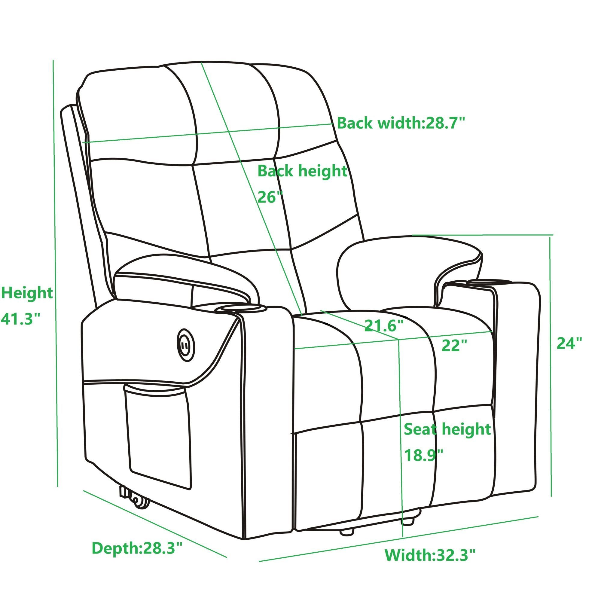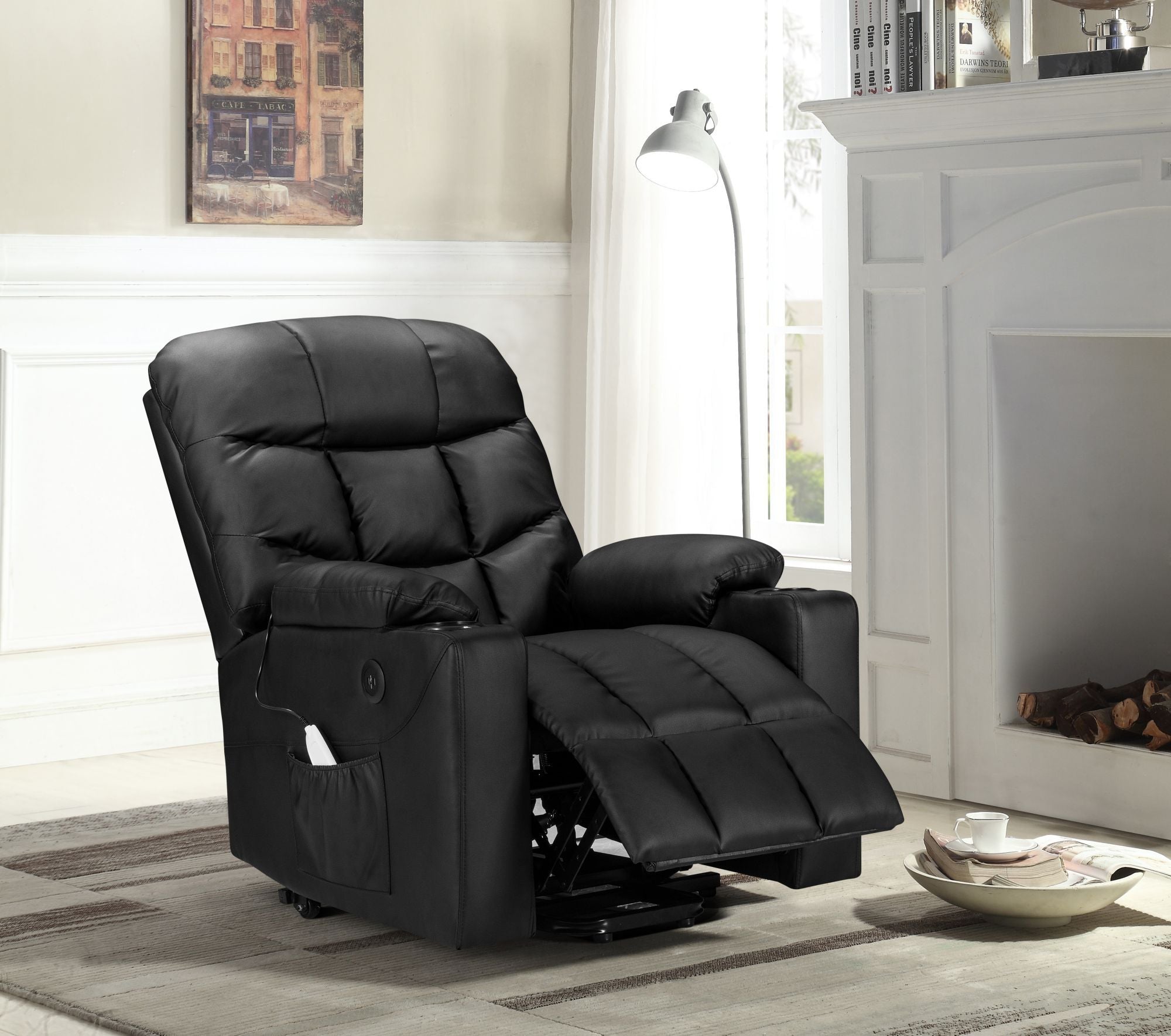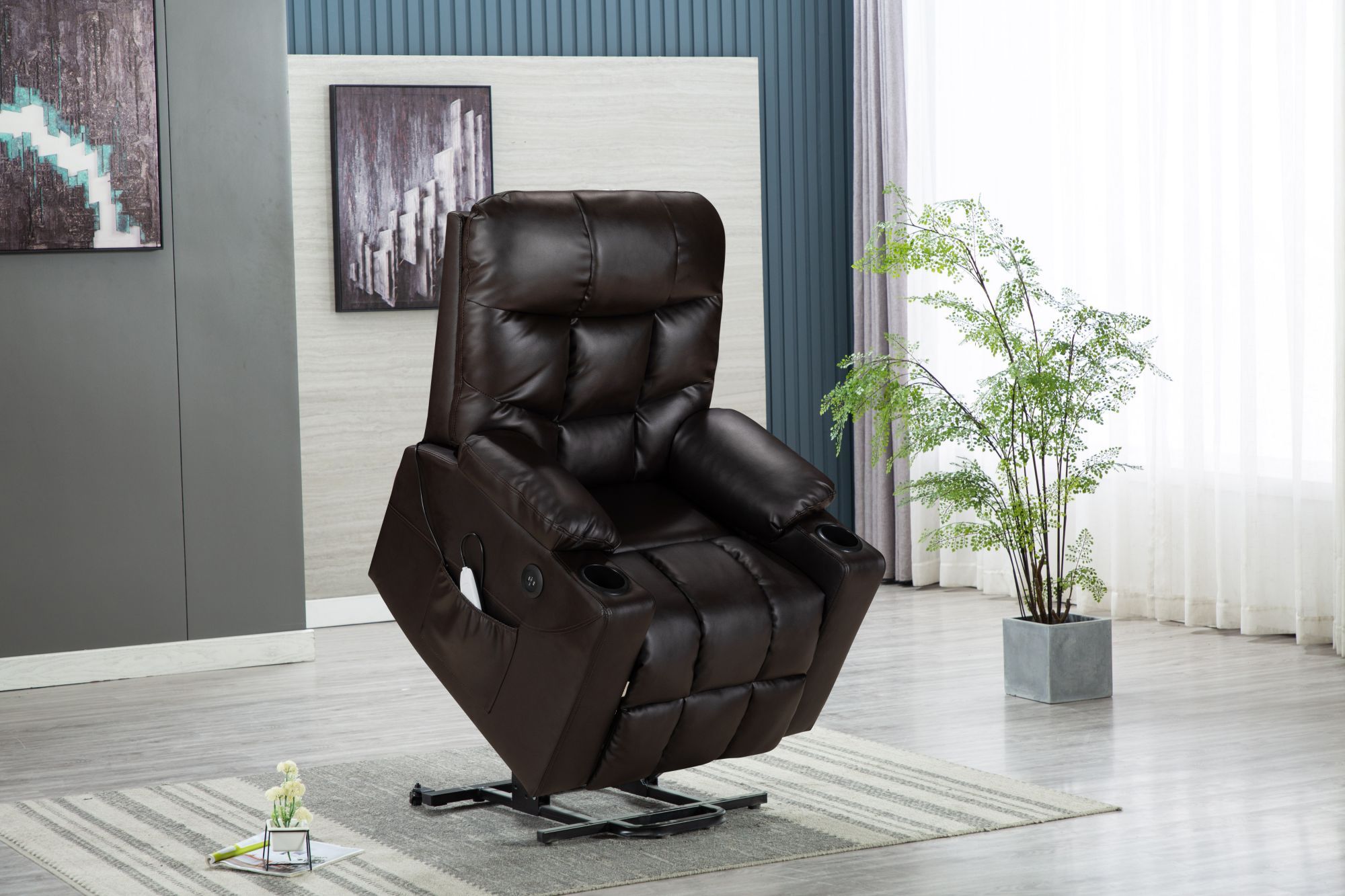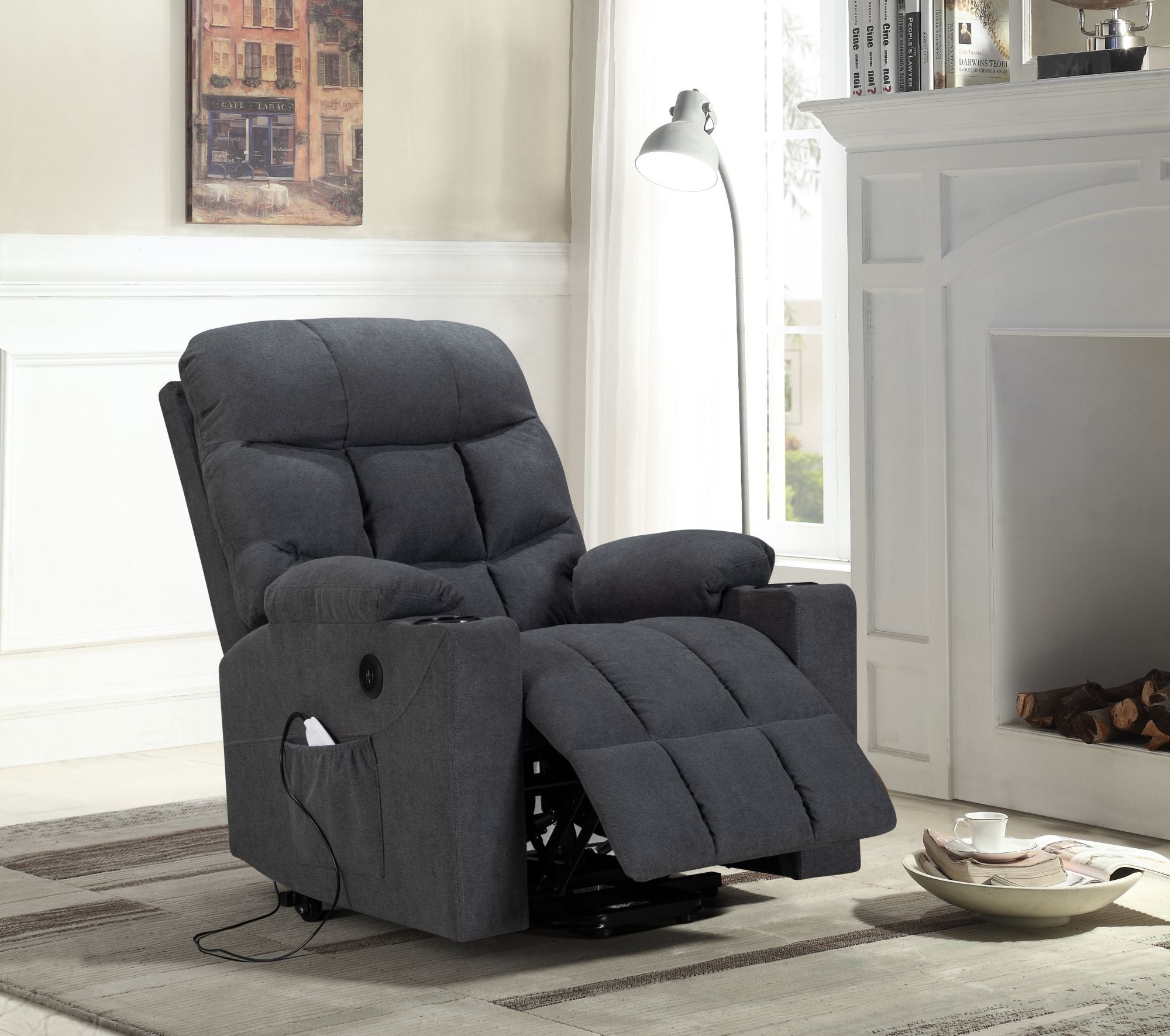 Power Lift Recliner for Elderly, Heated and Massage, with Cup Holders and Two Side Pocket, USB Ports