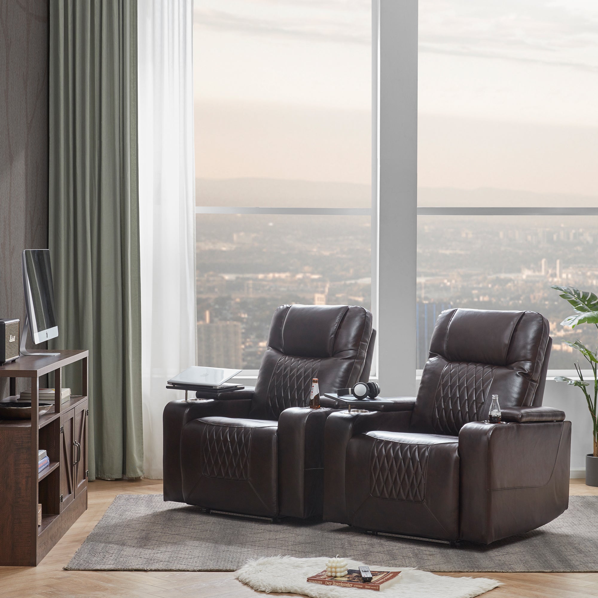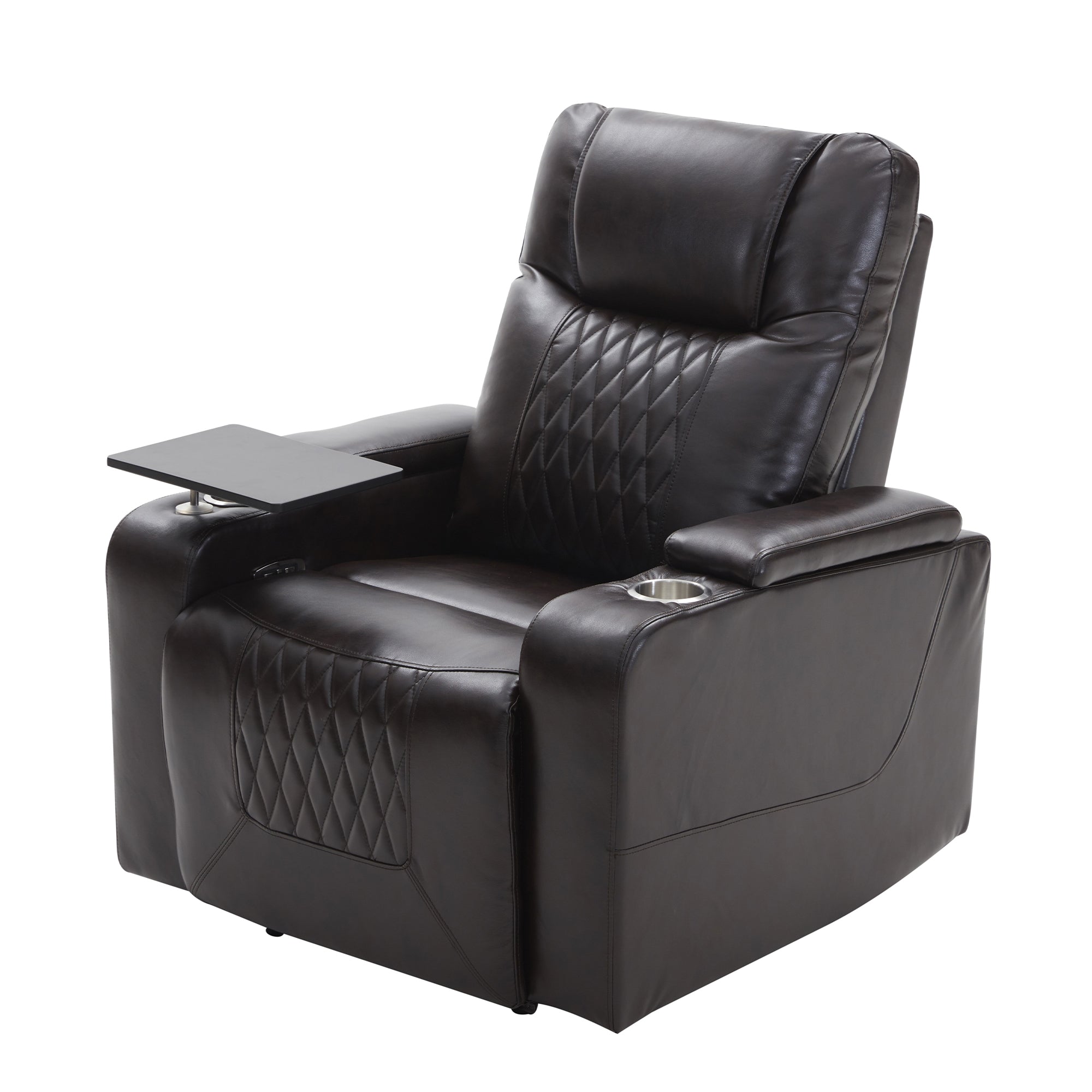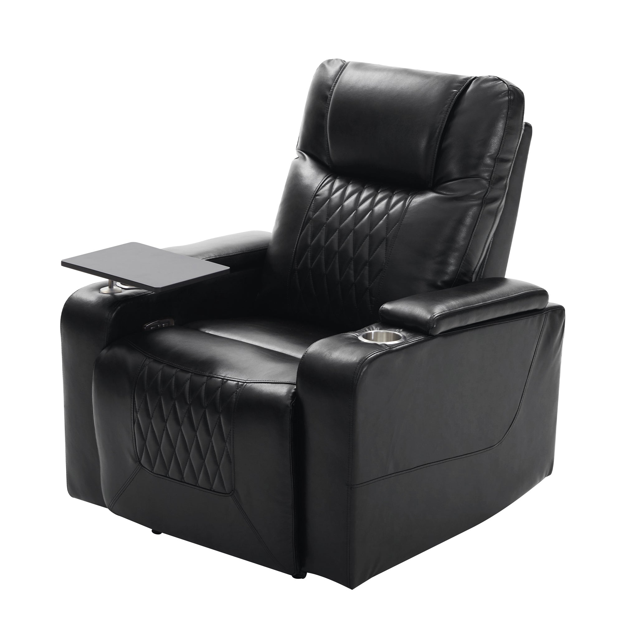 Power Motion Recliner with USB Charging Port and Hidden Arm Storage 2 Convenient Cup Holders design and 360° Swivel Tray Table