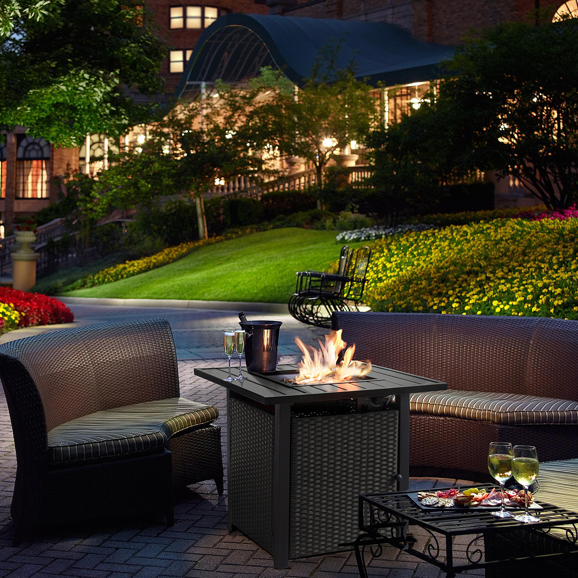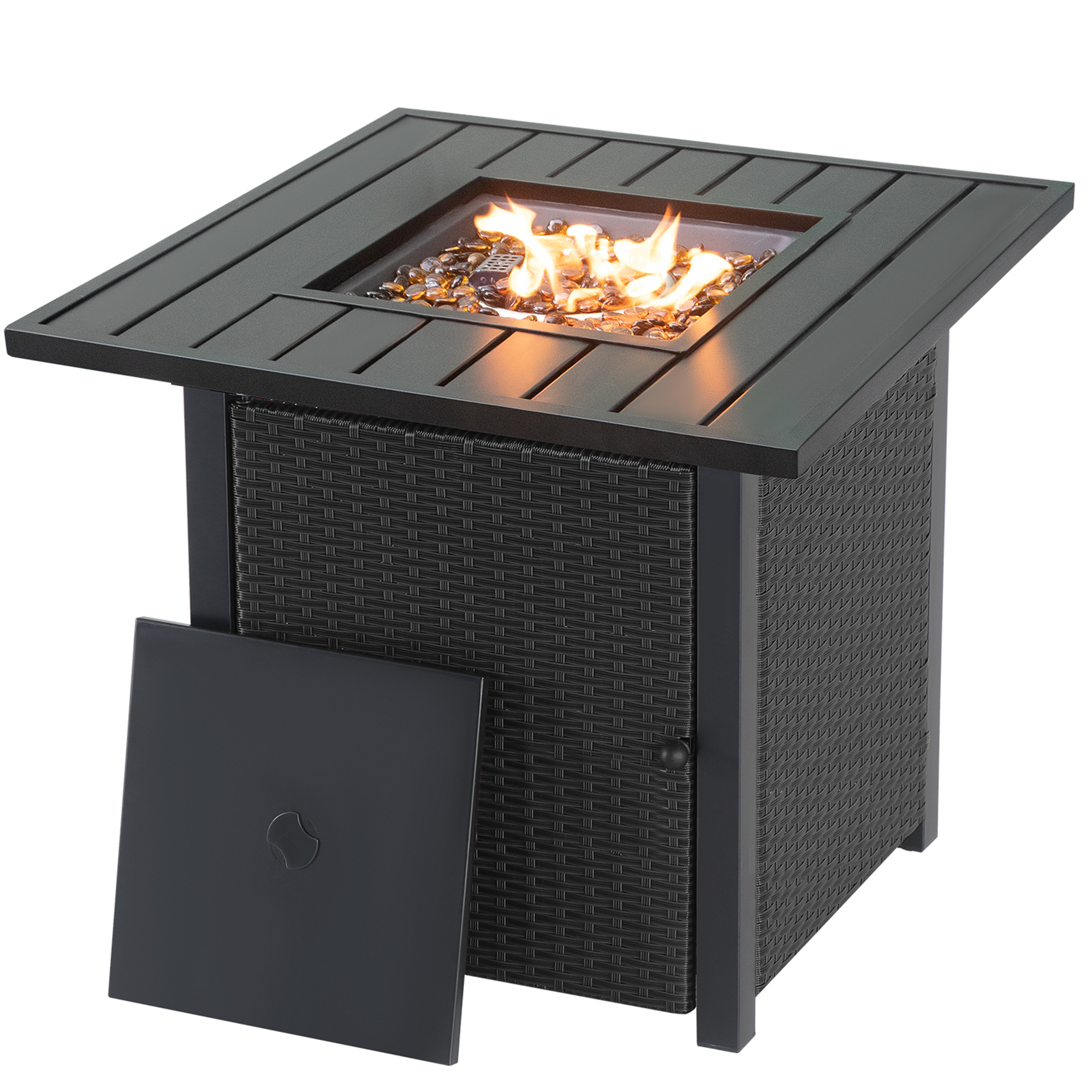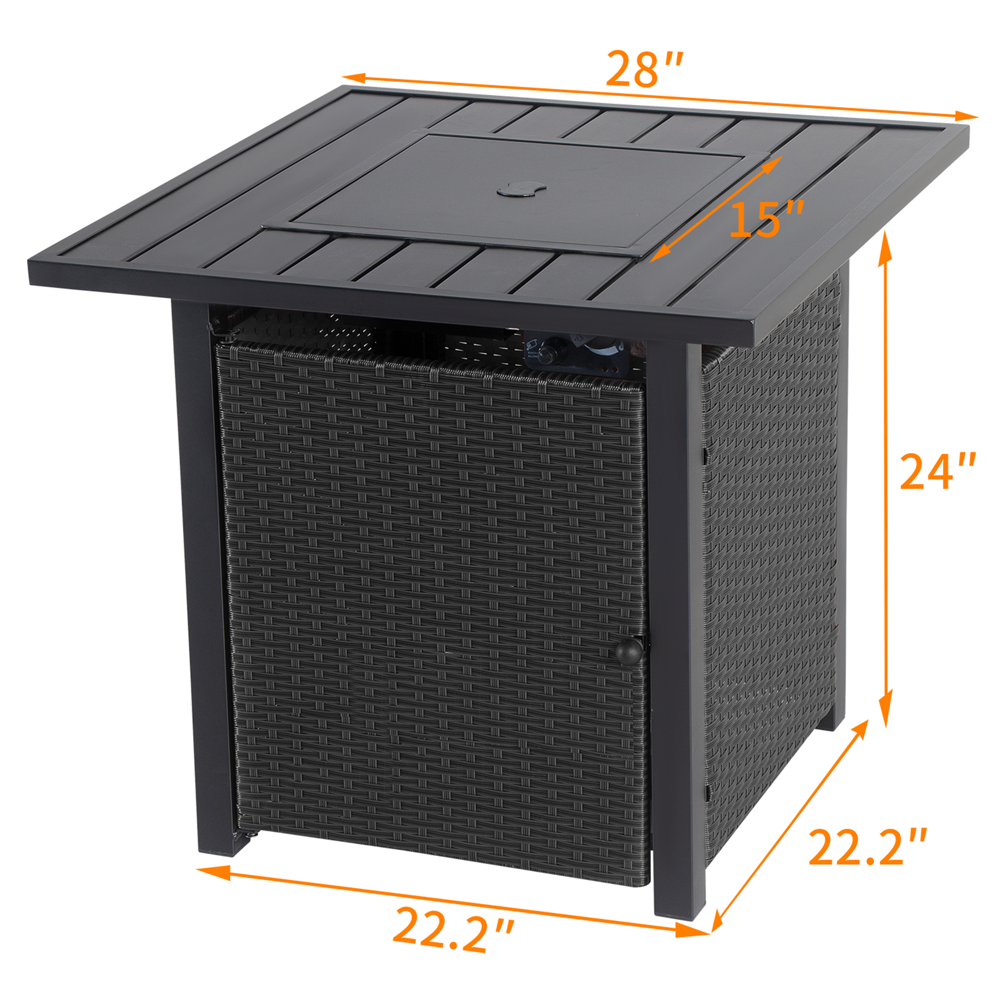 🔥 Hideaway Tank Storage: The outdoor fire pit has a magnetic hidden door panel which allows you to instantly open and access the interior propane tank (not included), ensuring easy shutoff, refills, and replacement.