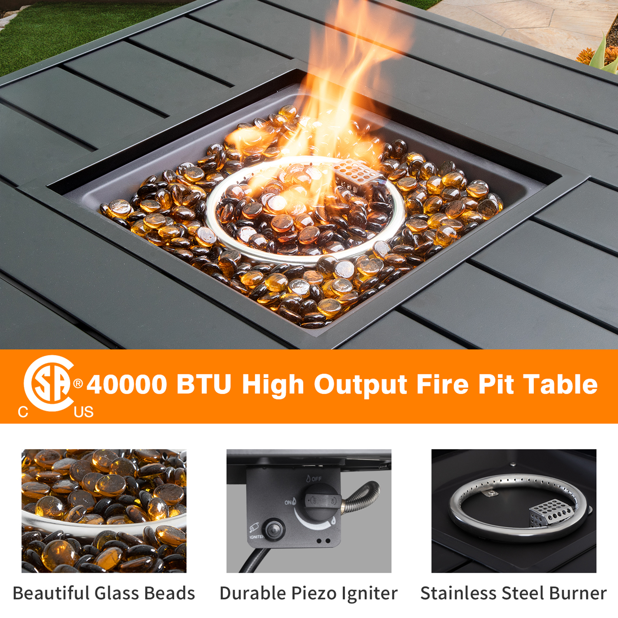 🔥 CSA-Approved Safe & Bonfire Table : You will never regret having this safe-to-use, CSA-certified propane fire pit at your backyard. The 40000 BTU output on the fire table will provide your family and friends with ample warmth and a romantic bonfire atmosphere while creating nearly green burning experience, so you will no longer suffer from ash and smog.