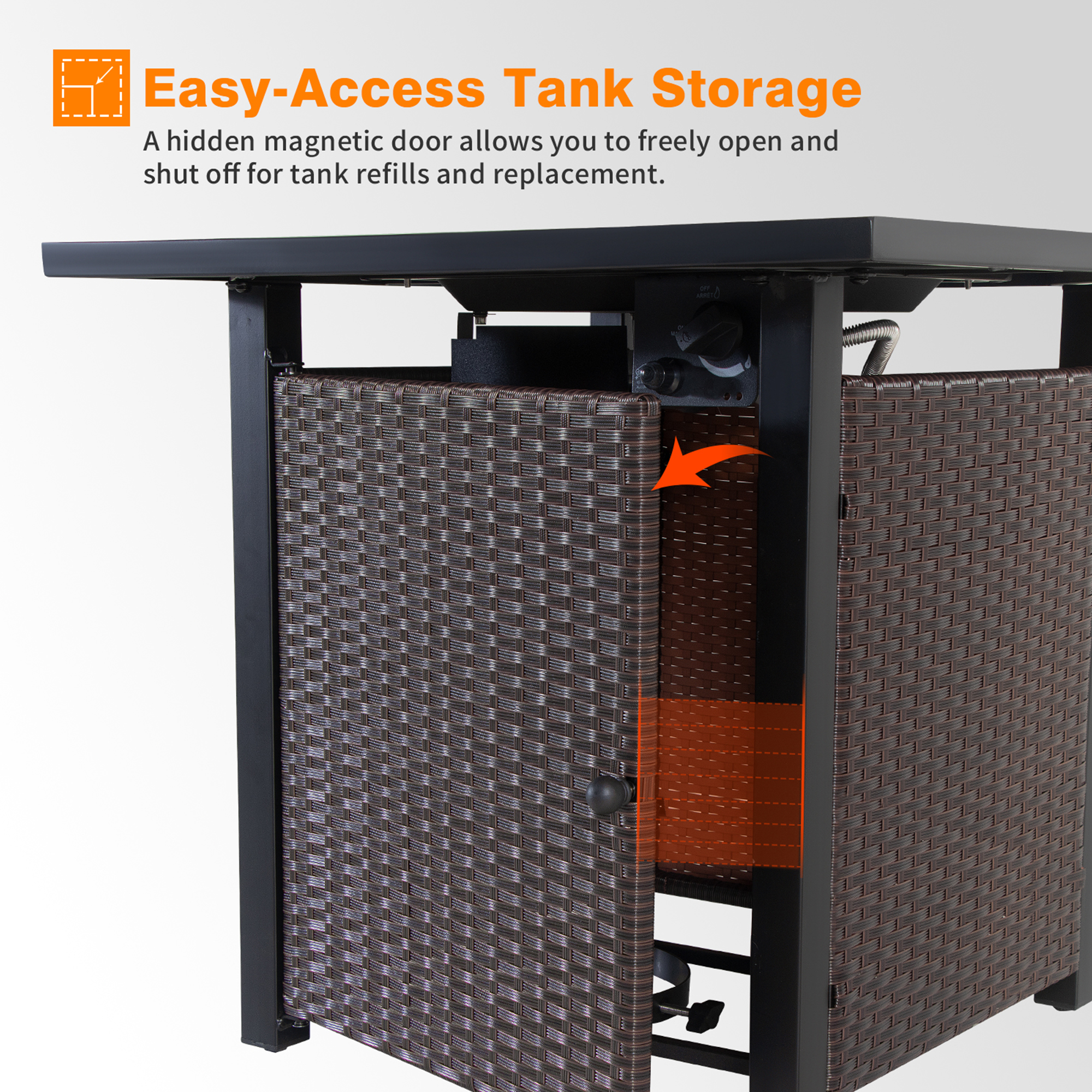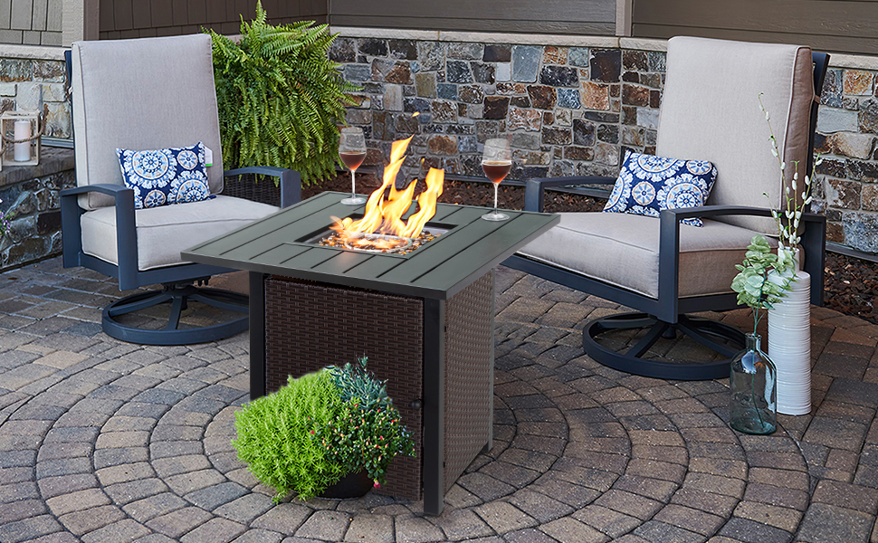 🔥 Premium & Durable Material: The sturdy galvanized tabletop with slat steel design is durable, weather and rust resistant; and durable 8x1.2mm wicker coverage is woven over sturdy steel sides frame to prevent cracking and damaging table surface, and adds a sense of elegance to your outdoor decor; The rust-proof round burner on the outside propane table is made of stainless steel to stand the test of time for your reliable use.