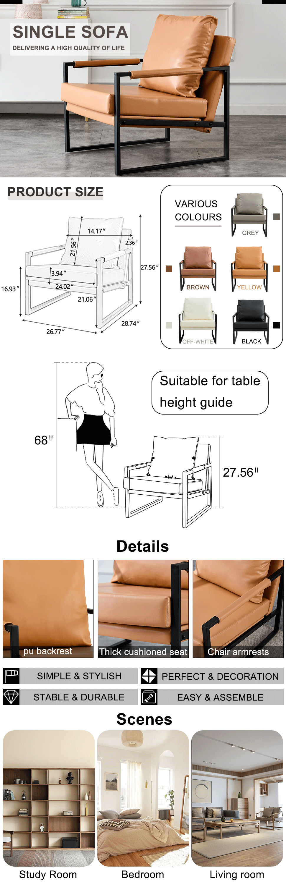 3.Simple lines as well as square contours creates this modern industrial single sofa chair, which adding more fashionable elements to your room. | ||||