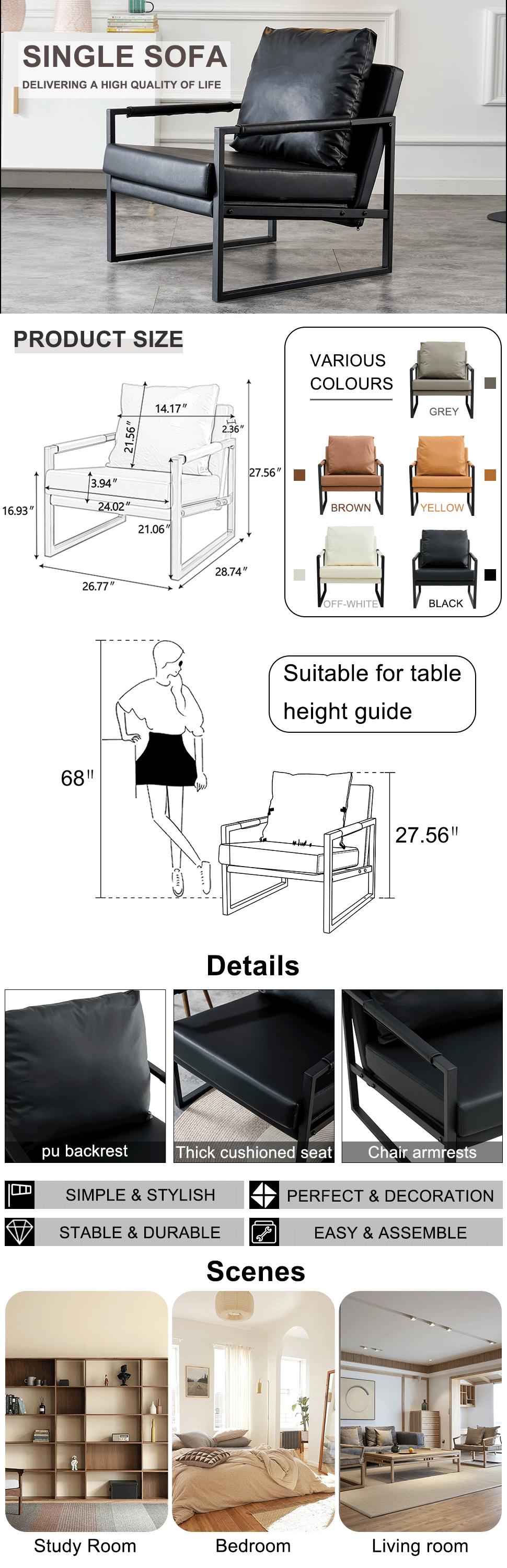 3.Simple lines as well as square contours creates this modern industrial single sofa chair, which adding more fashionable elements to your room. | ||||