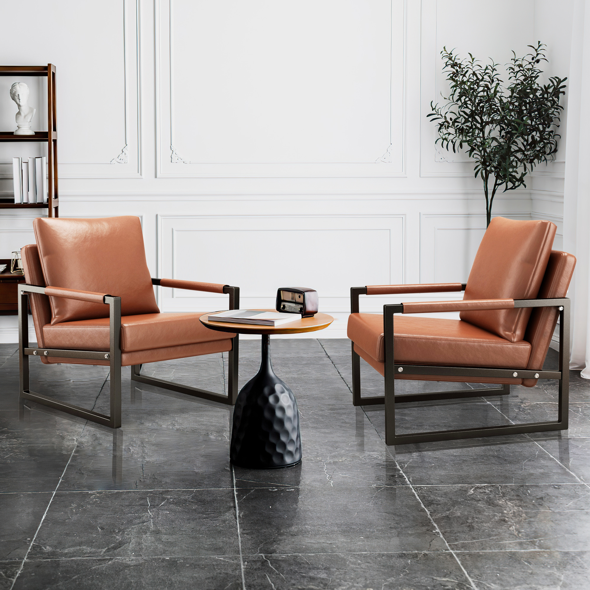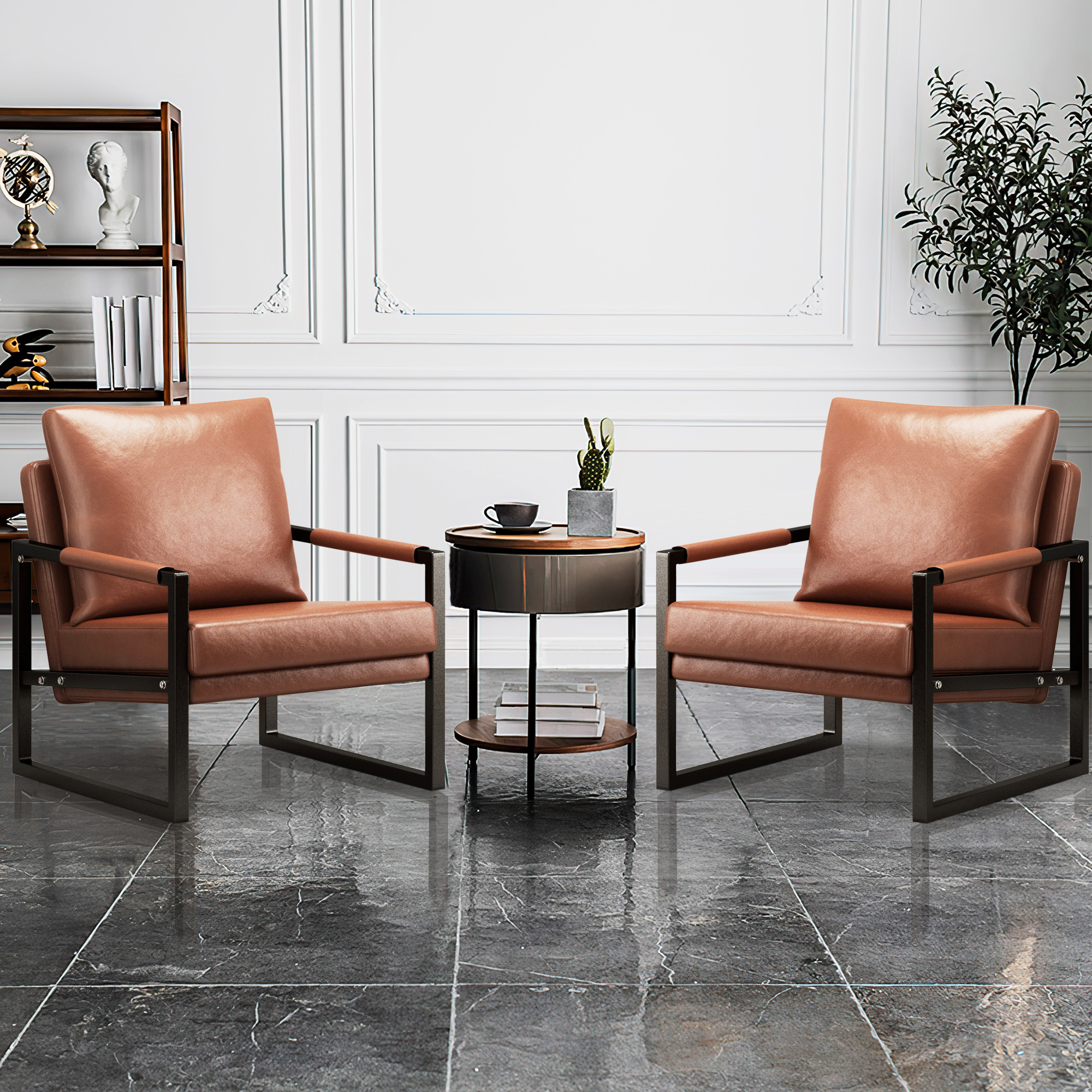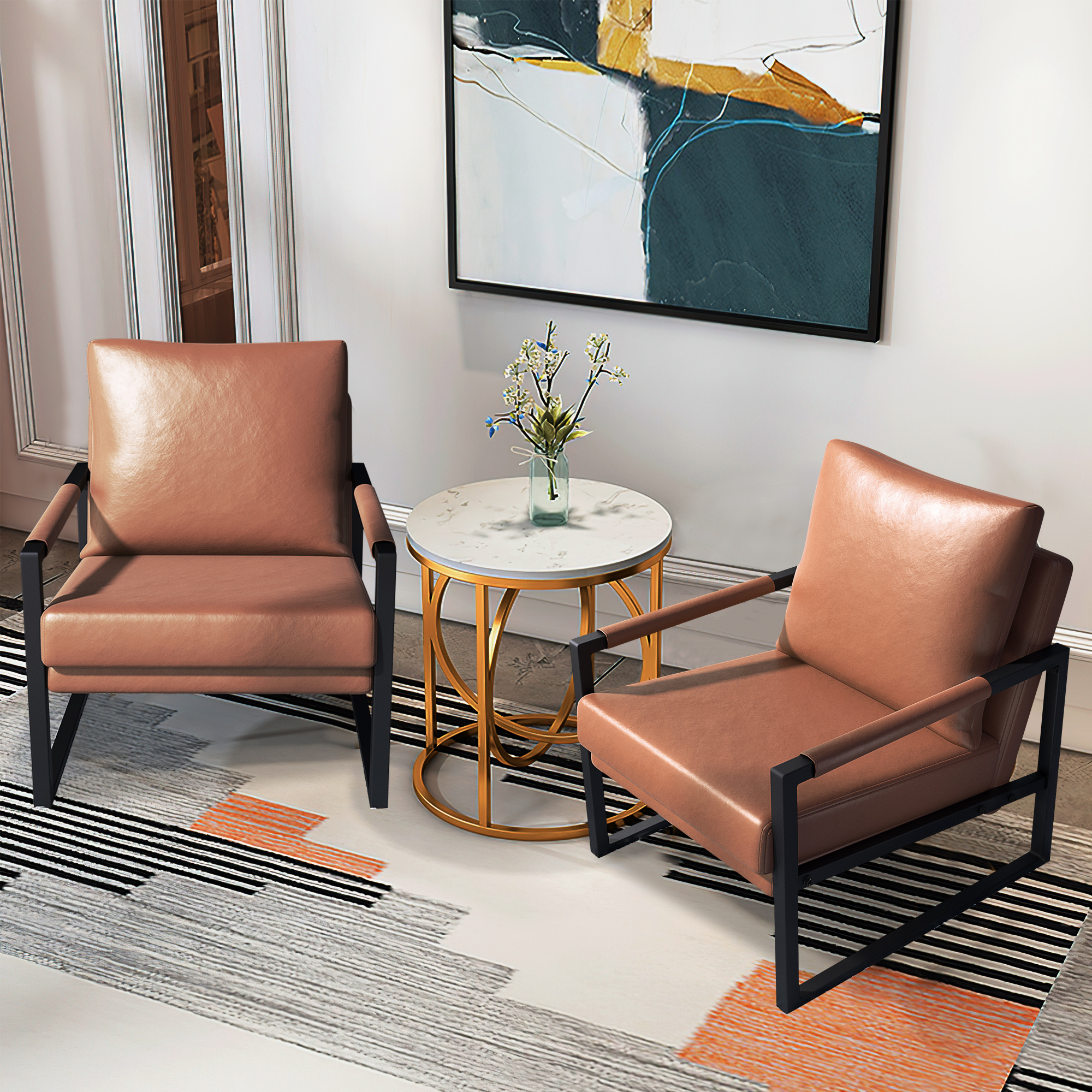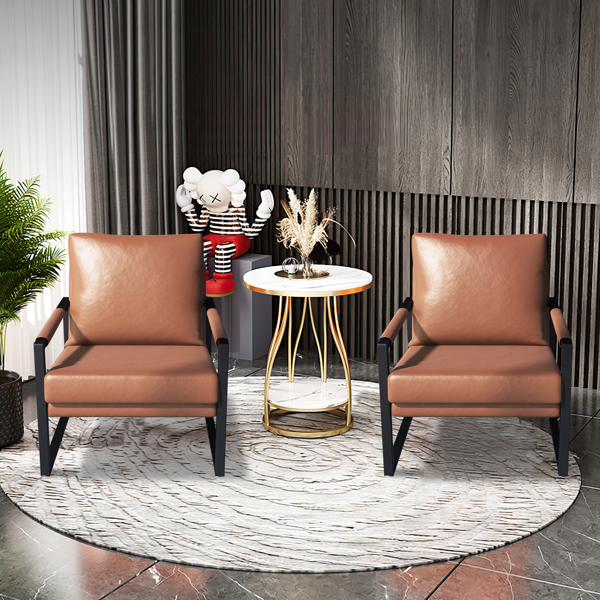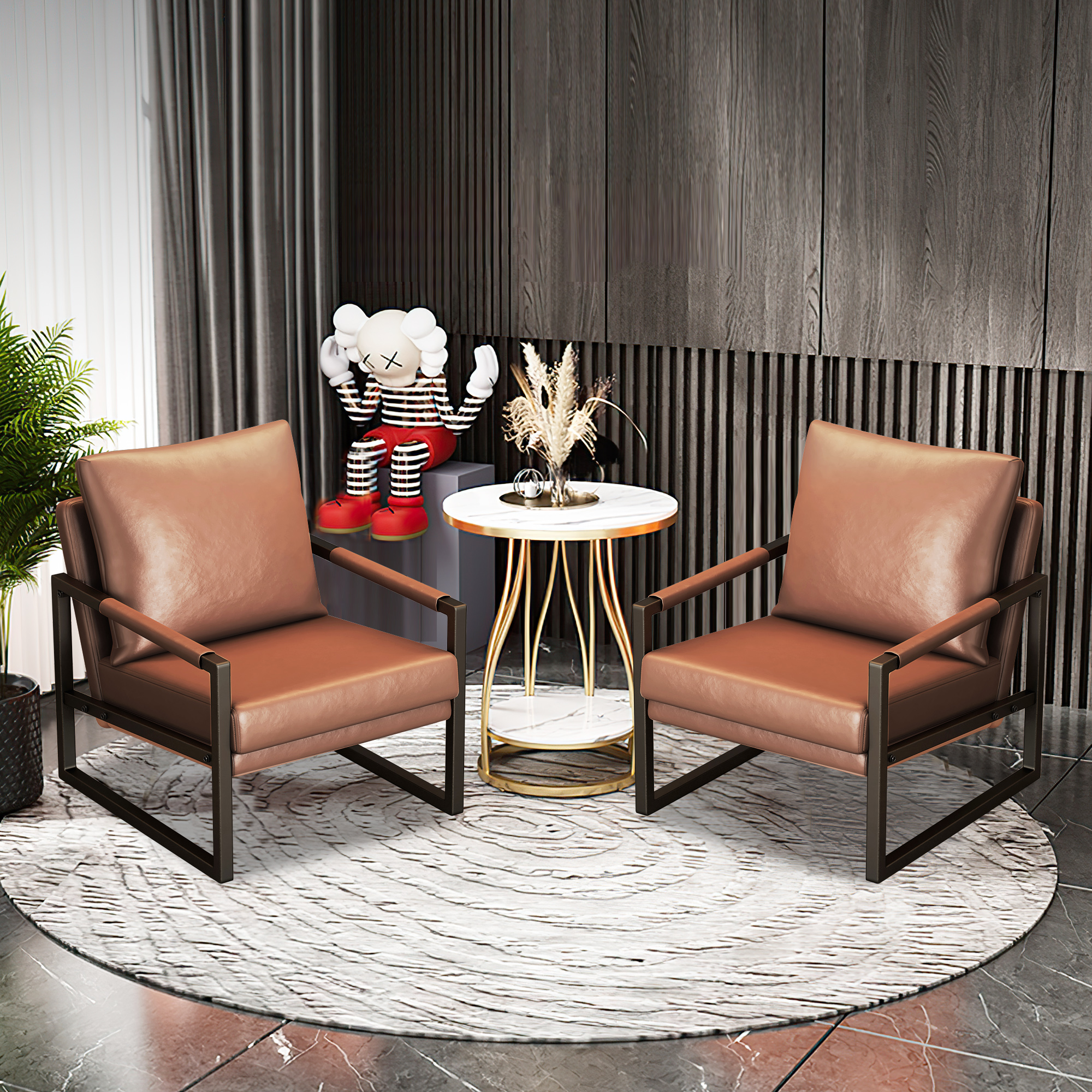 PU Leather Accent Arm Chair Mid Century Modern Upholstered Armchair with Metal Frame Extra-Thick Padded Backrest and Seat Cushion Sofa Chairs for Living Room ( Brown PU Leather + Metal Frame + Foam)