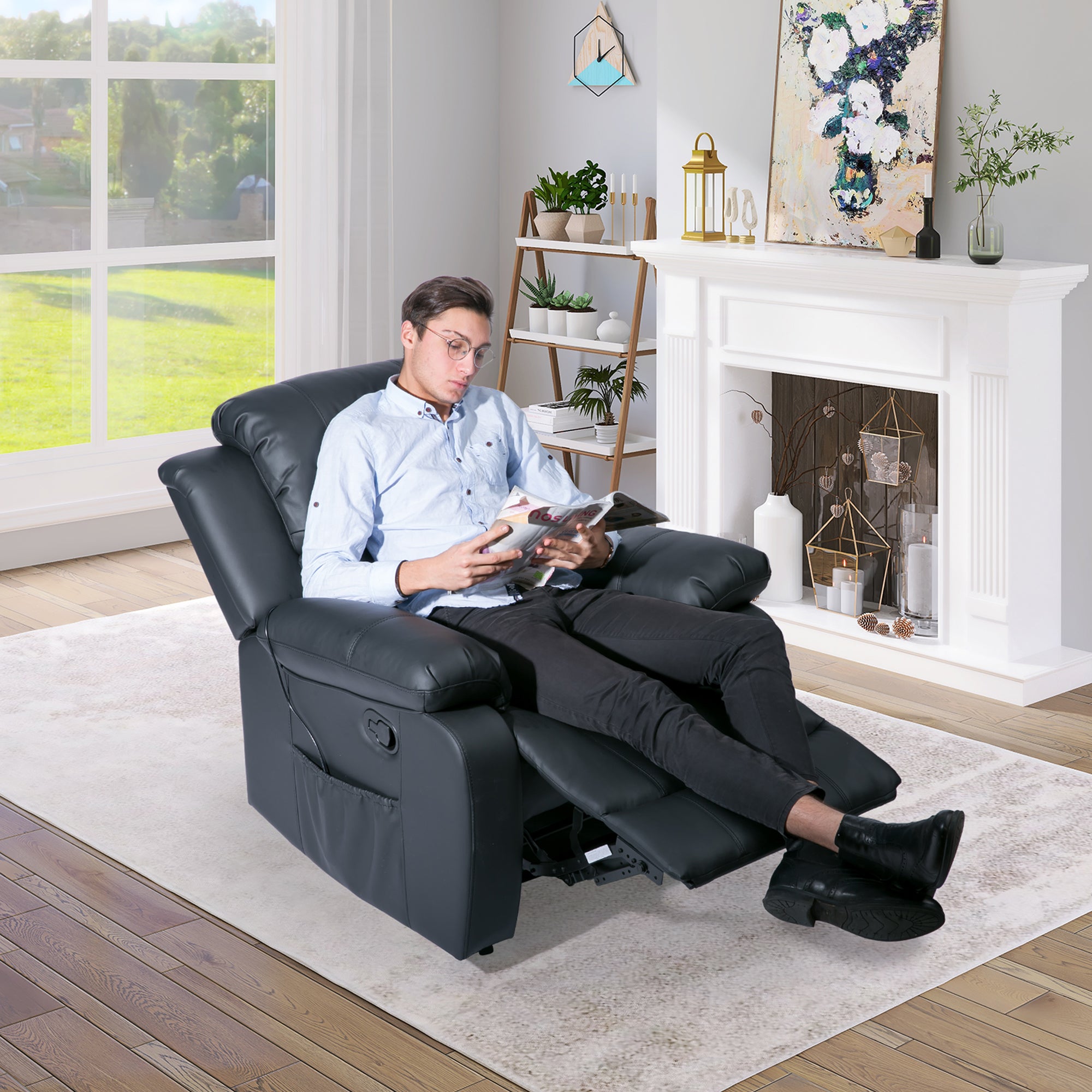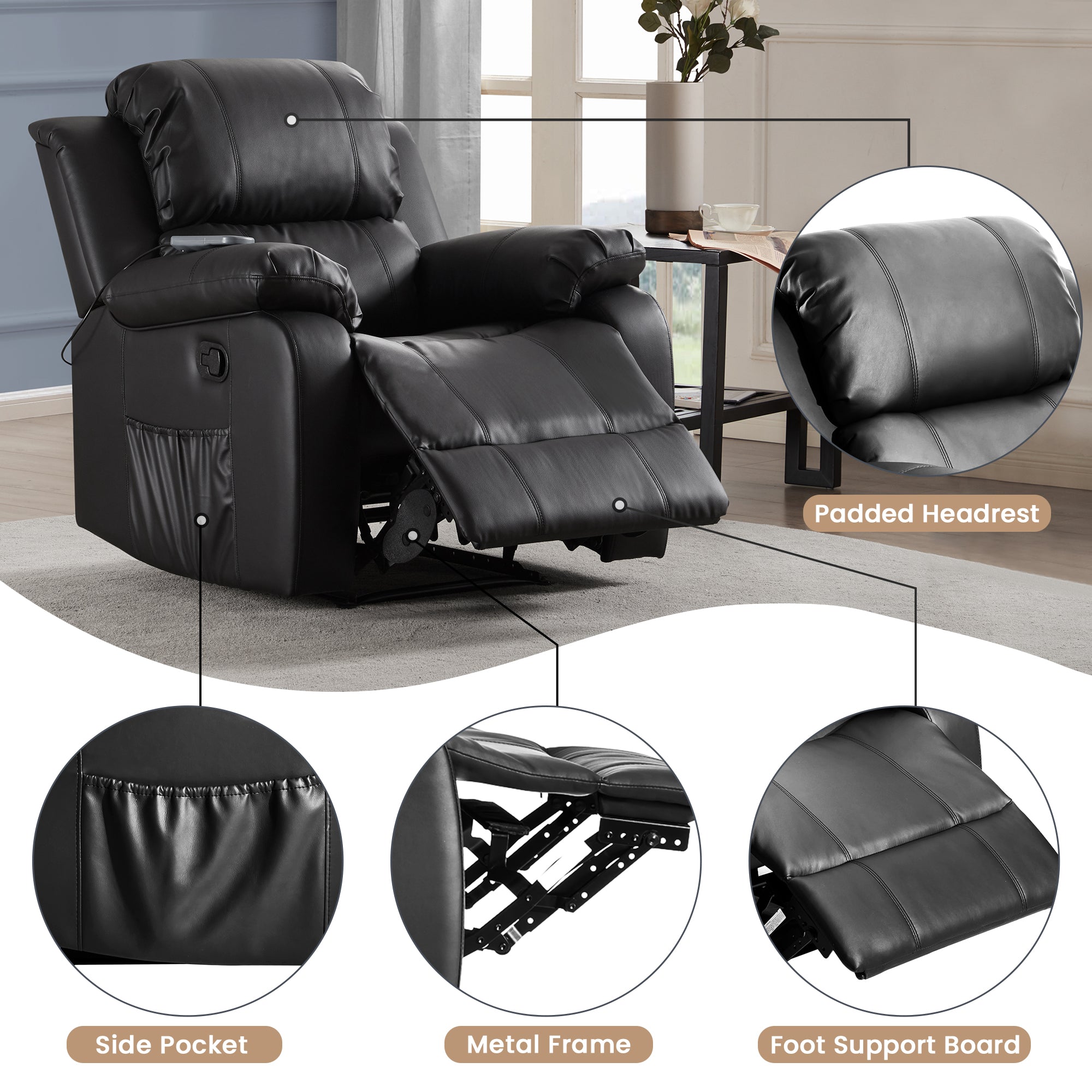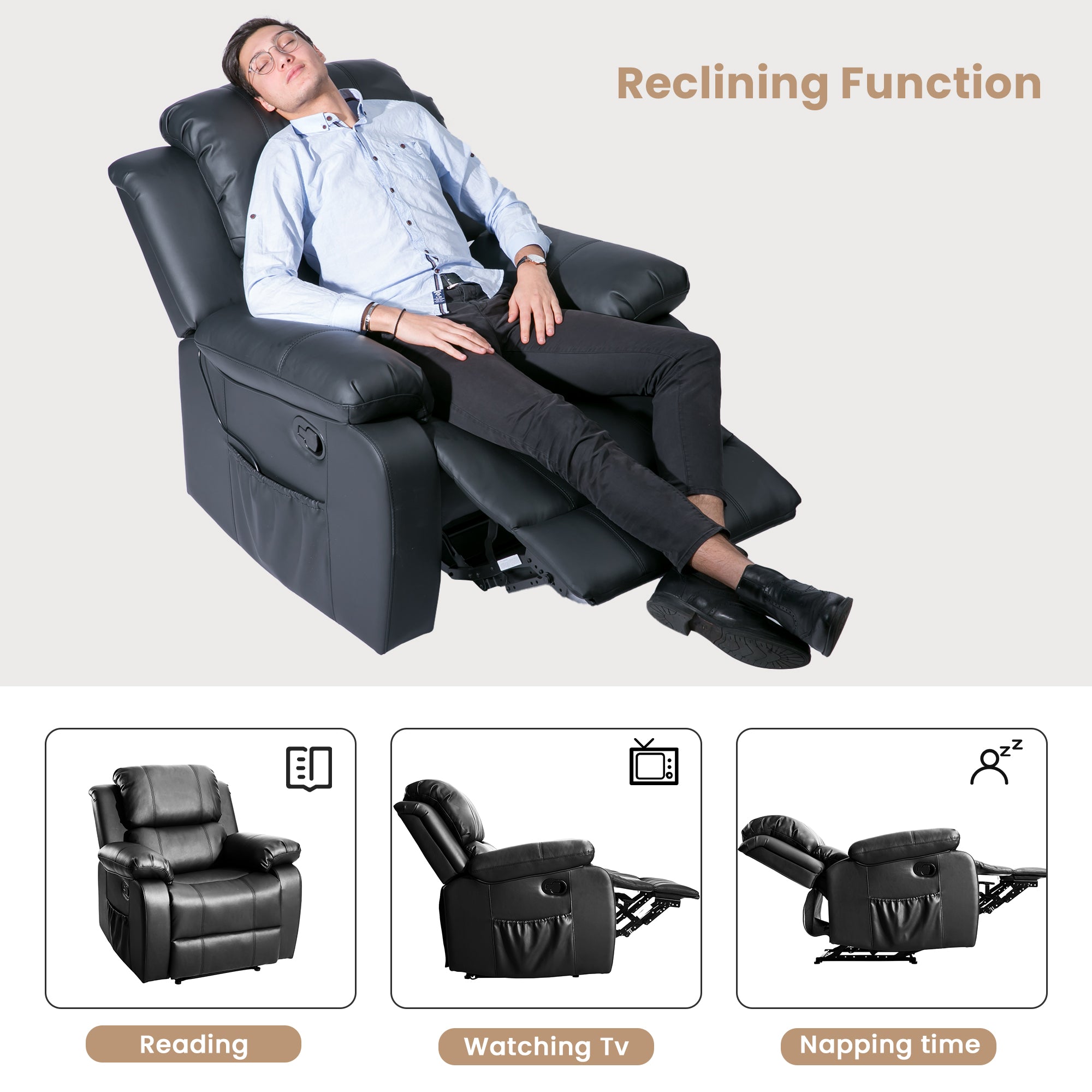 PU Leather Heated Massage Recliner Sofa Ergonomic Lounge with 8 Vibration Points