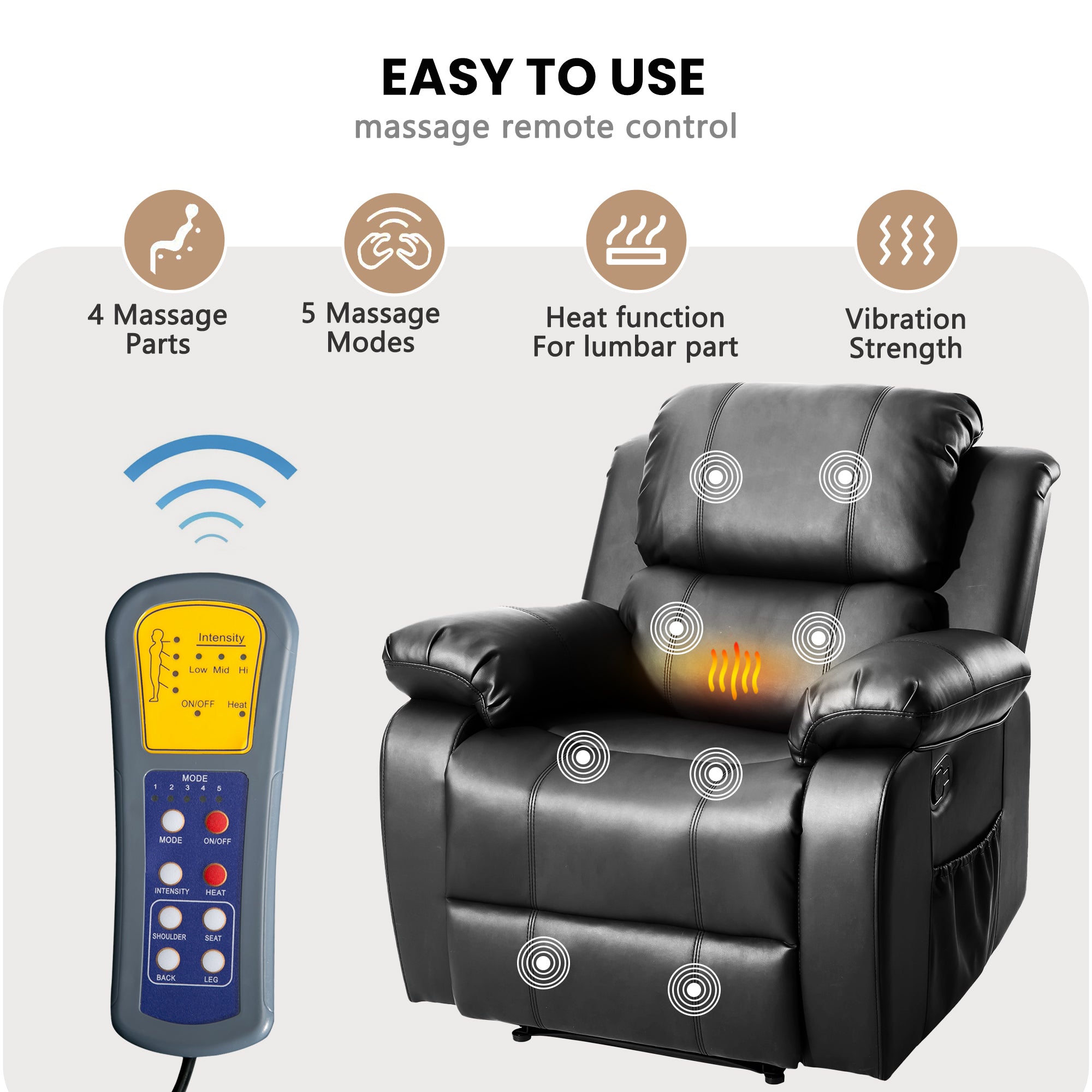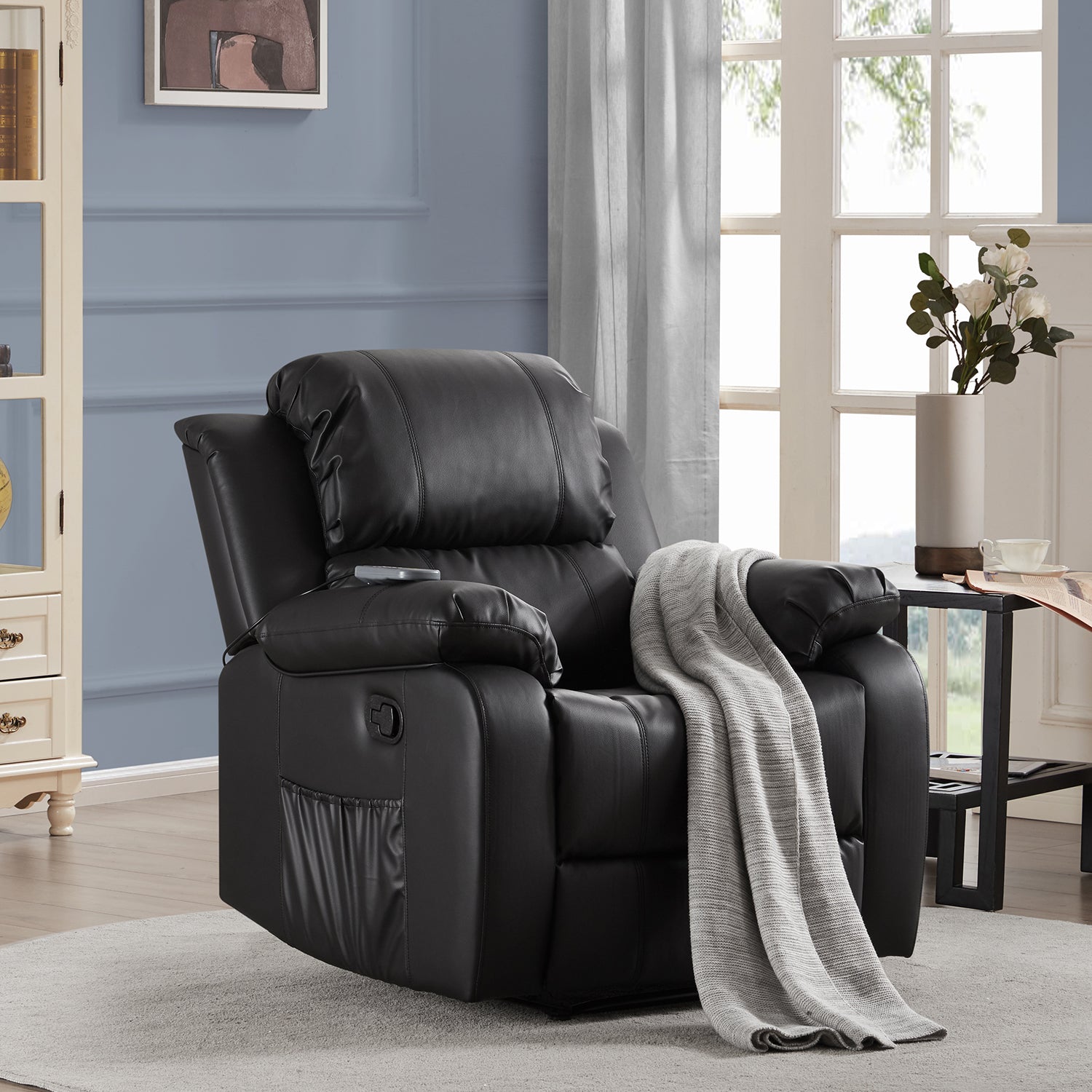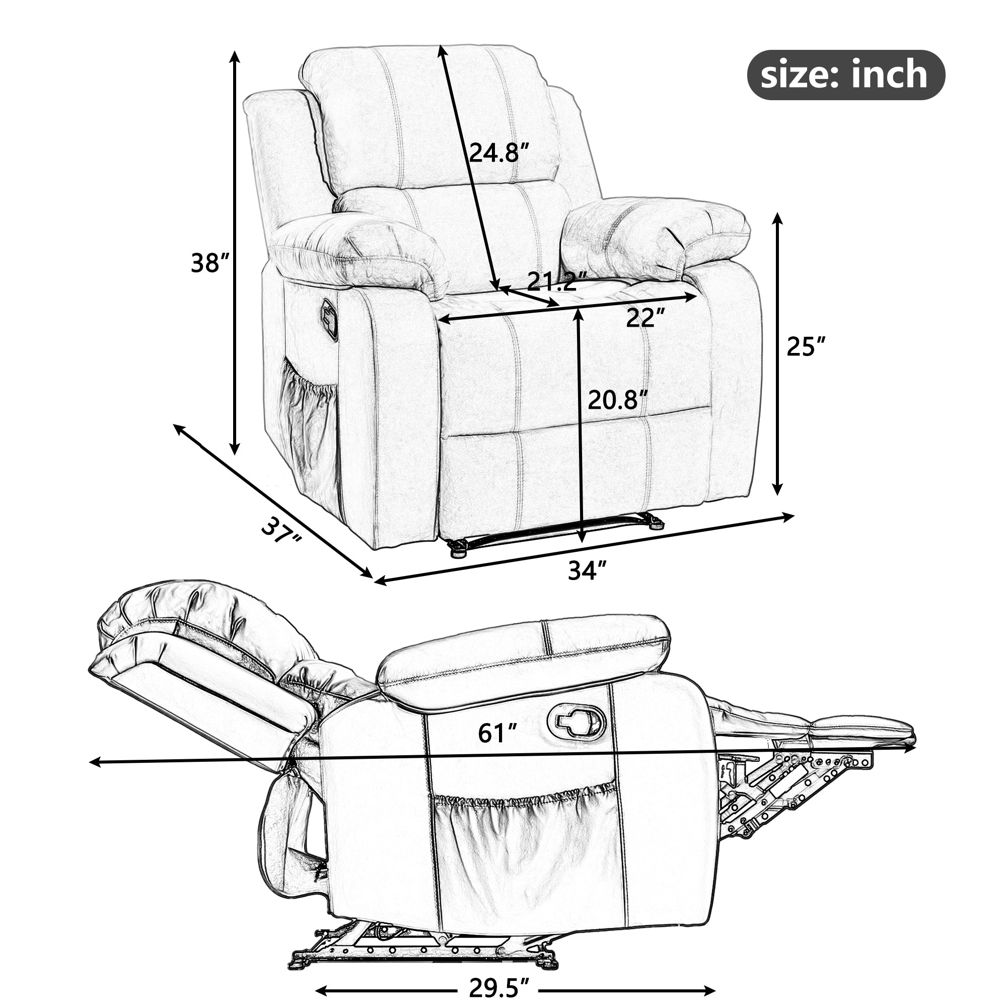 Remote Controller: All-in-one remote design makes it easy to operate the chair. Side pocket design to keep small items within reach such as books, magazines, tablet, etc.