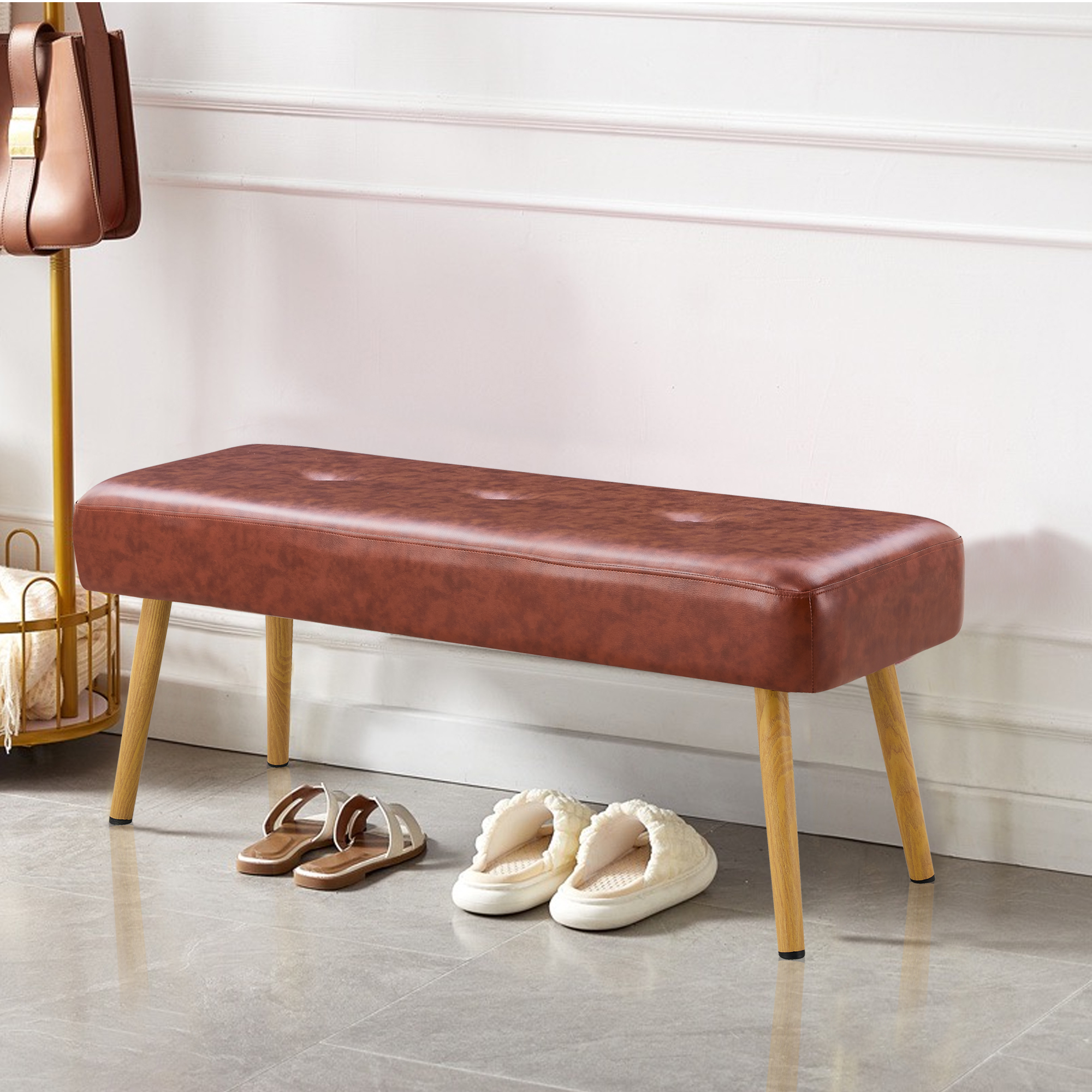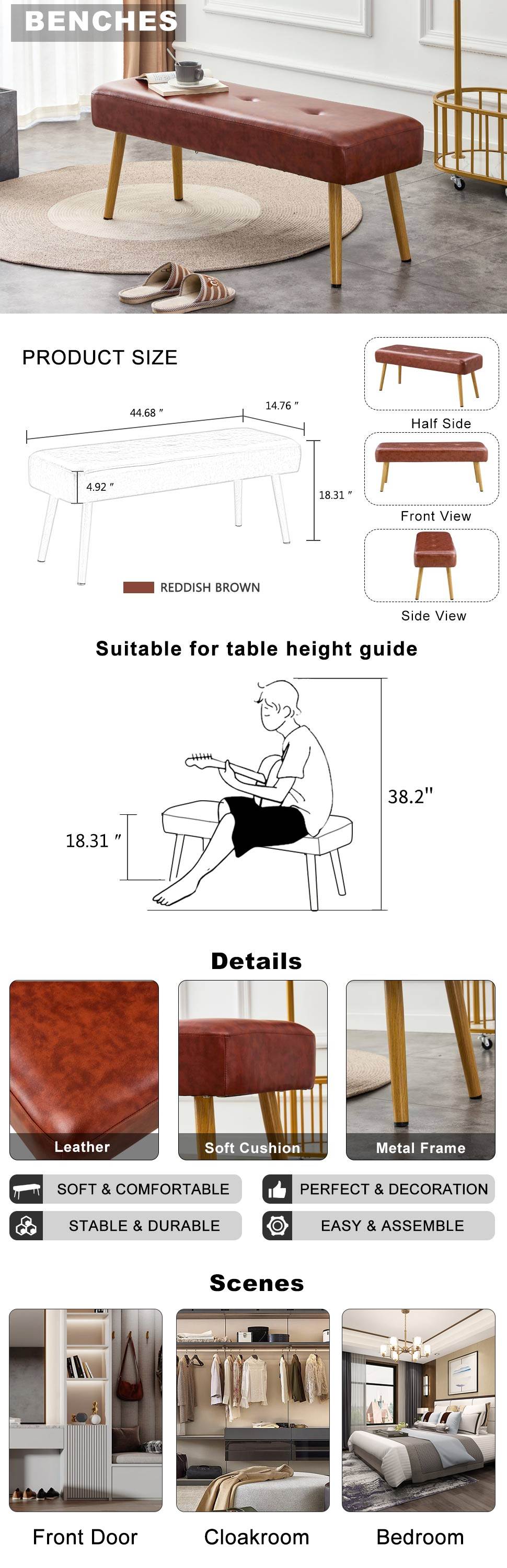 6.Modern luxury style ottoman along with PU upholstery, Imitation solid wood color metal legs, sure to match with almost any decor. | |||