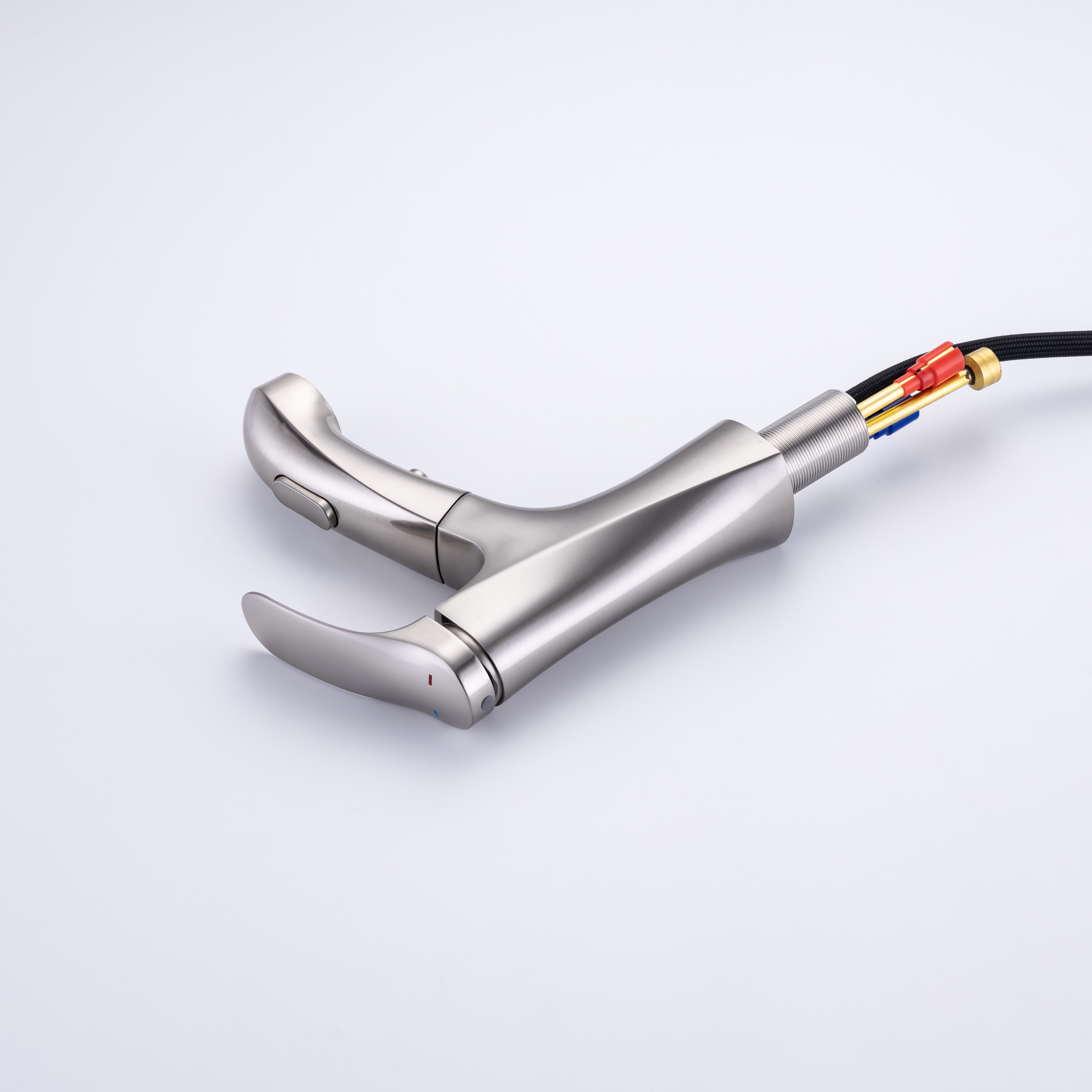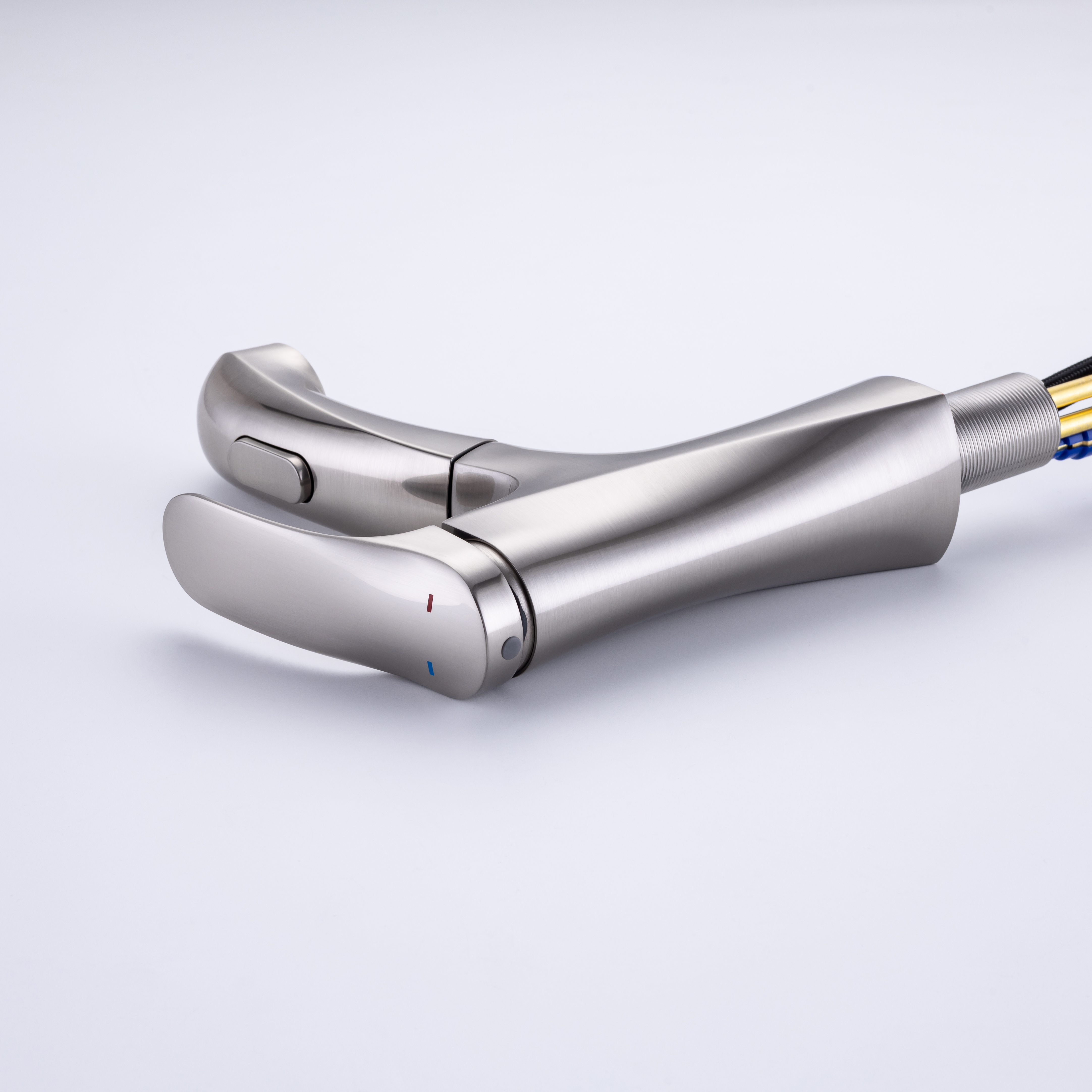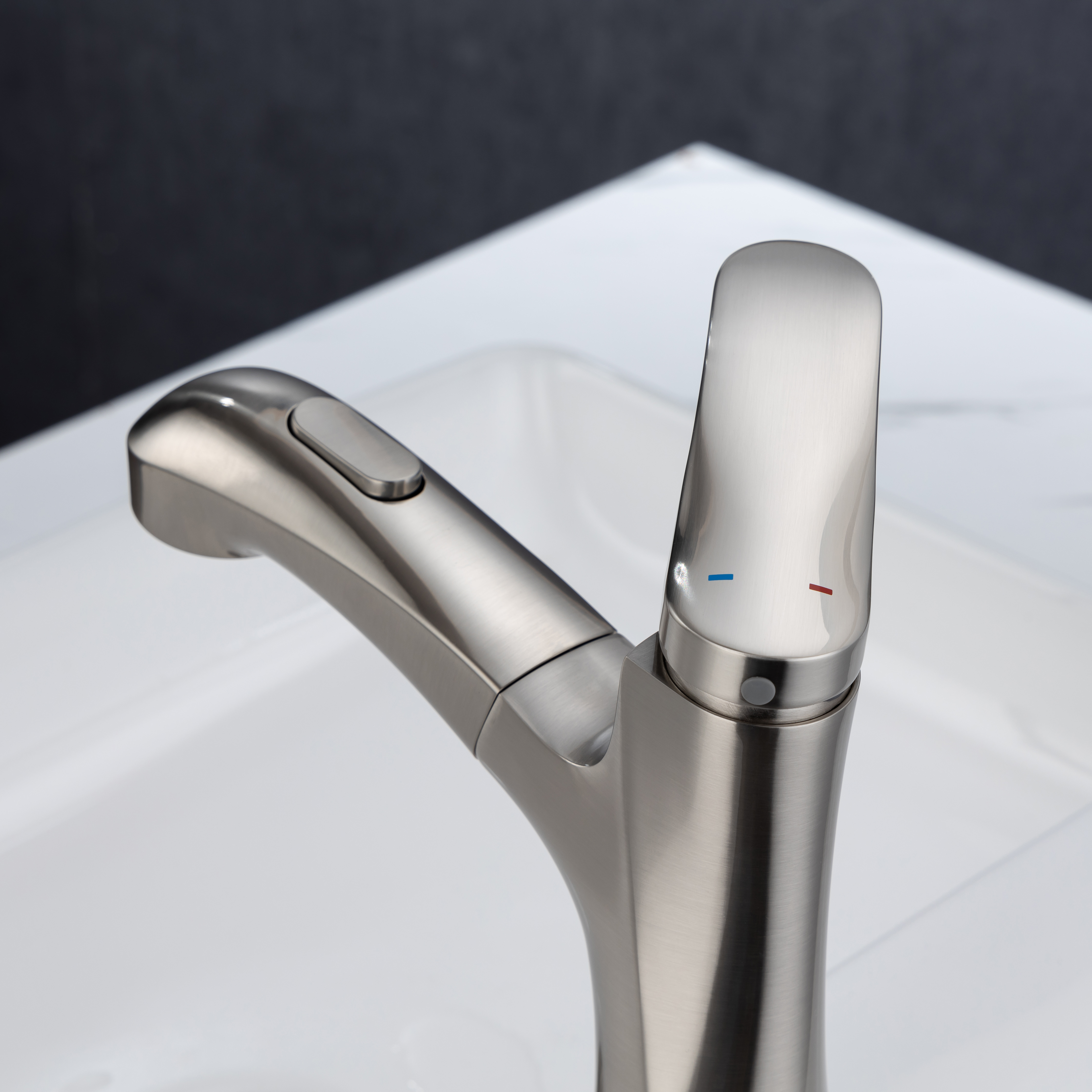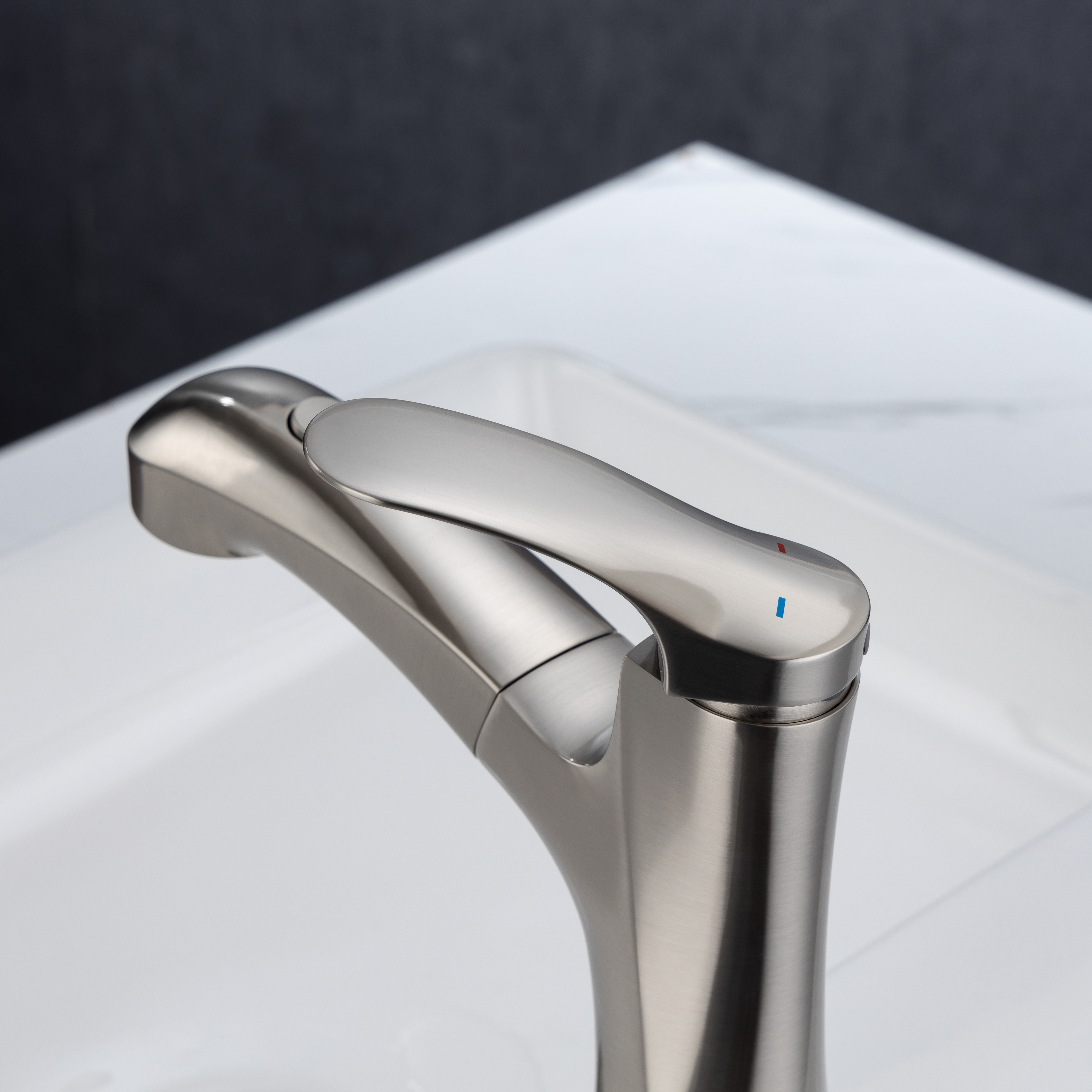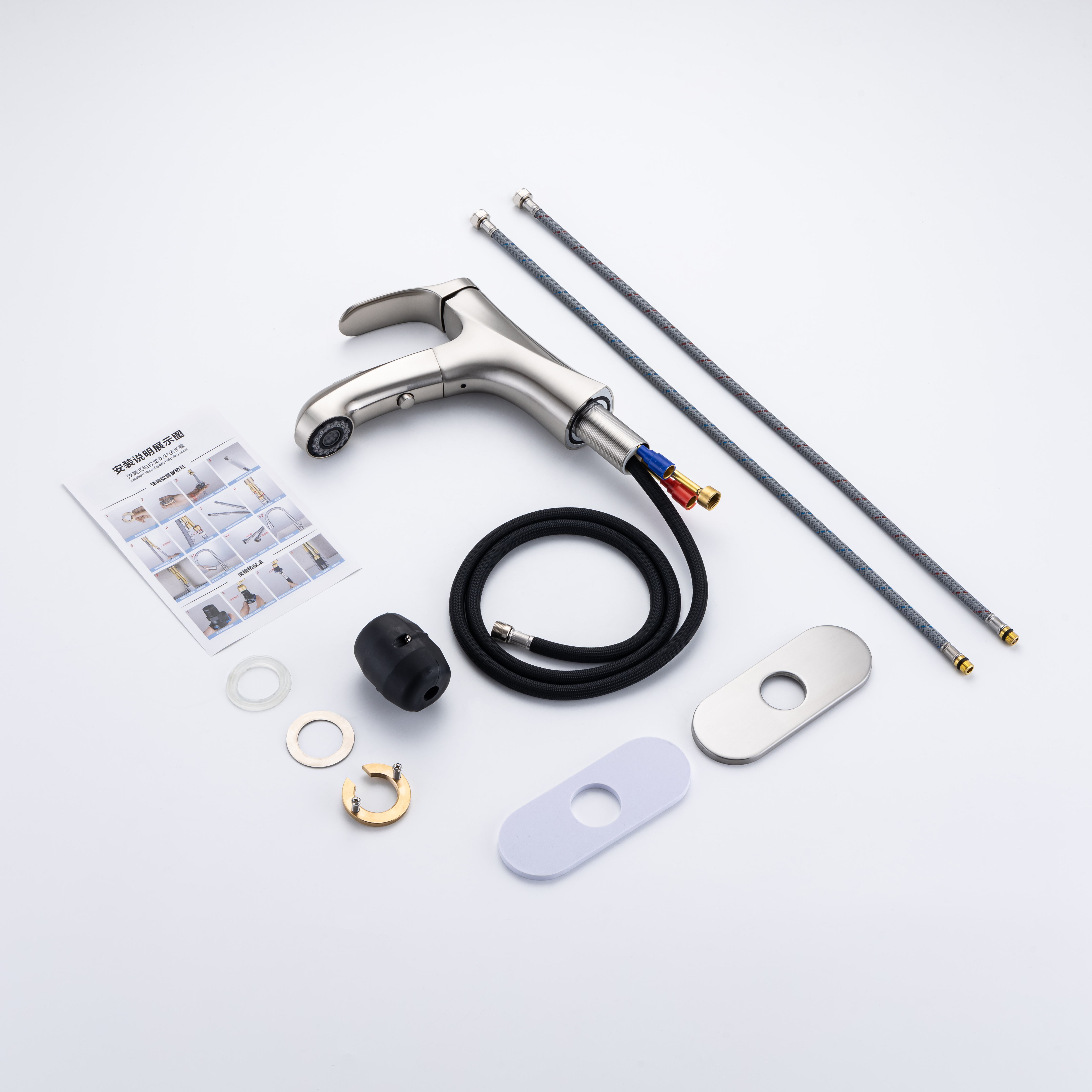 ★【360° SWIVEL PULL OUT SPOUT】:Modern bathroom faucet with polyester braided pull out hose makes it convenient to wash your hair in the basin. The surface treatment won't tarnish or scratch with excellent corrosion resistance,easy to clean.