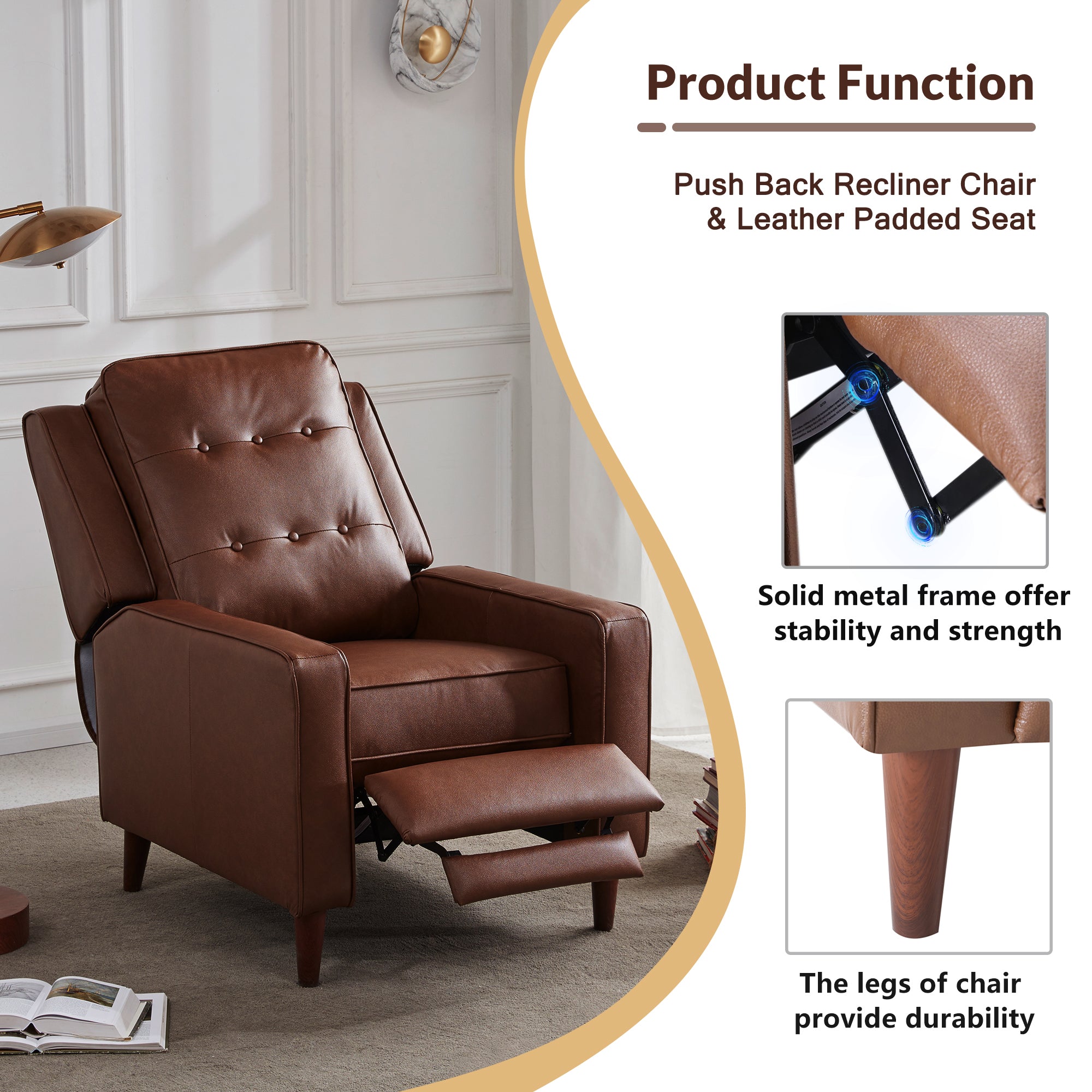 Durable and easy to clean: Our recliner chair is upholstered with durable PU, when water spills onto the chairs for living room, it is very waterproof and easy to clean.