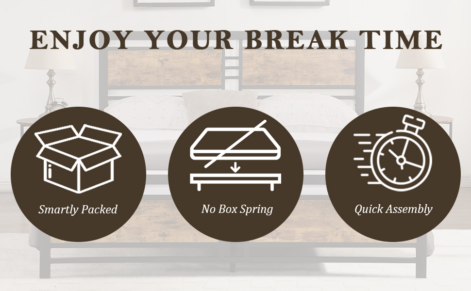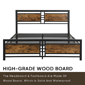 - 【Unique Design】The combination of rustic style headboard and retro frosted metal slats takes a strong industrial/rustic flair, rich your room in Industrial and unique individualism.