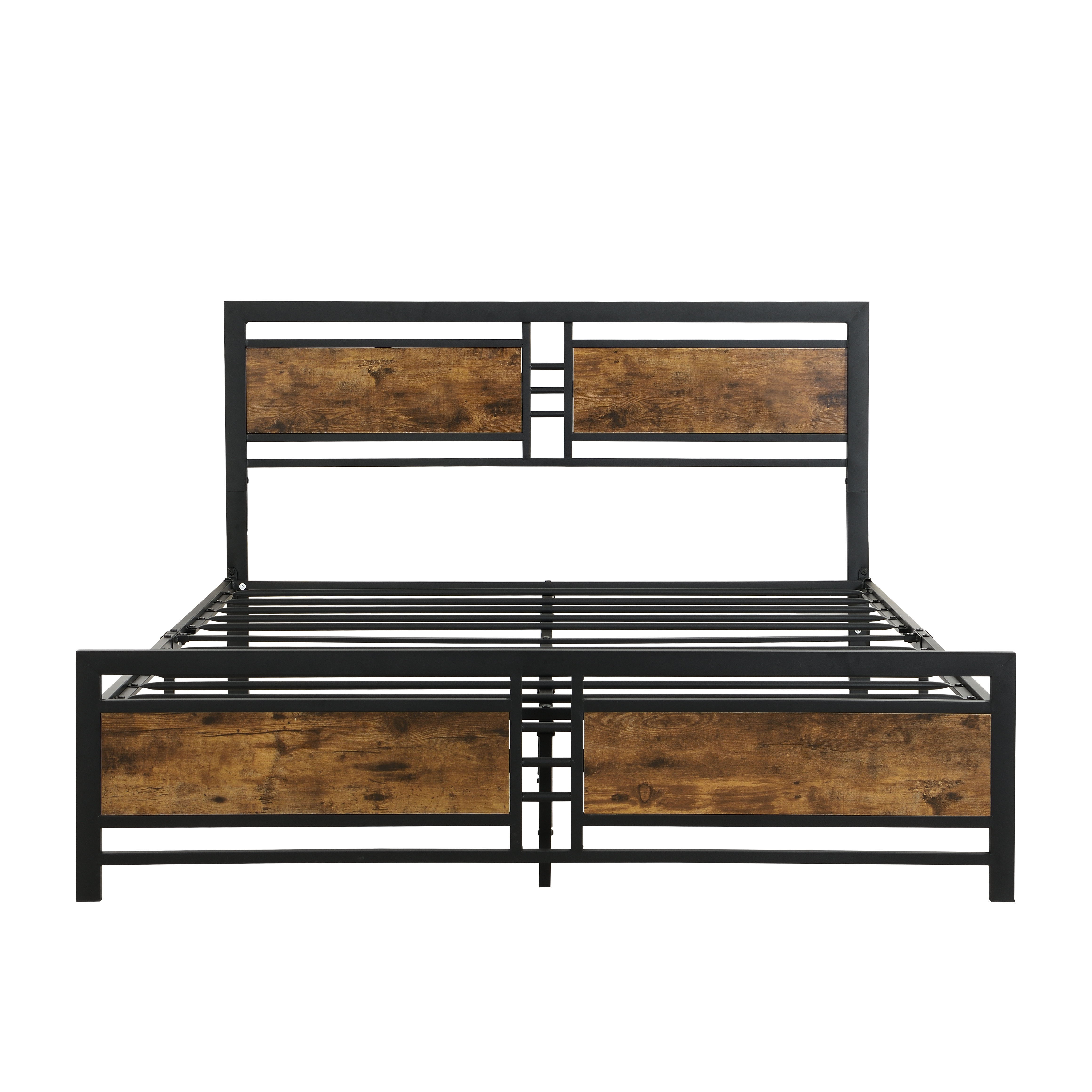 Specifications:---Product Type: Queen Size Bed Frame---Colour: Rustic Brown---Overall Size: 82.1"L x 72.1"W x 37.6"H---Material: Metal+MDF Board---Assemble Require: Yes---Weight Capacity: 1100 Pounds.---Number of Slats: 13 pcs---Number of Package: 1---Recommended Mattress Thickness: 10-14 Inch---Spring box:No need---Package Content: 1xBedframe+1xInstruction---Country of Origin: China