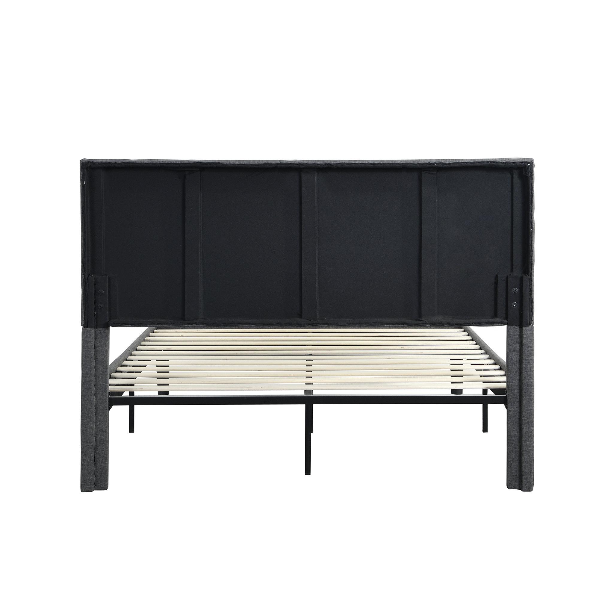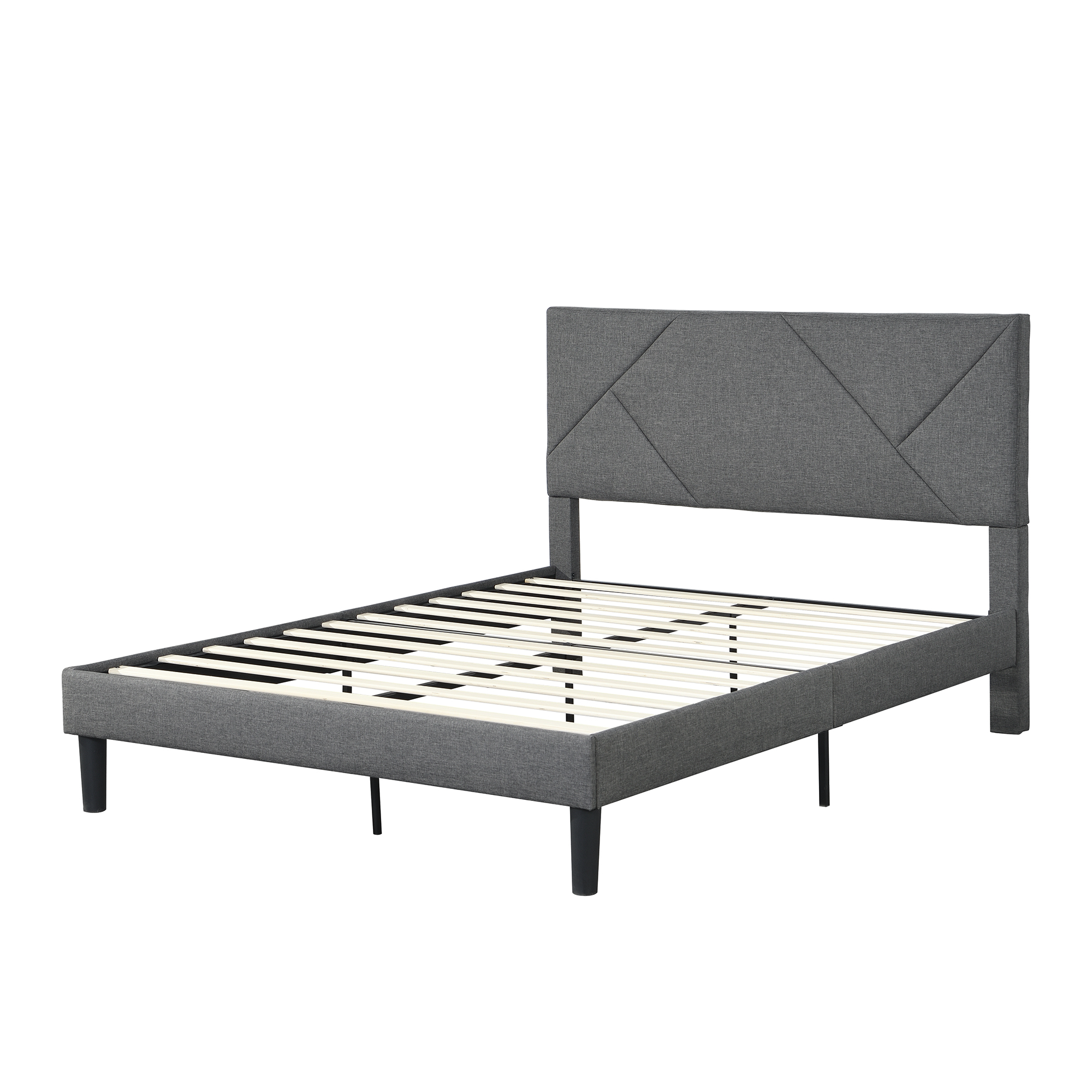 Queen Size Upholstered Platform Bed Frame with Headboard, Strong Wood Slat Support, Mattress Foundation, No Box Spring Needed, Easy Assembly, Gray