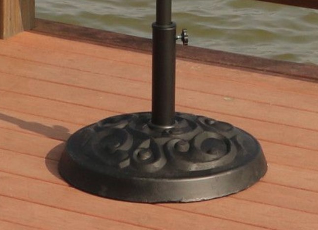 This umbrella base will perform the necessary task of holding your umbrella in place, and it will continue to do the job in style. Its poly-resin, rust-resistant coating will stay glamorous for years upon years to come. You can use it with multiple-sized umbrellas-- the base has a coupler to allow fitting of 1.5" to 1.89" diameter umbrella poles. Plus it has a hand-turn knob for securing the umbrella to the base.