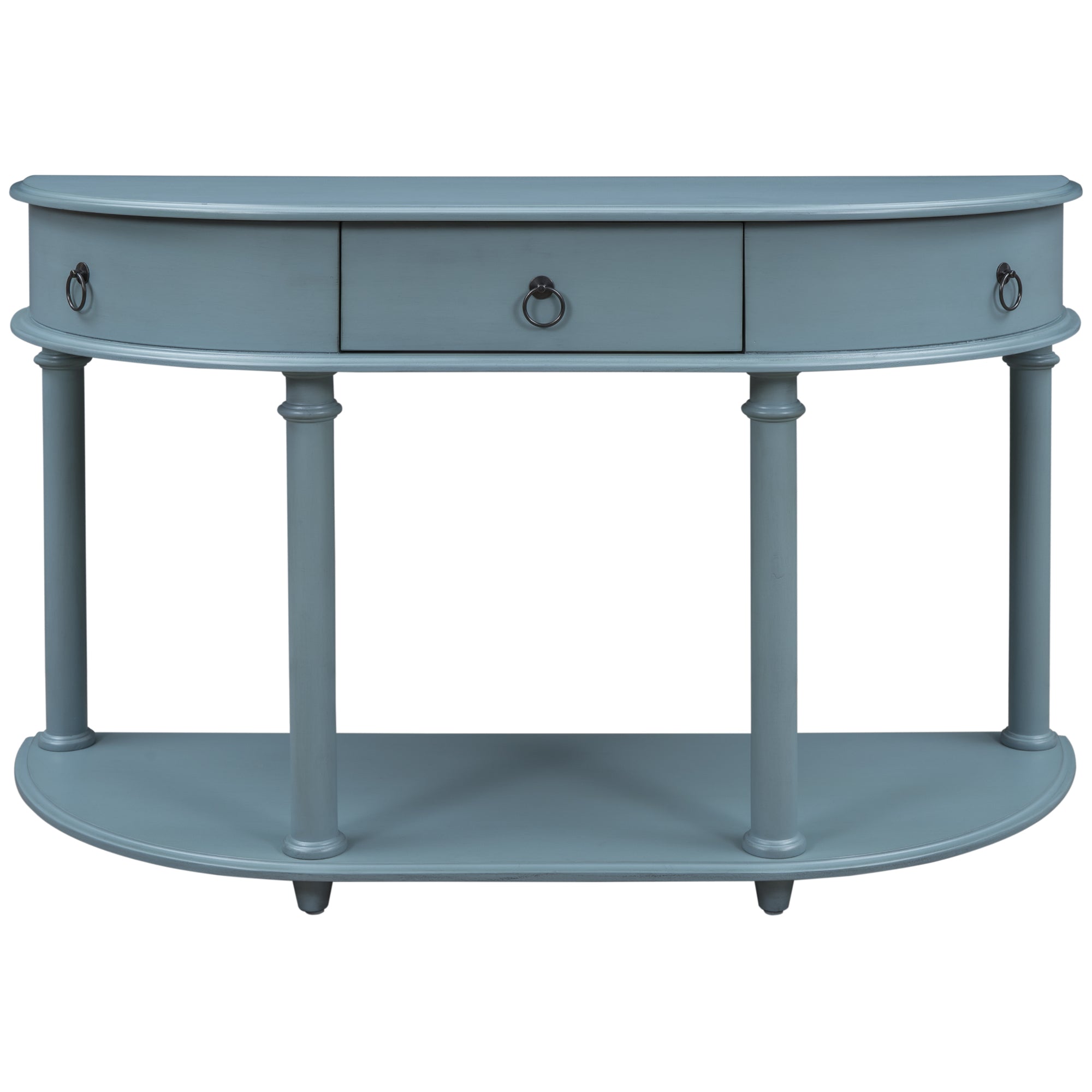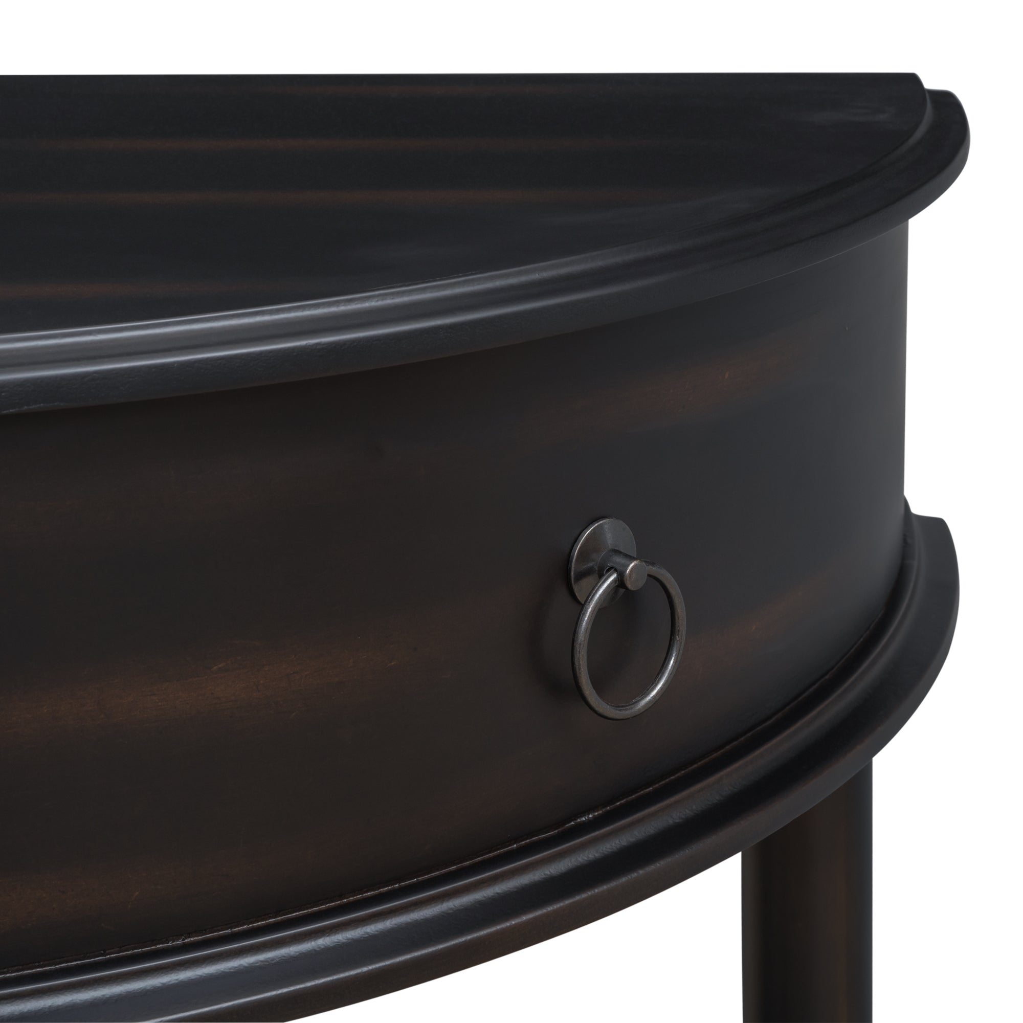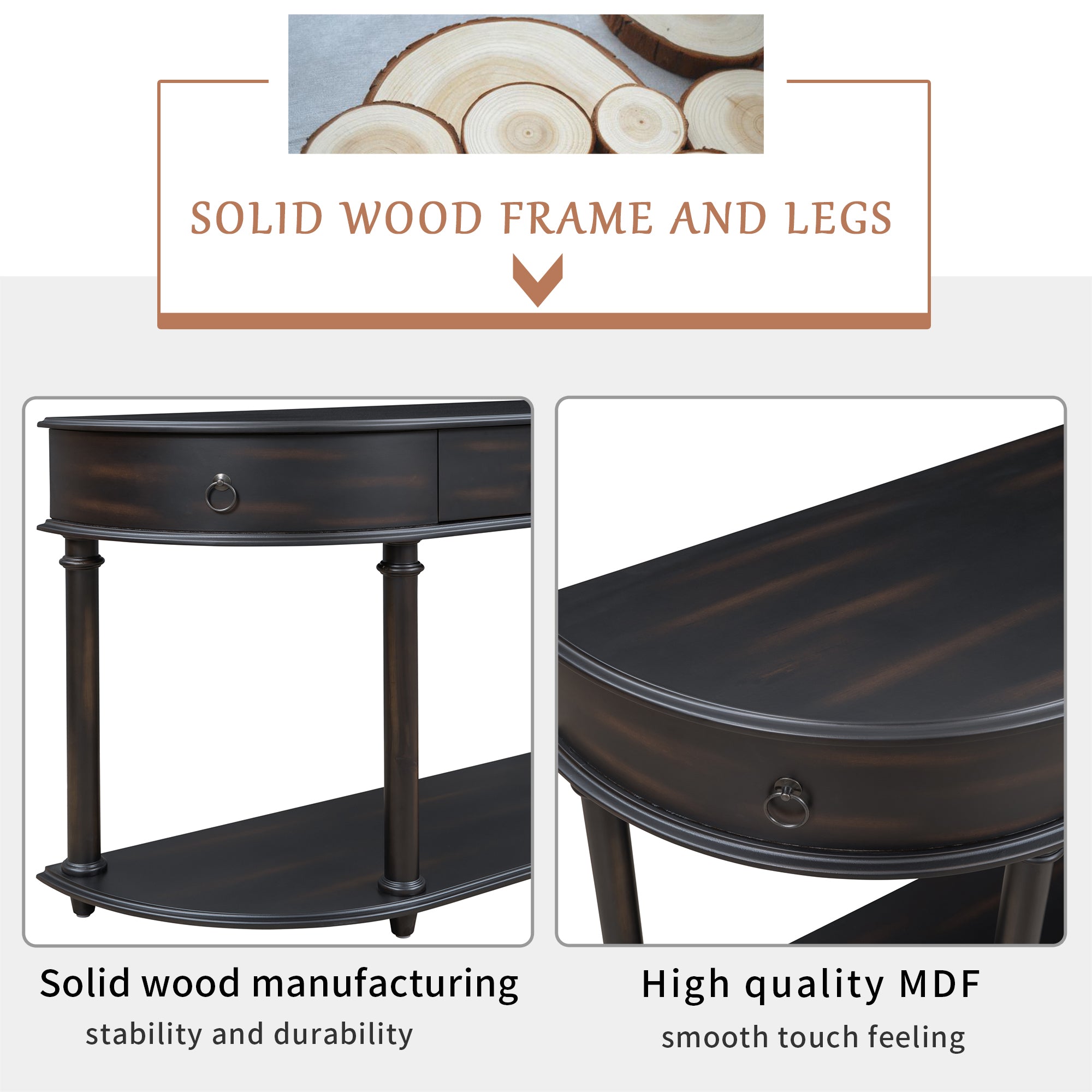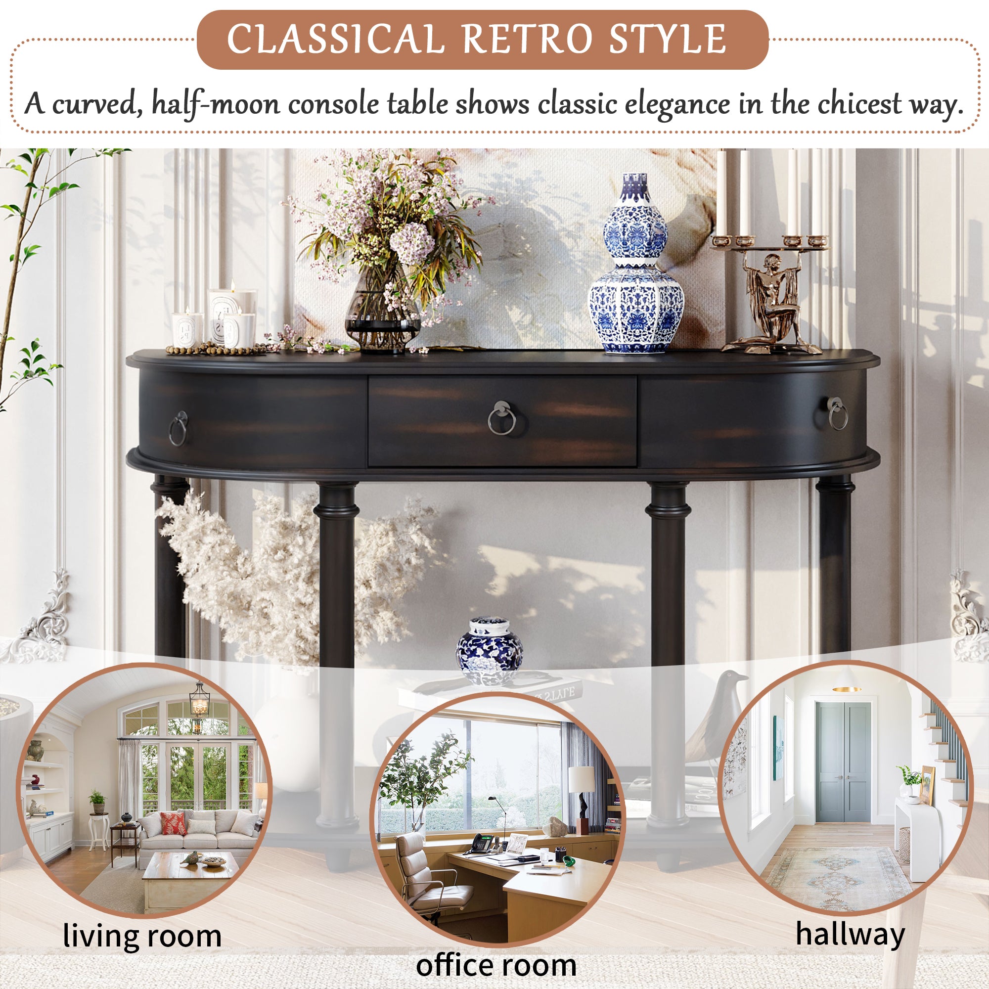 Retro Curved Console Table, Solid Wood Frame and Legs with Single Drawer Half Moon Entry Table