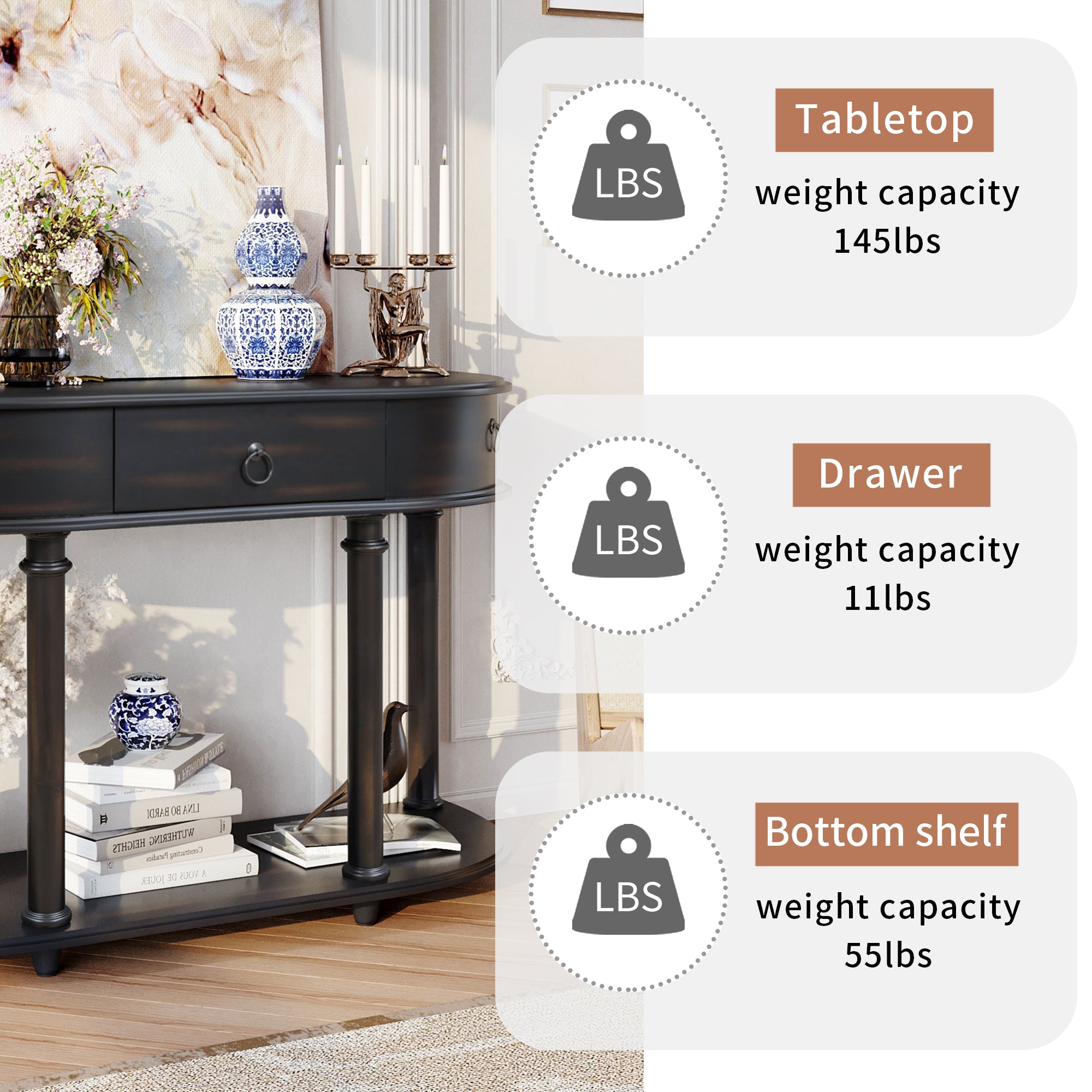 Solid wood frame and legs: The frame and legs are made of solid wood to ensure stability and durability. High-quality MDF can ensure smooth touch. Through long-term use, it ensures its stability, firmness and low maintenance cost. Considering the needs of daily use, the table top can bear 145 pounds, the bottom shelf can bear 55 pounds, and the drawer can bear 11 pounds.
