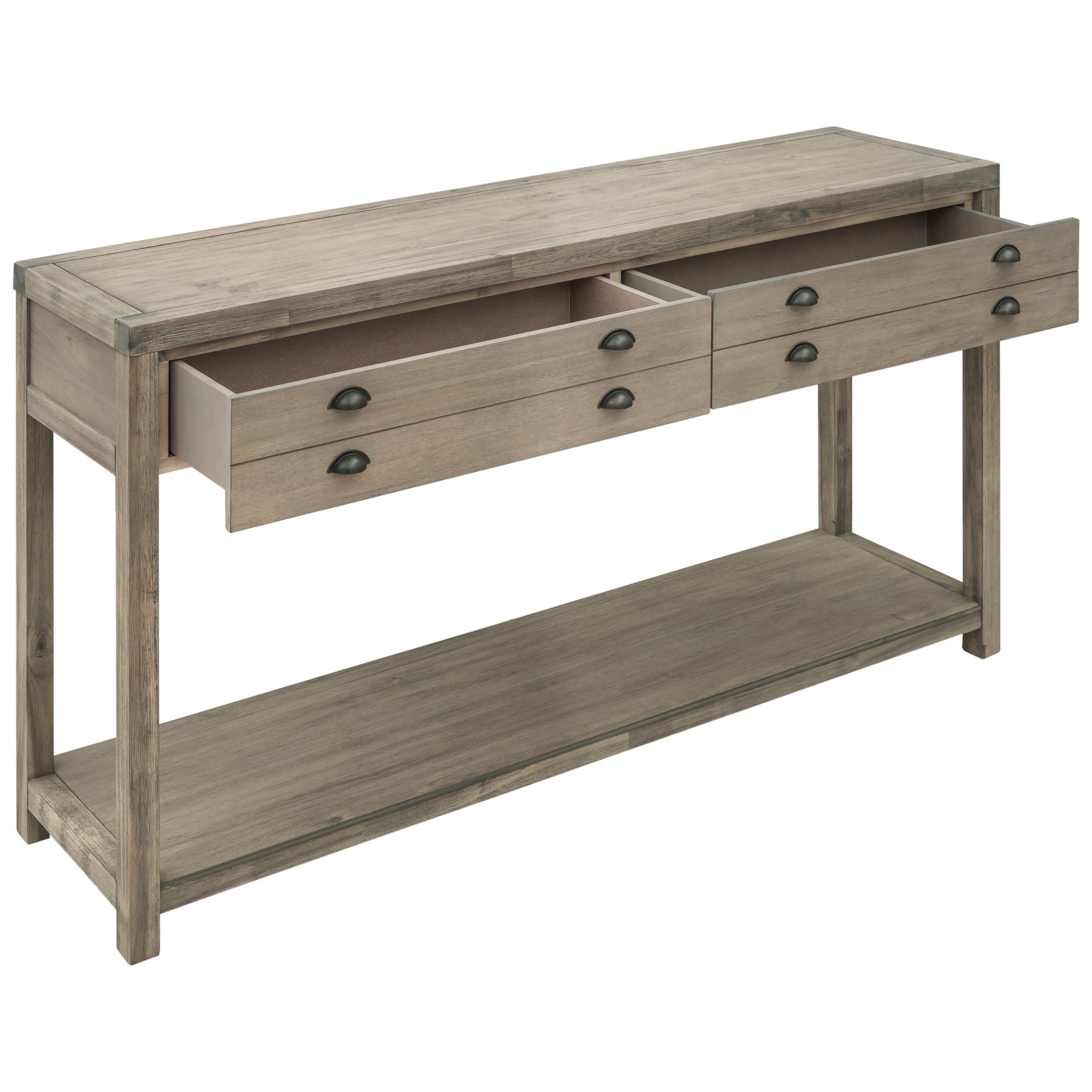 Retro Style Wooden Console Table with Two Big Top Drawers and Open Style Shelf Large Storage Space