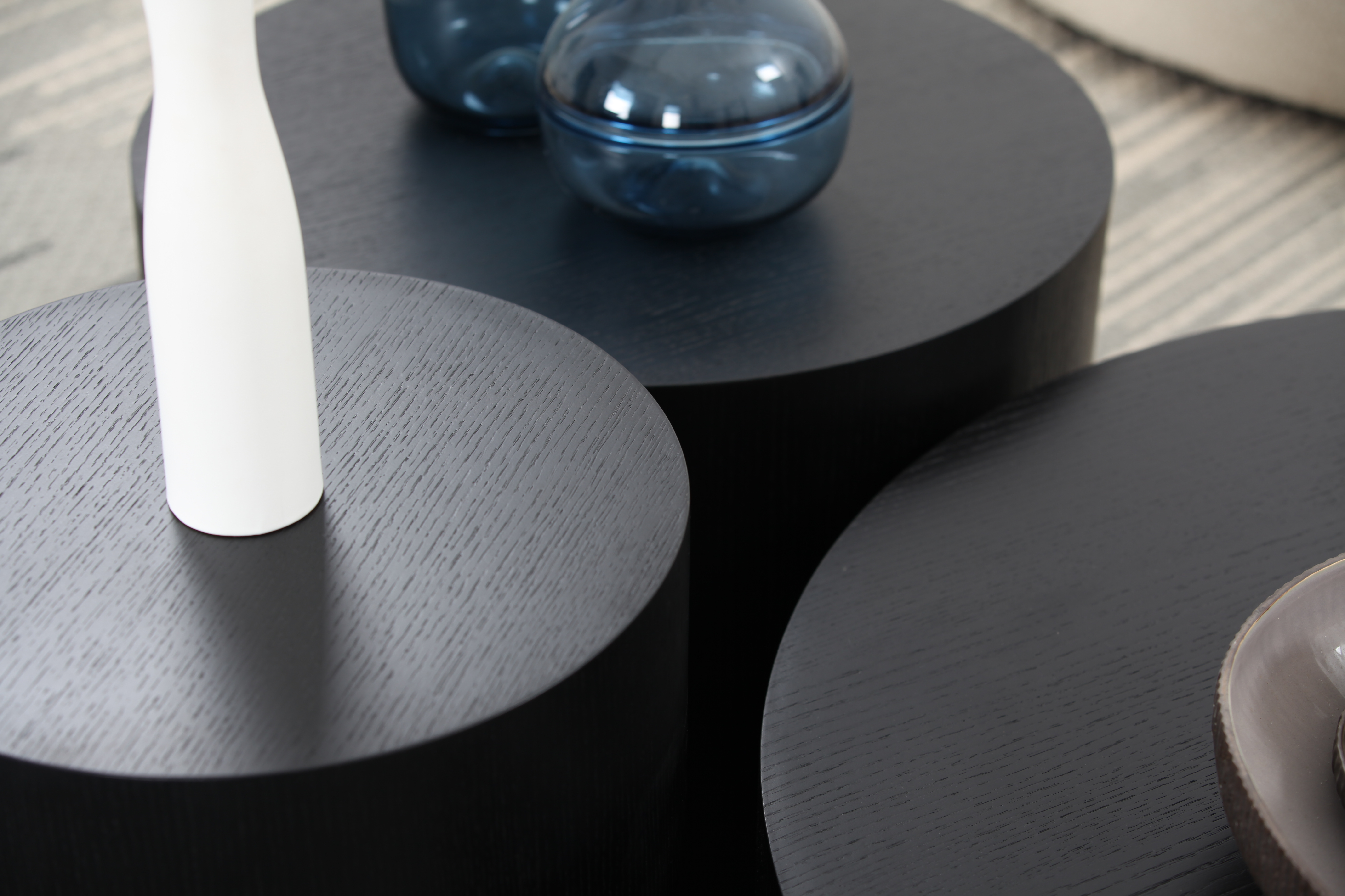 The set includes two different-sized tables - which can be used as a side table and a coffee table - and stackable tables.Accent your living space with these side tables in two sizes,15" H and 13" H. They nest neatly together or work wonderfully apart—an extra measure of elegance.FeaturesPerfect technology - the high-end walnut + oak welt technology is adopted. The pure manual welt has no gap and presents a perfect radian, which makes this sidetable stand out.Featuring a simple modern design and no any frills, this circle coffee table can be naturally integrated into a variety of home decor. With a sturdy and refined structure.Various functions - the sidetable can be used as a tea table in the living room to drink tea and receive guests, as a bedside table in the bedroom to hold bedside supplies, as a leisure side table in the courtyard, or as a footstool of a chair or bed. It has various functions and is flexible.The rustic coffee table is made of MDF composite. Wear-resistant coating and sturdy construction can ensure long time use and not easily damaged. The overall finish is quite smooth and waterproof without any smell no harm and easier to clean, Weight limit of top board is 275 lbs. No assembly - don't worry about cumbersome installation steps and a large number of indistinguishable screws. After purchase, remove the outer package and use it directly.