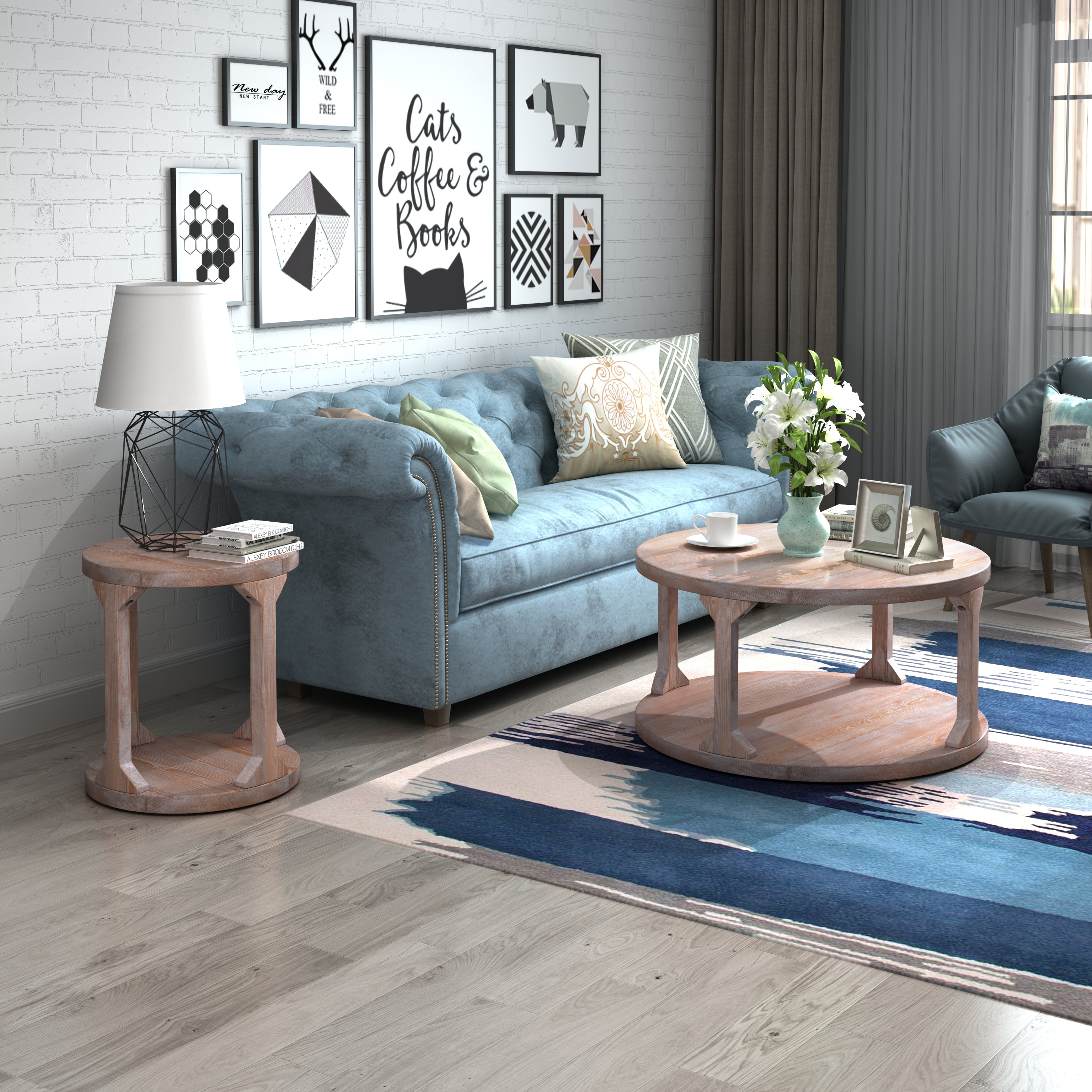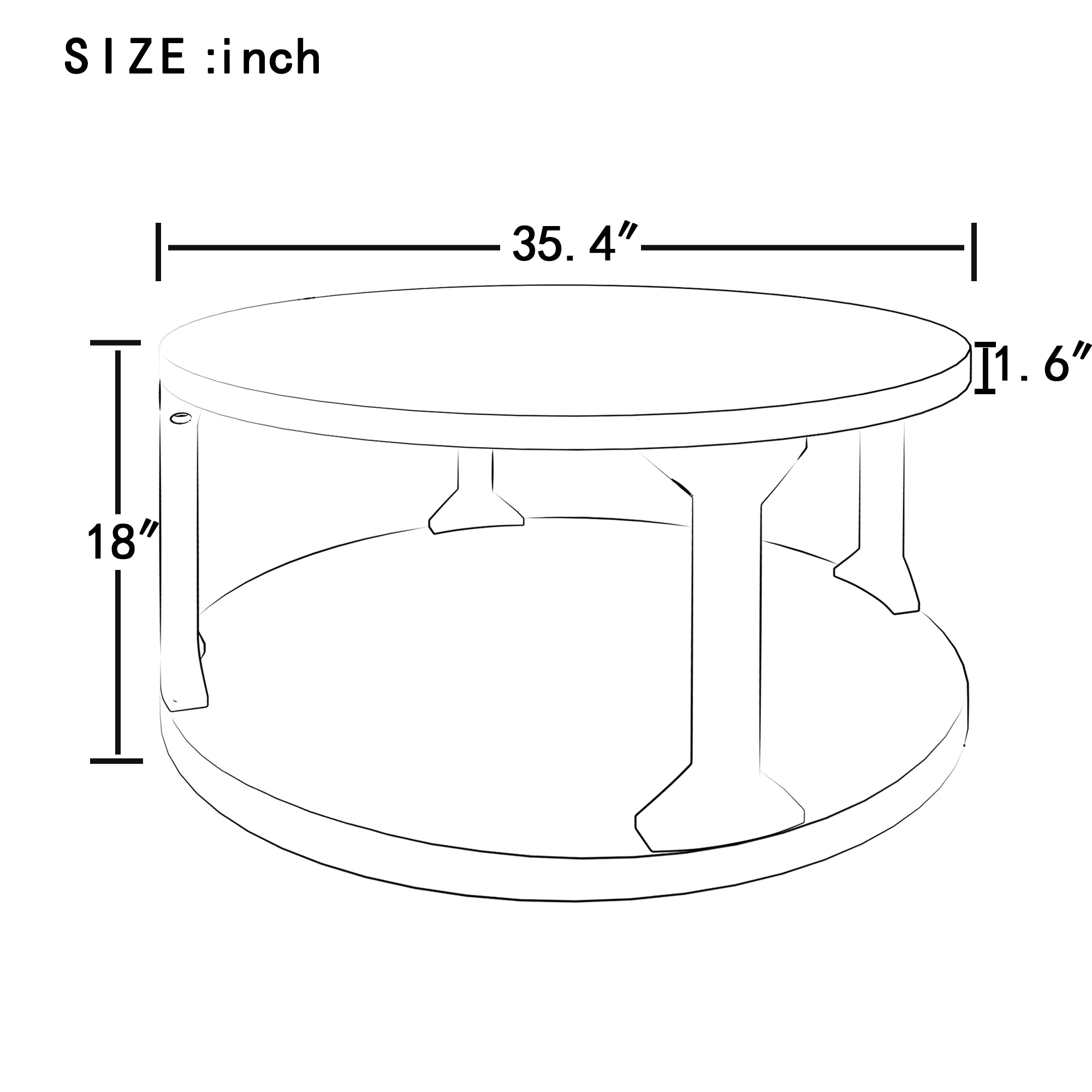 Round Rustic Coffee Table Solid Wood Coffee Table for Living Room with Dusty Wax Coating