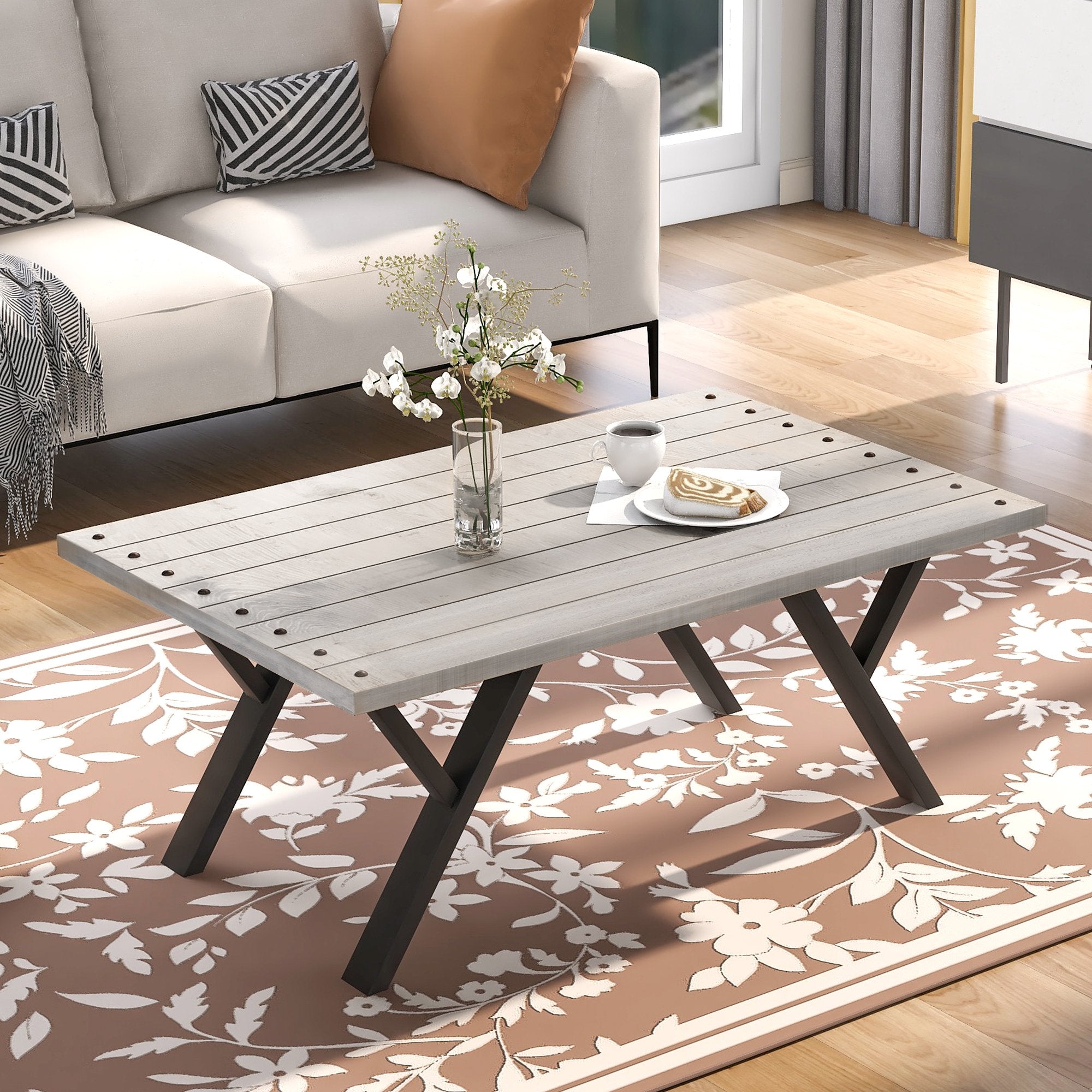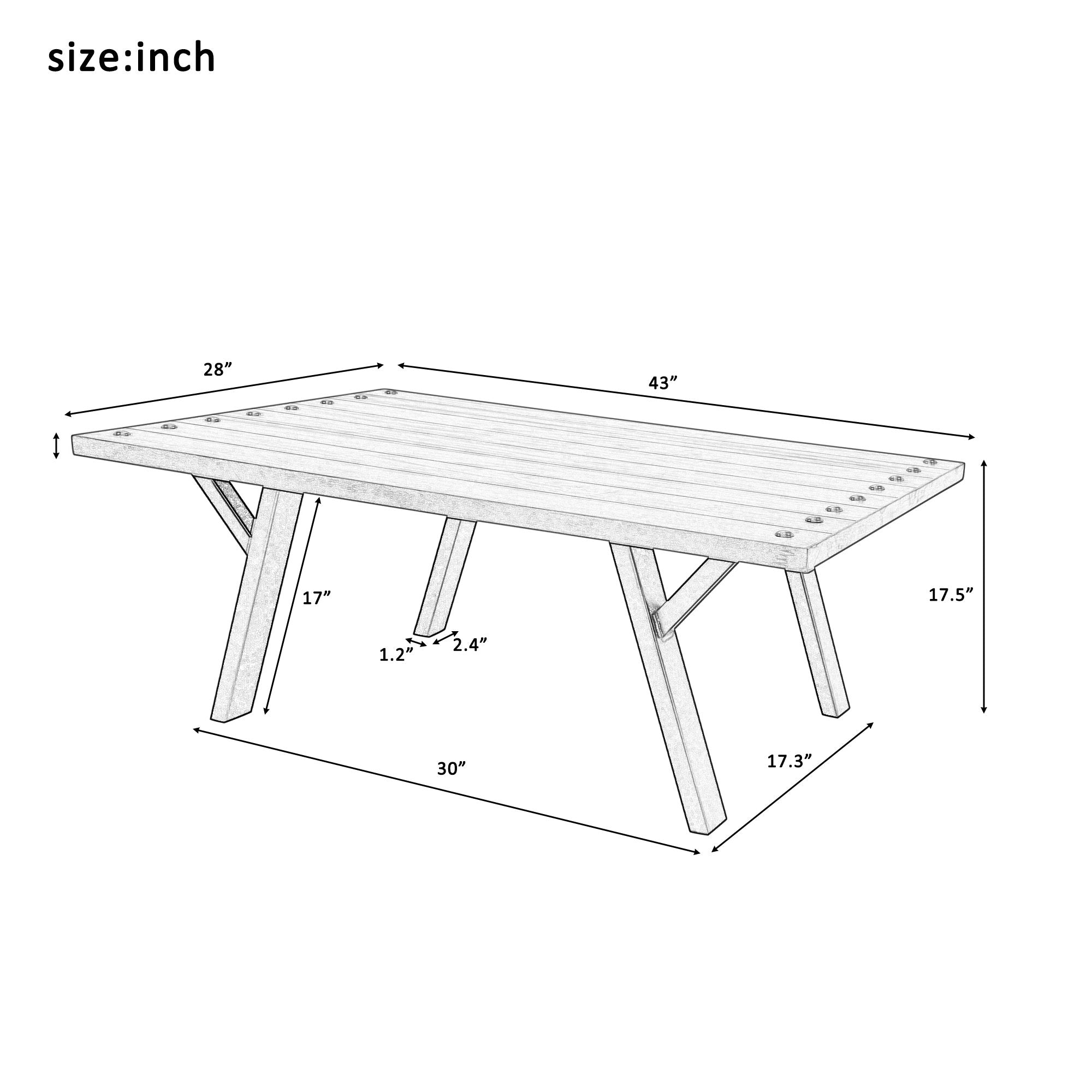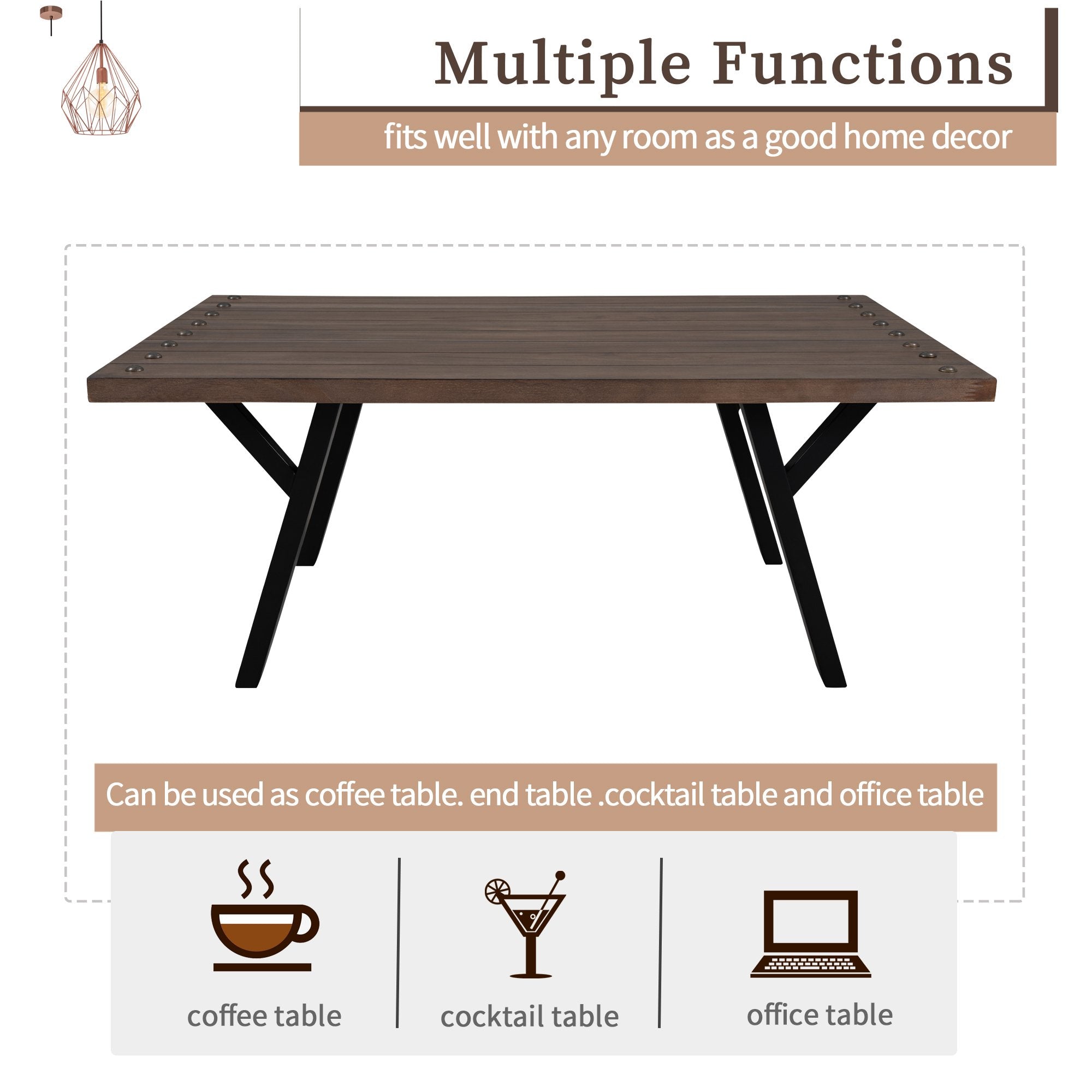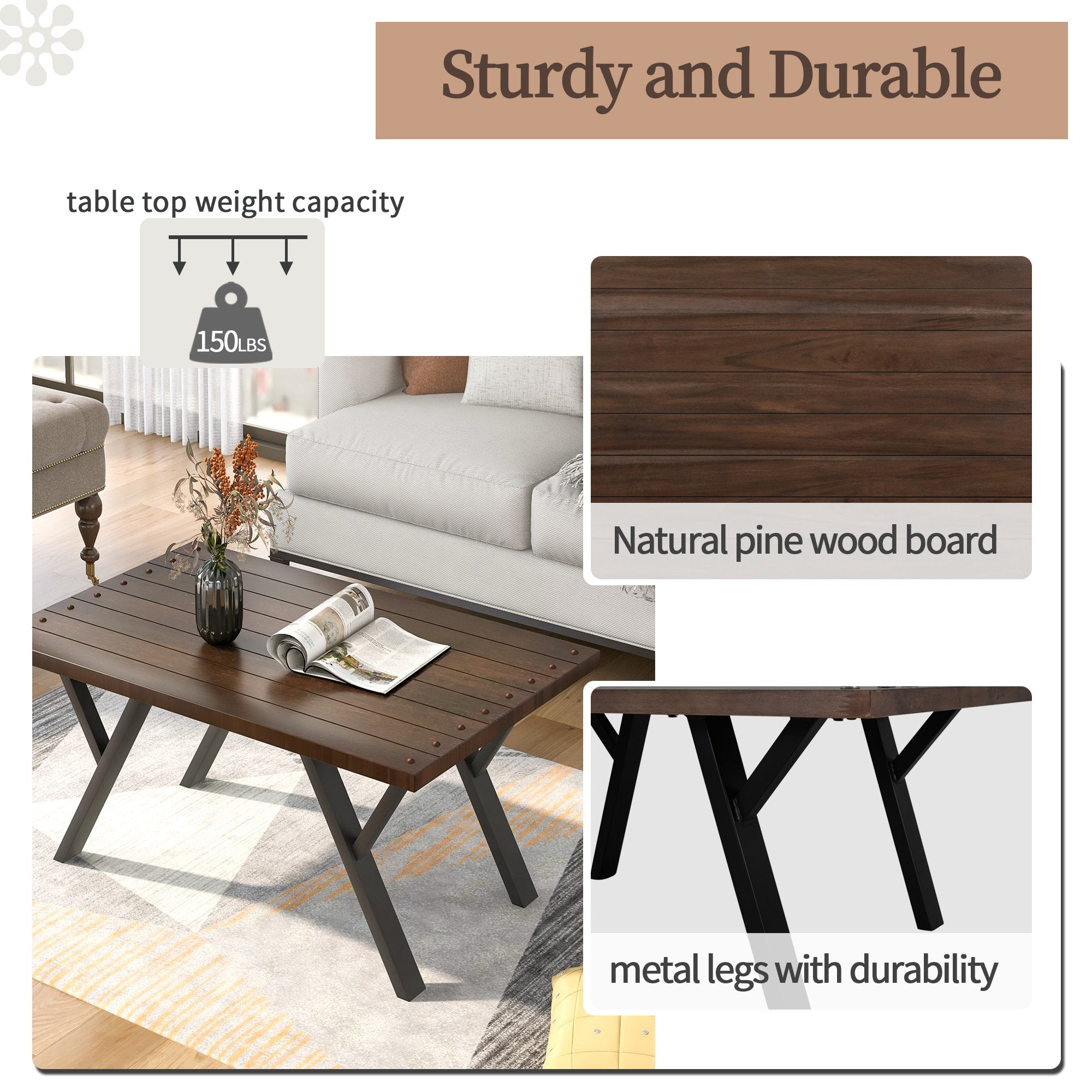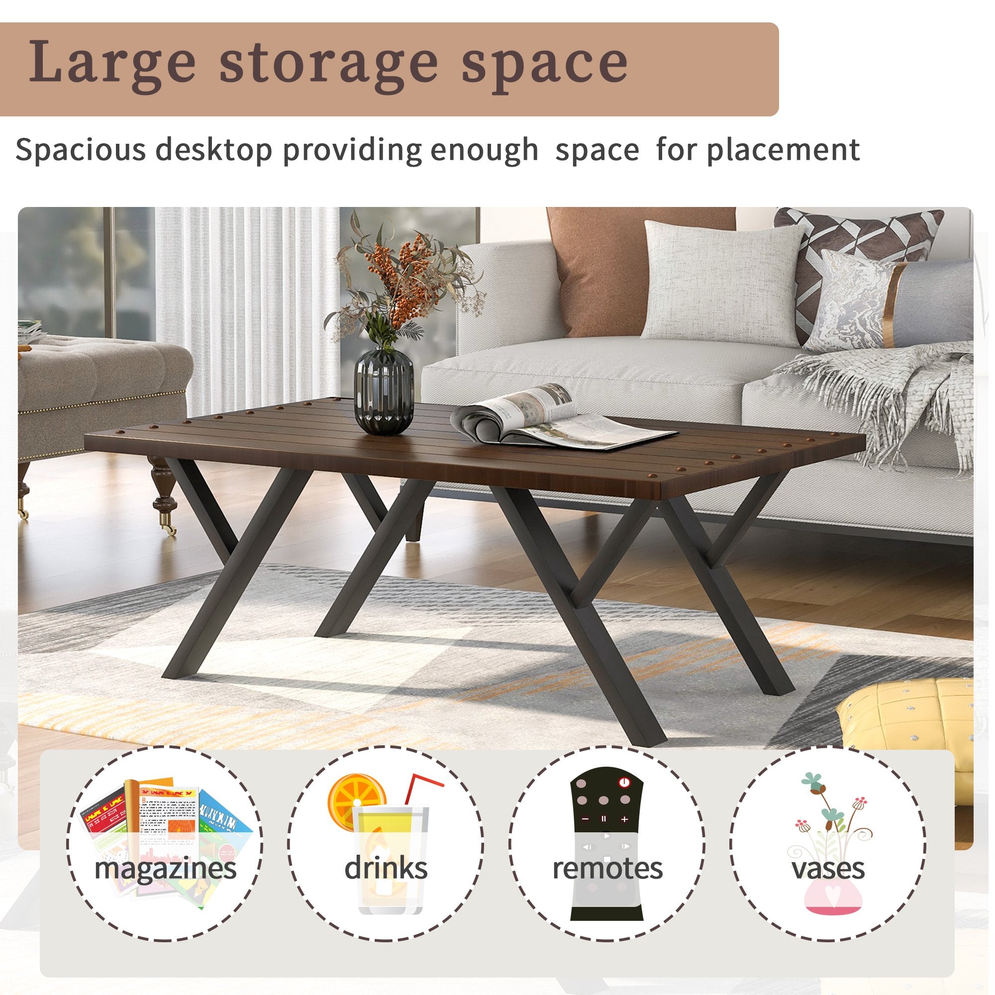 Rustic Coffee table, Wood Top and Metal Legs Table for Living Room,43"