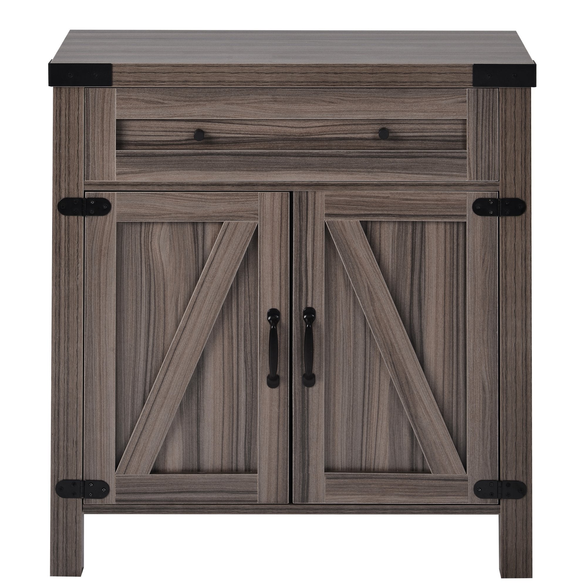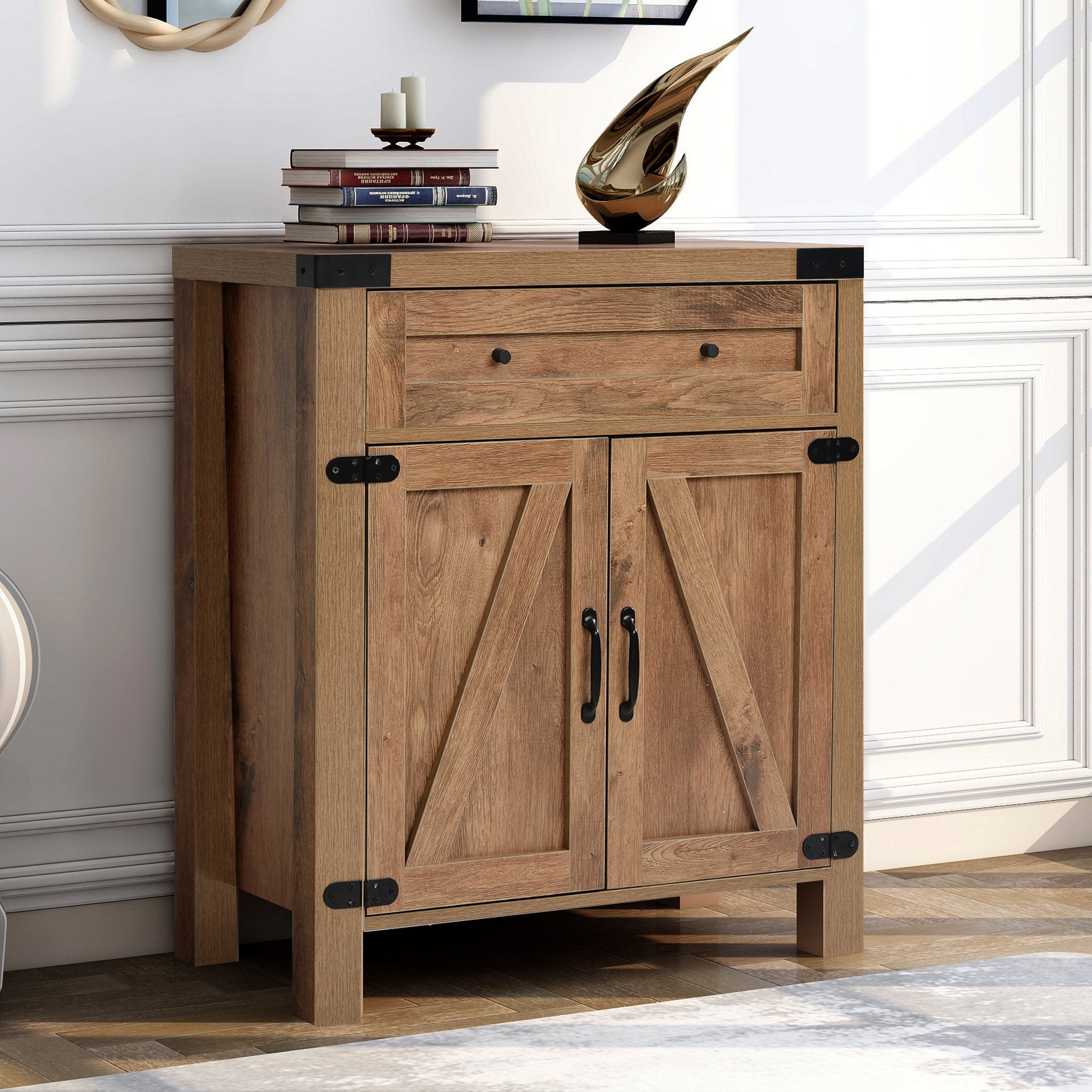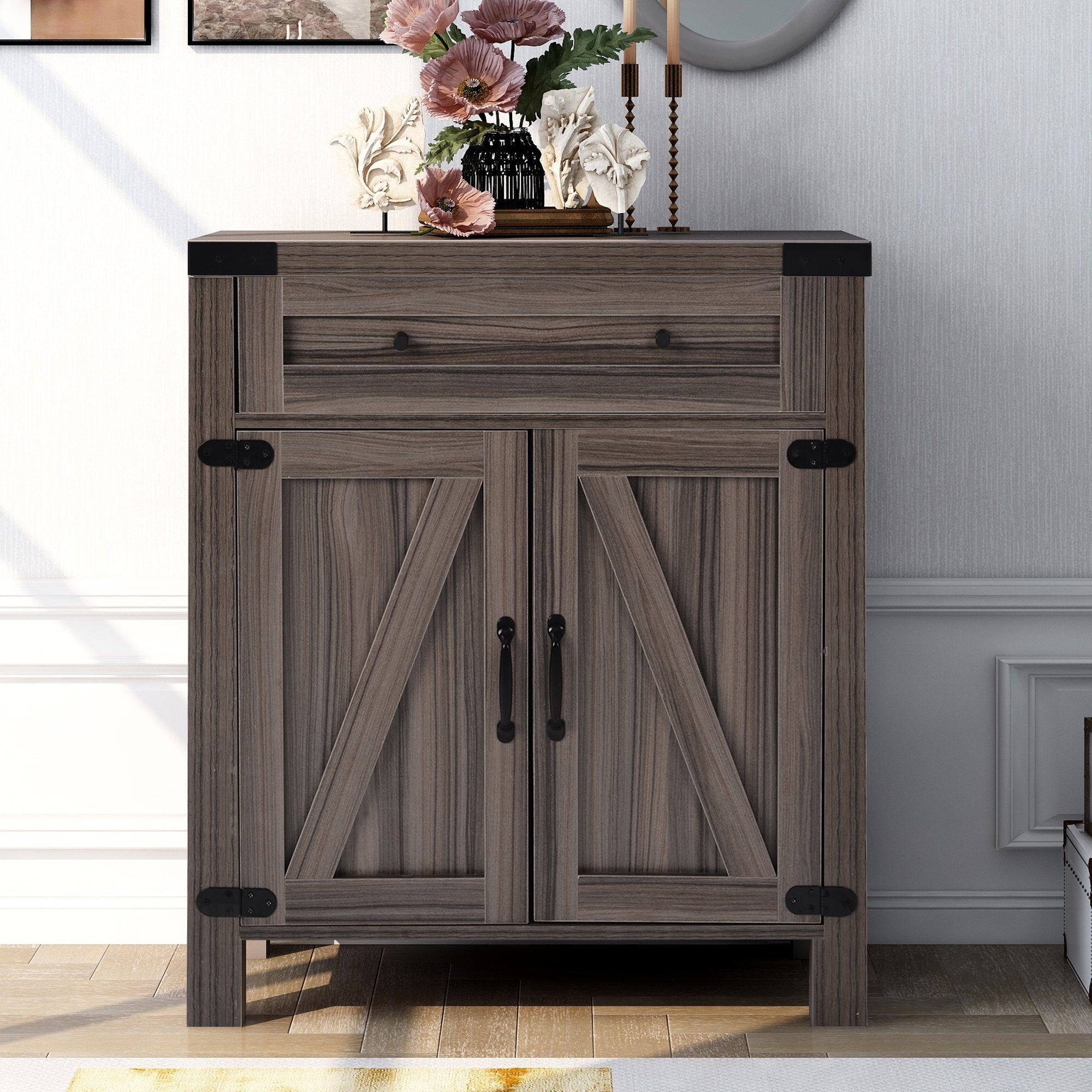 Give your space a dose of refreshing rustic flair with this barnyard inspired console table. Featuring a natural wood finished in a classic weathered gray tone, this is the perfect statement furniture piece that will add unique character to your home. The upper drawer and double barnyard base doors feature thick plank detailing while the metal handles and exposed fixtures are finished in a matte black powder coating for added charm. Built with premium smoothed MDF wood , this console table is highly durable with a solid structure while also providing plenty of storage space for your household essentials.