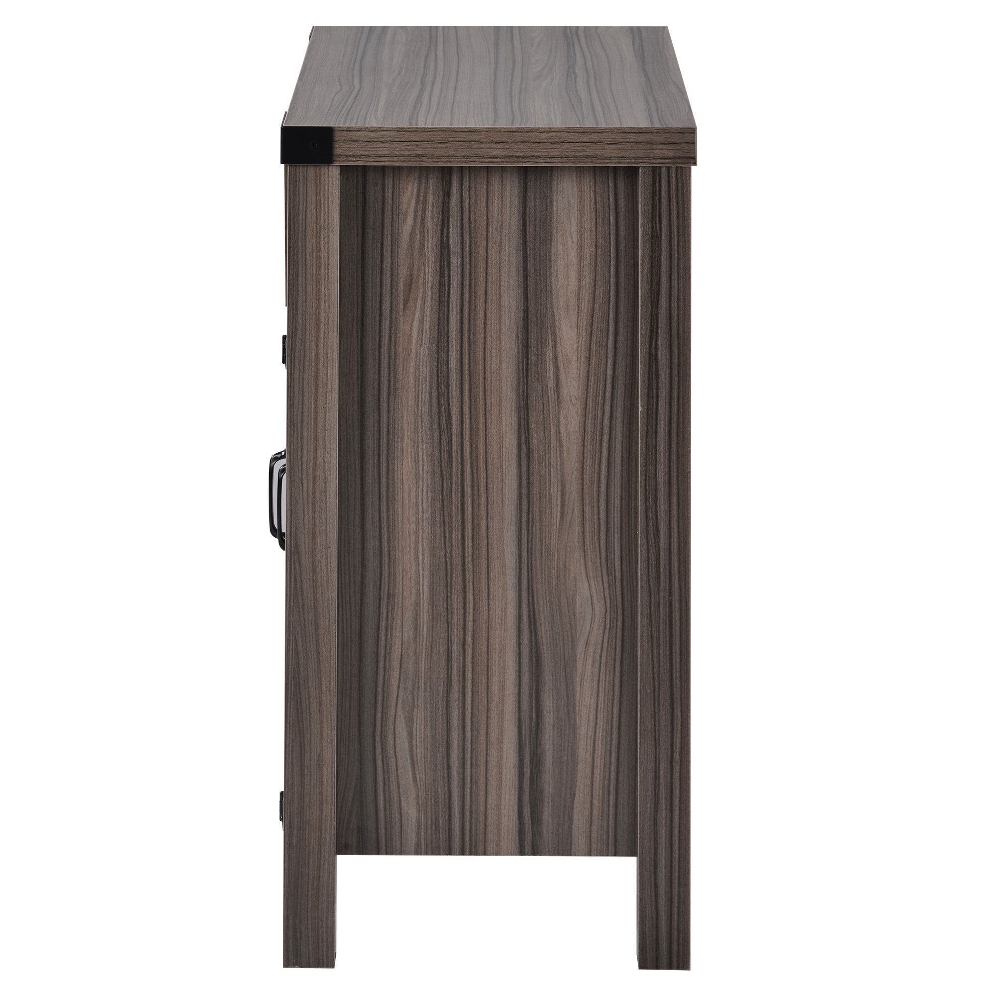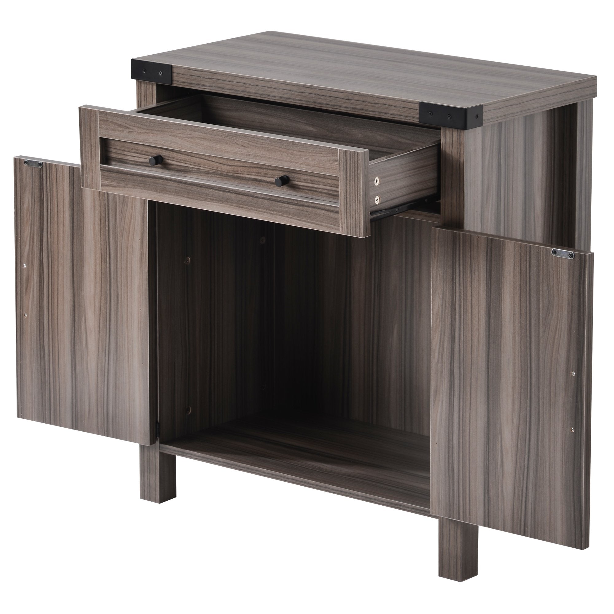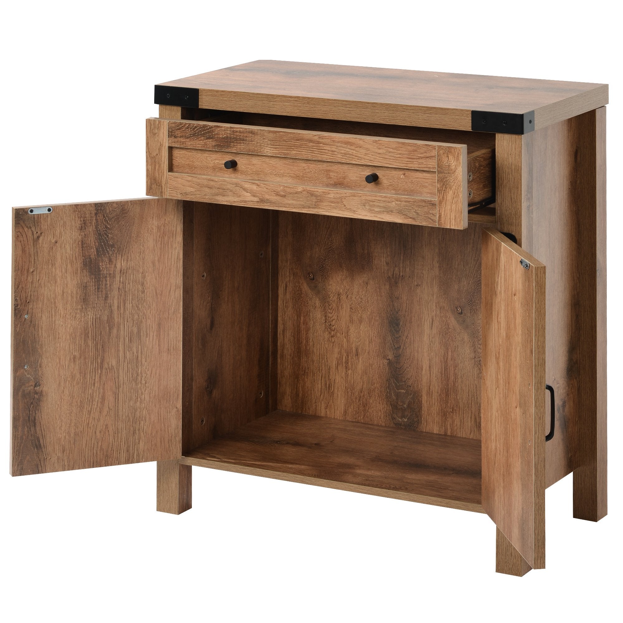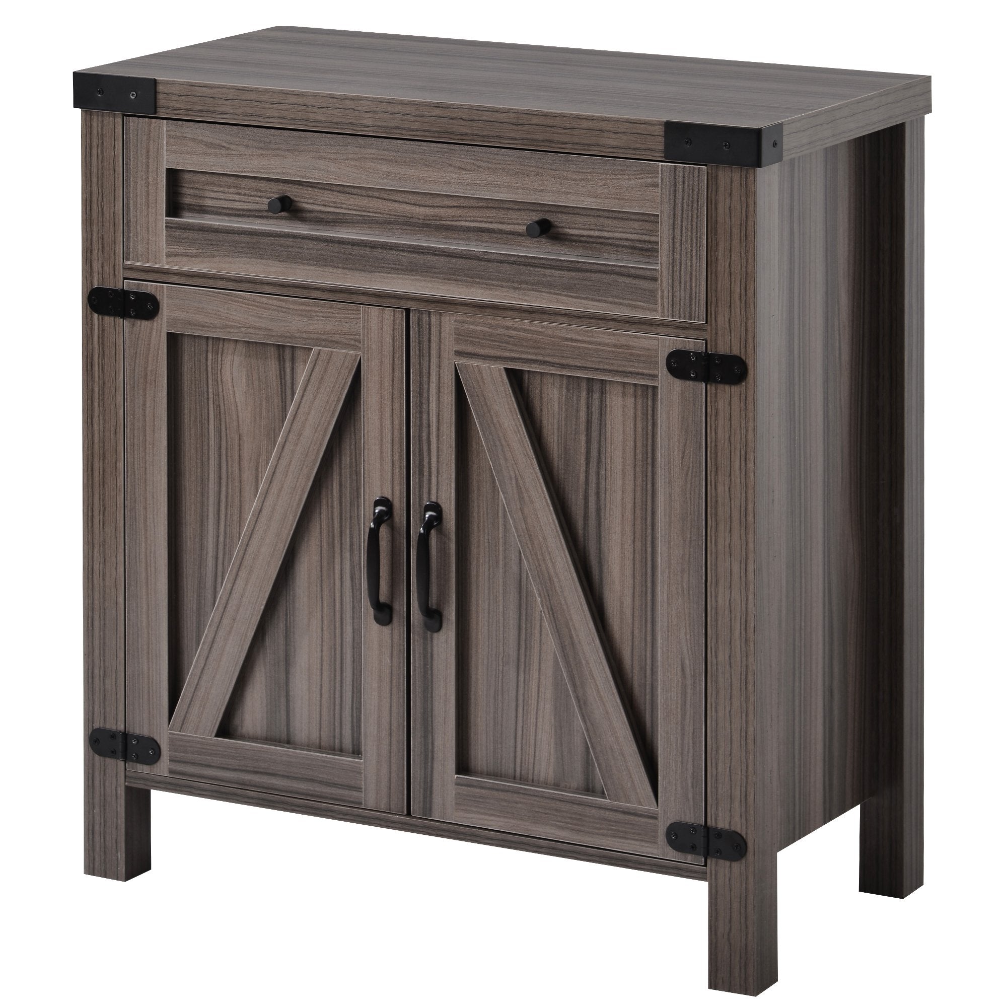 Give your space a dose of refreshing rustic flair with this barnyard inspired console table. Featuring a natural wood finished in a classic weathered gray tone, this is the perfect statement furniture piece that will add unique character to your home. The upper drawer and double barnyard base doors feature thick plank detailing while the metal handles and exposed fixtures are finished in a matte black powder coating for added charm. Built with premium smoothed MDF wood , this console table is highly durable with a solid structure while also providing plenty of storage space for your household essentials.