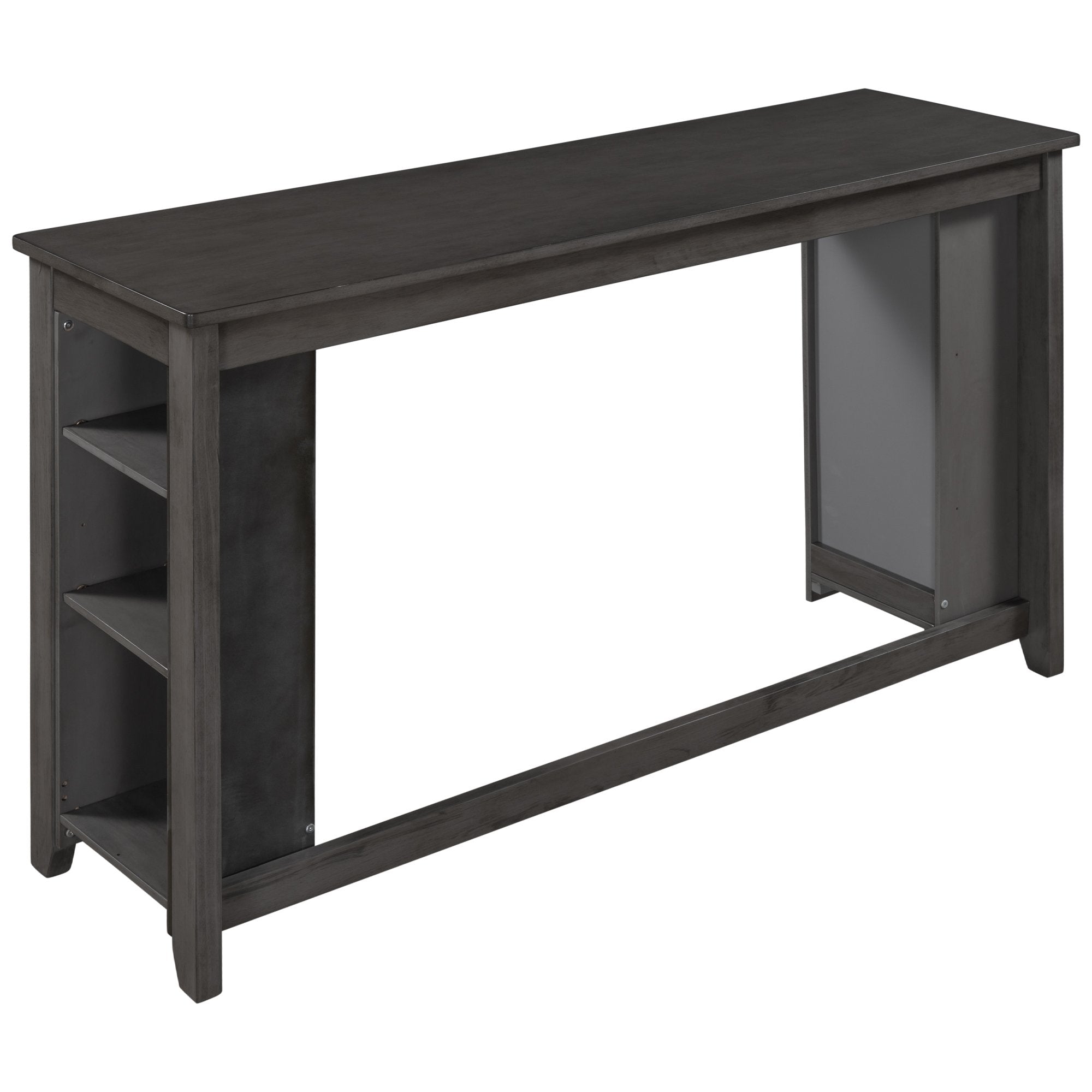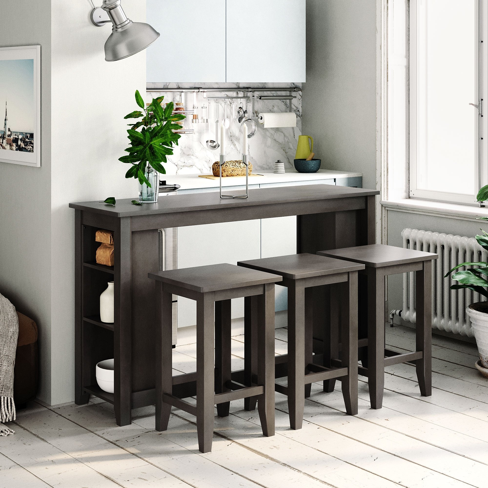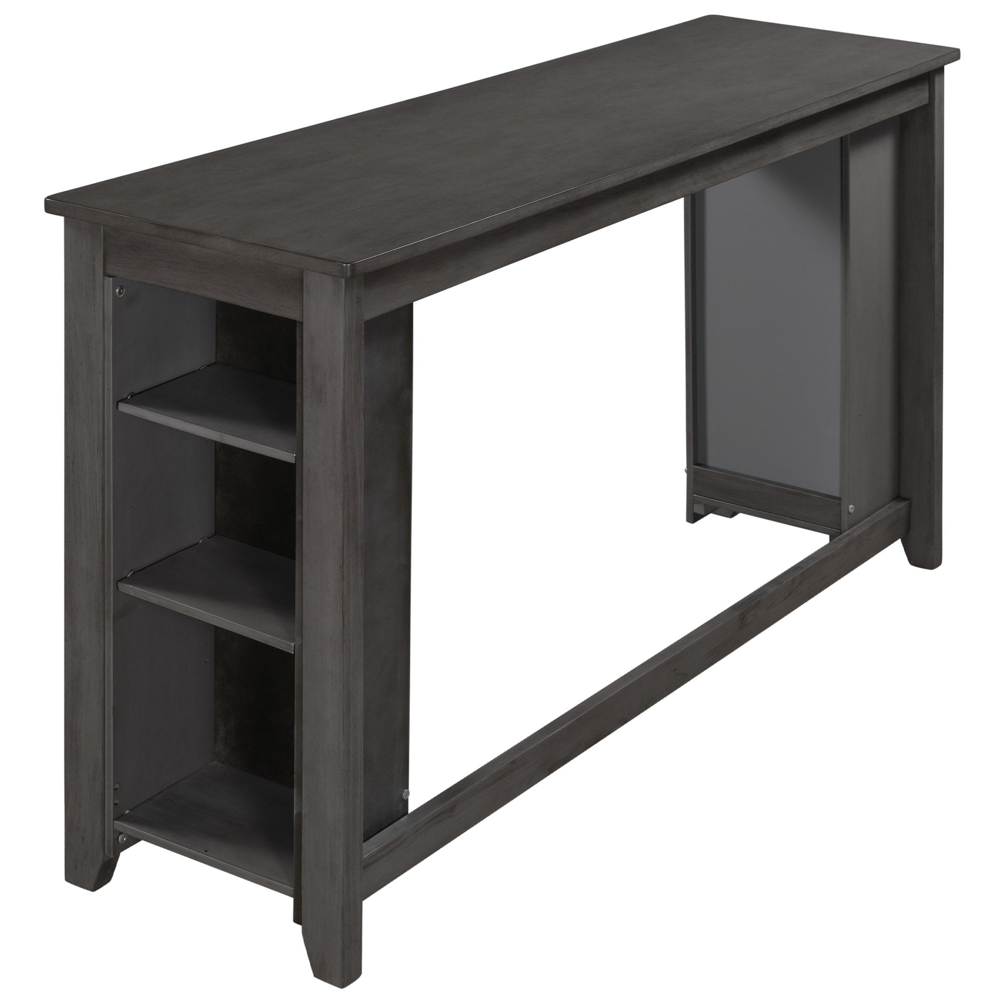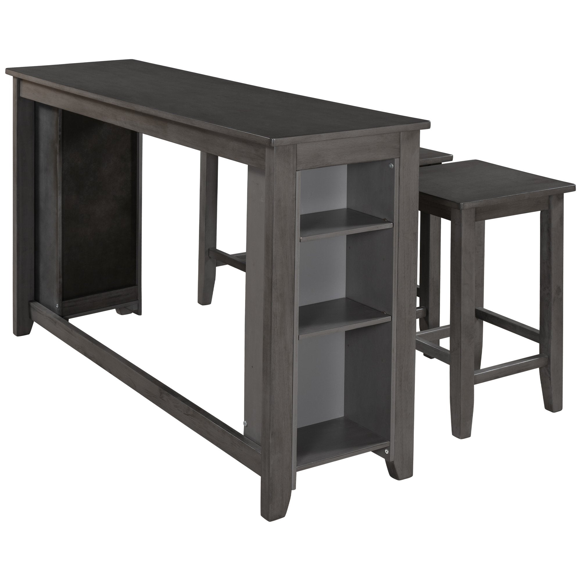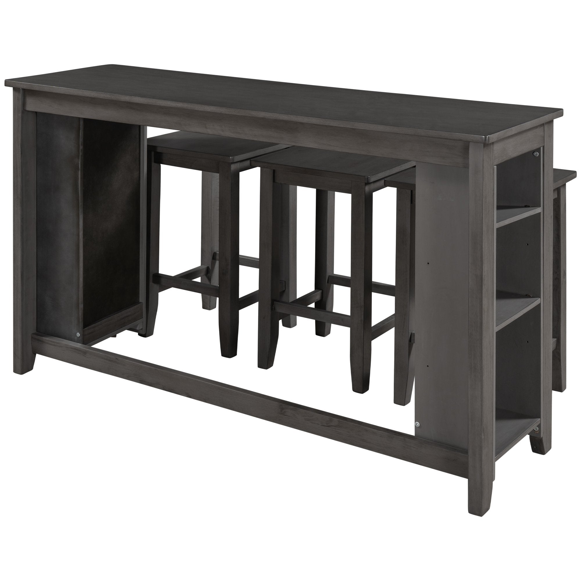 Rustic Farmhouse Counter Height Wood 4-Piece Kitchen Dining Table Set with 3 Stools and Storage Shelves, Gray