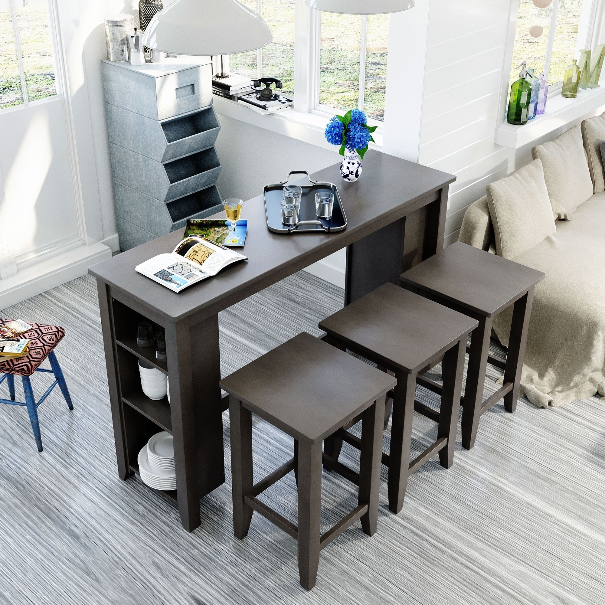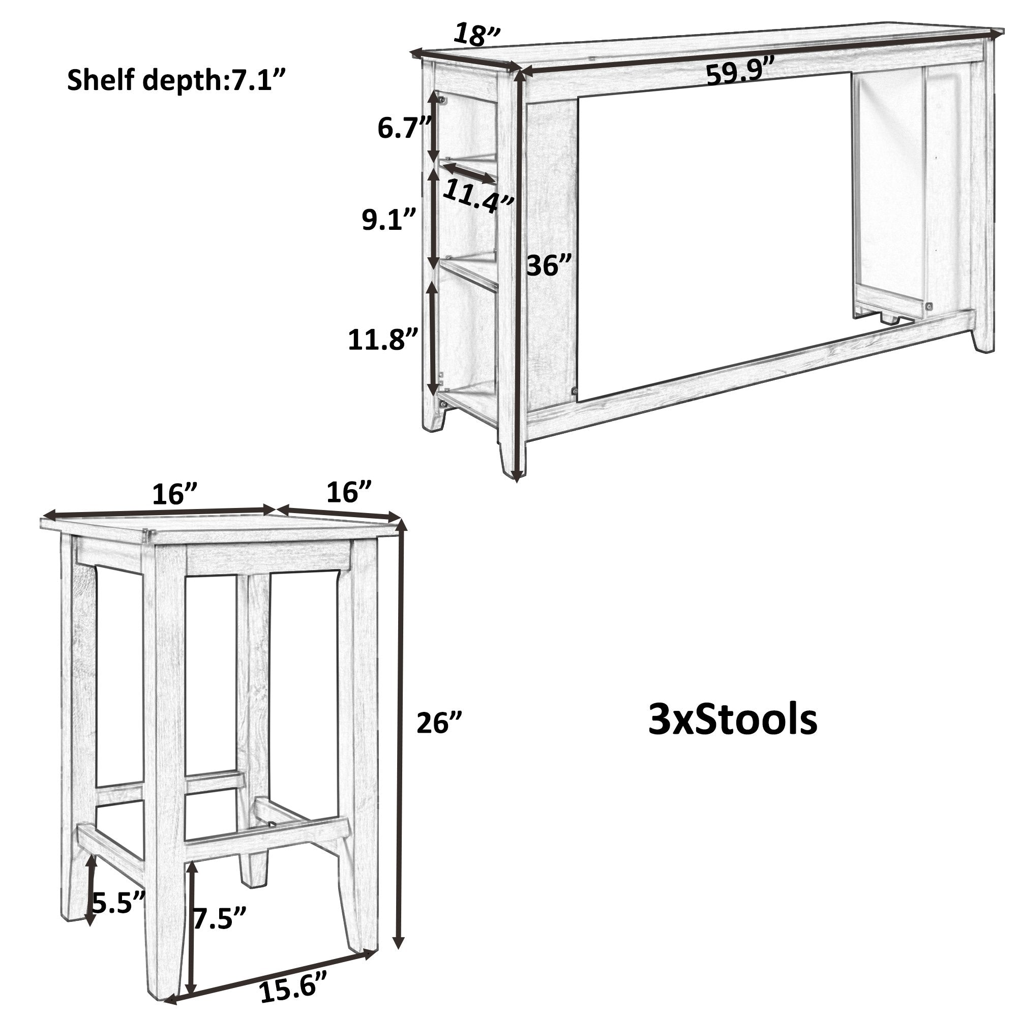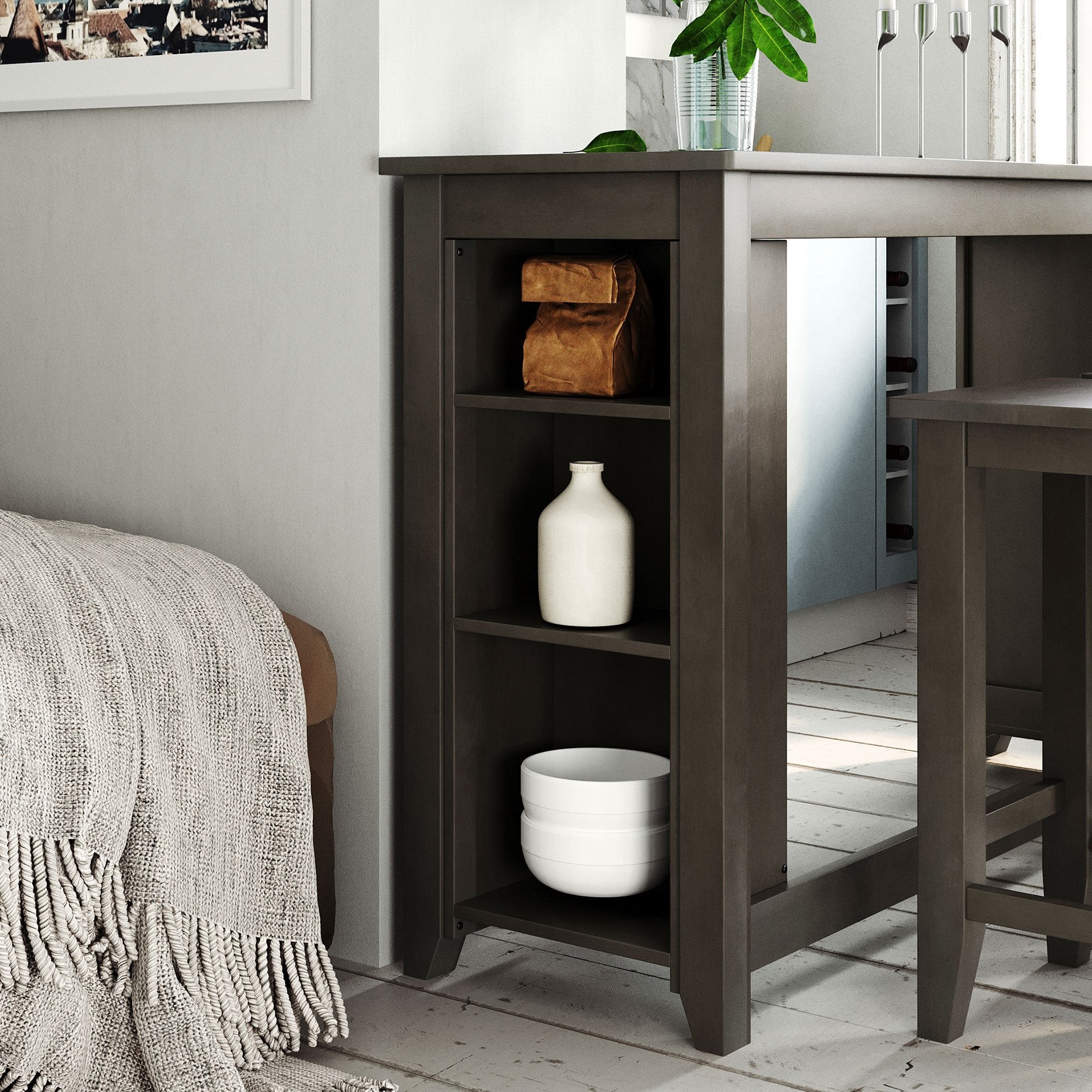 Space-saving Solution---Whether you want to create an addition to your dining space, den or kitchen area, this set is the perfect choice, featuring space saving convenience. The three-tiered shelf on the side allows you to organize and display items within reach.