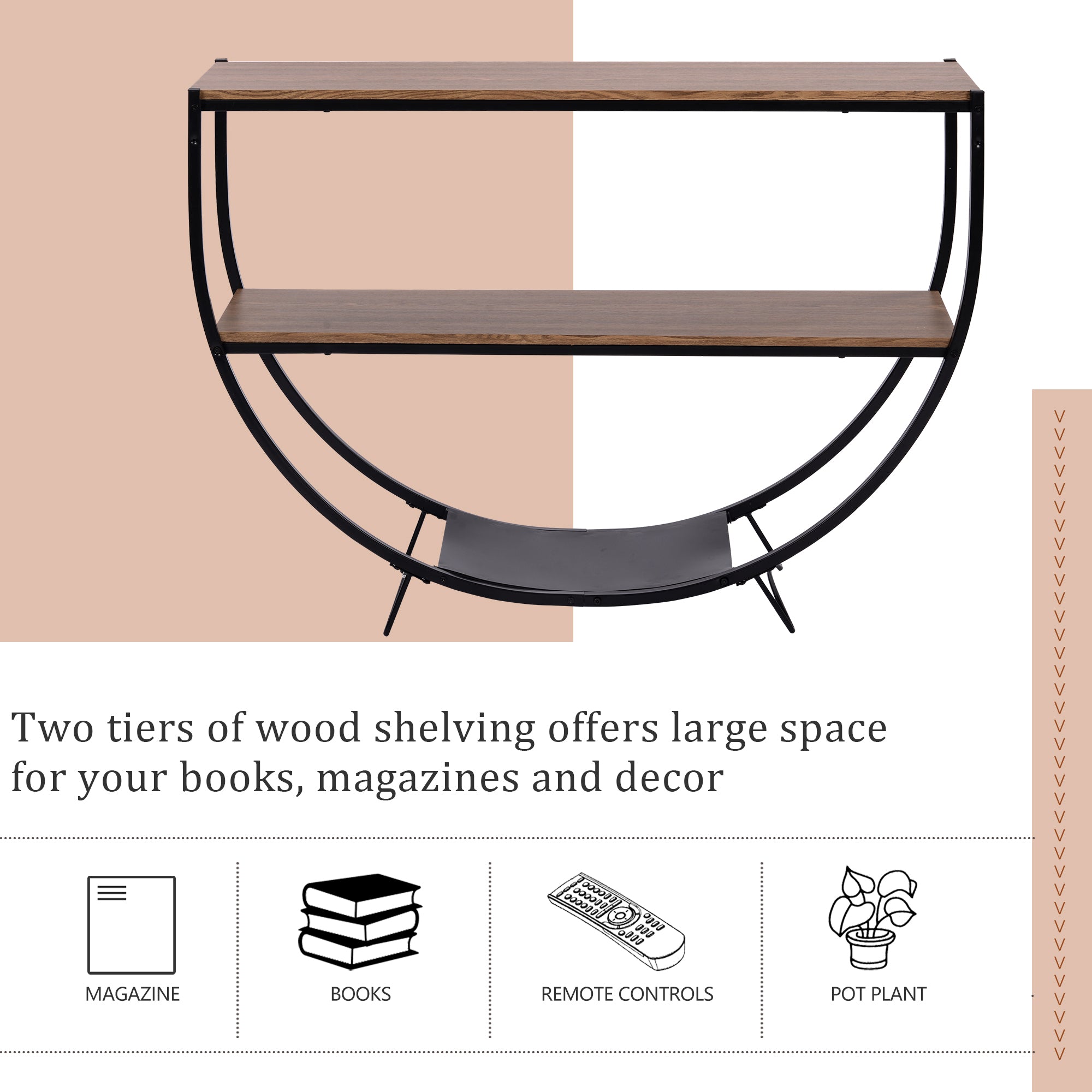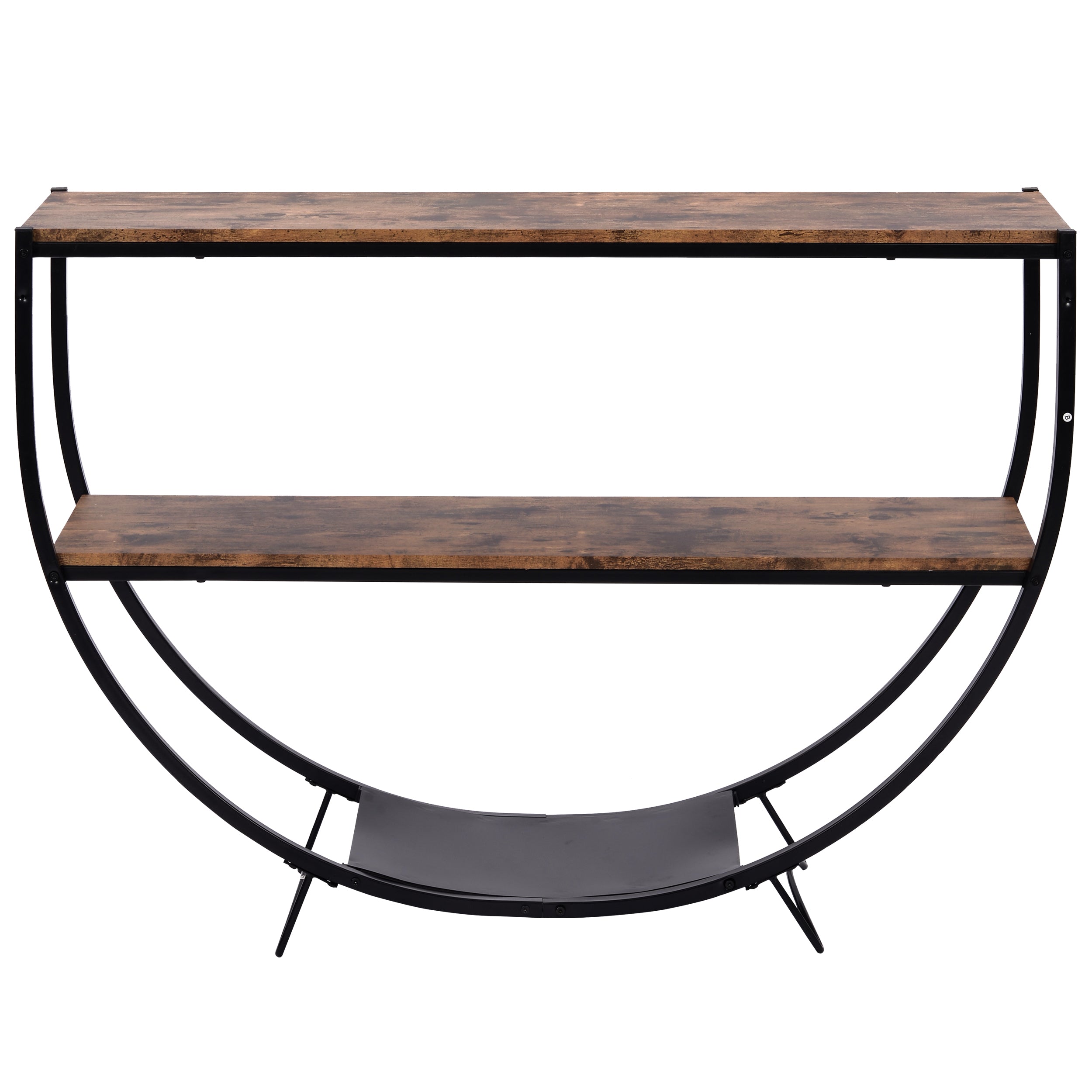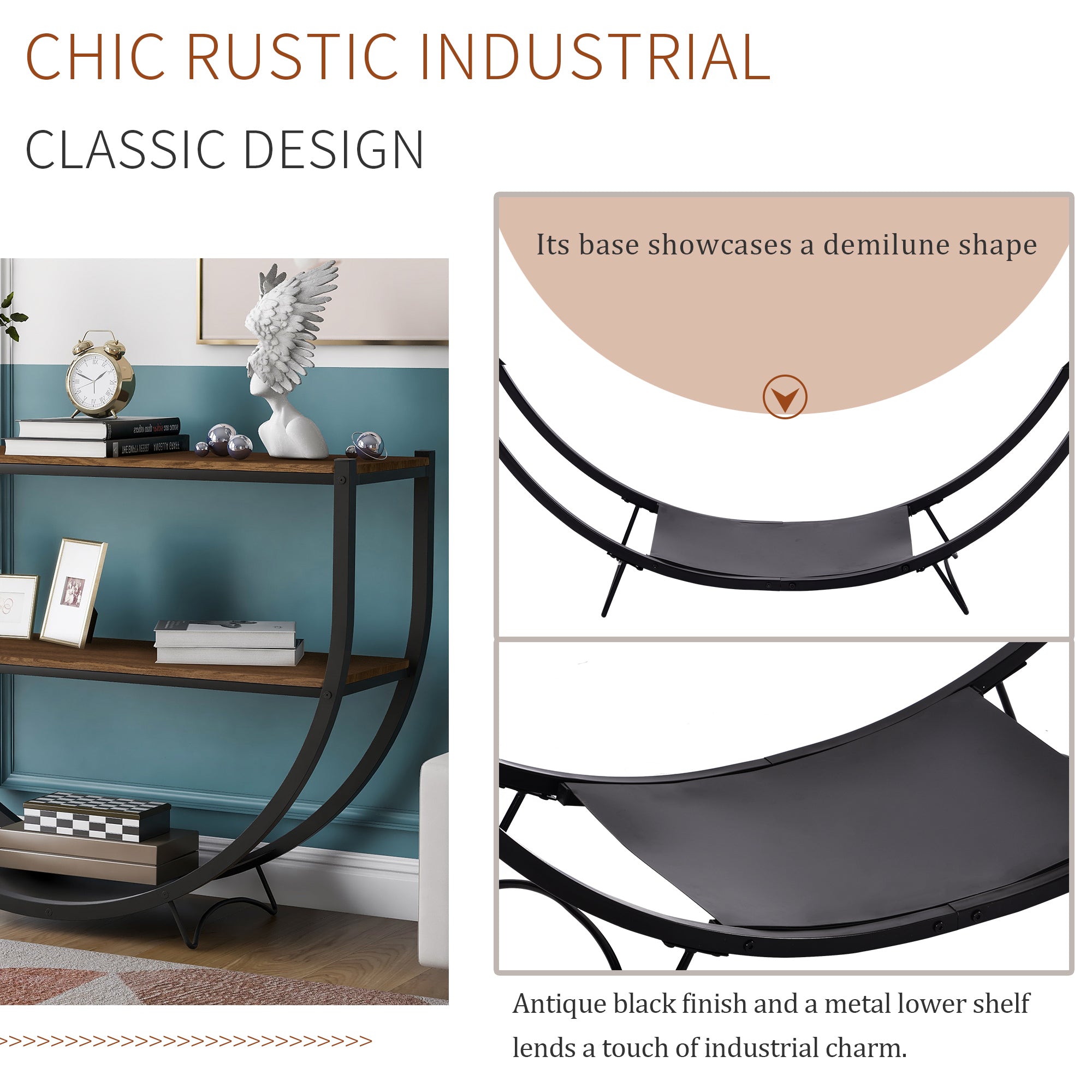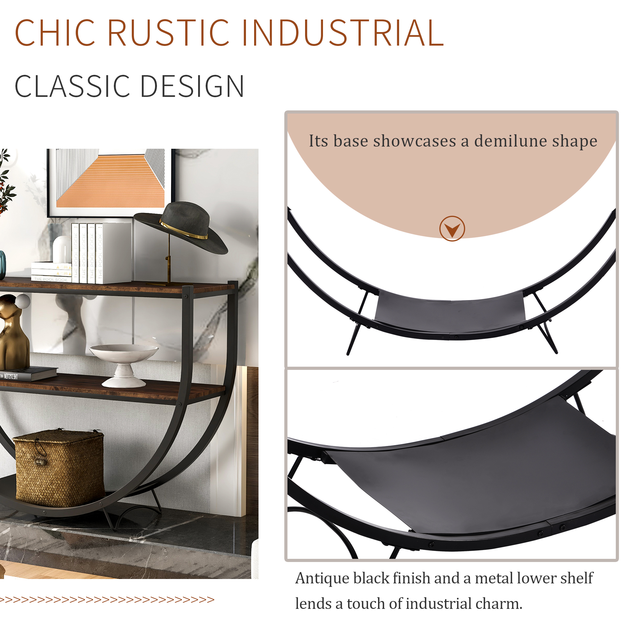 Demilune Shape \ Rustic Industrial Design \ Textured Metal Distressed Wood