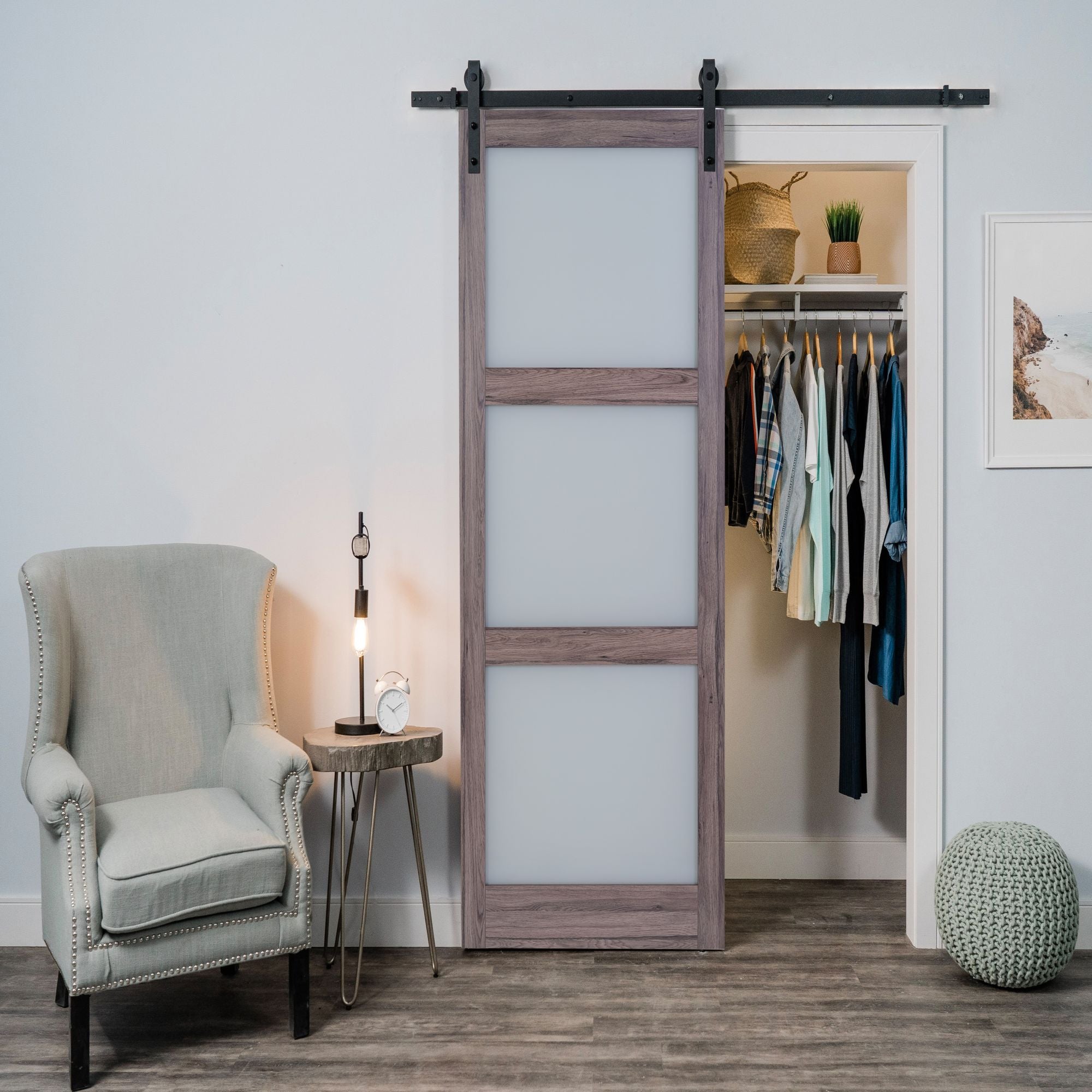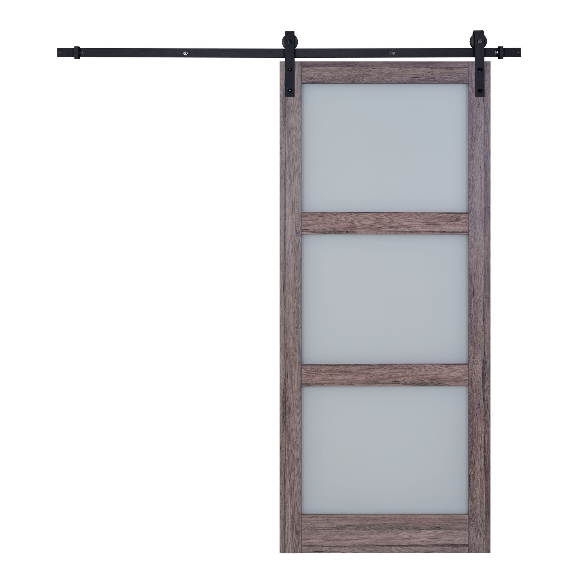 Sage Wood And Glass Barn Door with Installation Hardware Kit