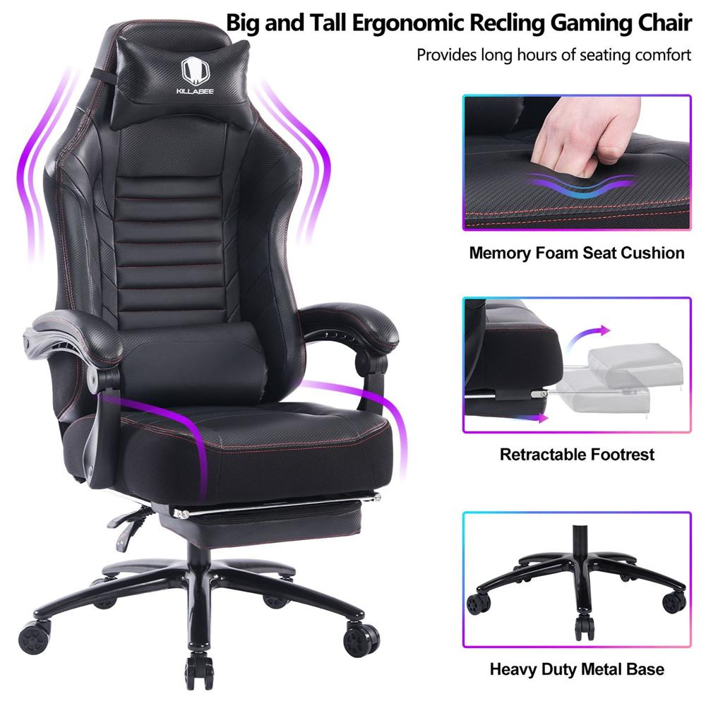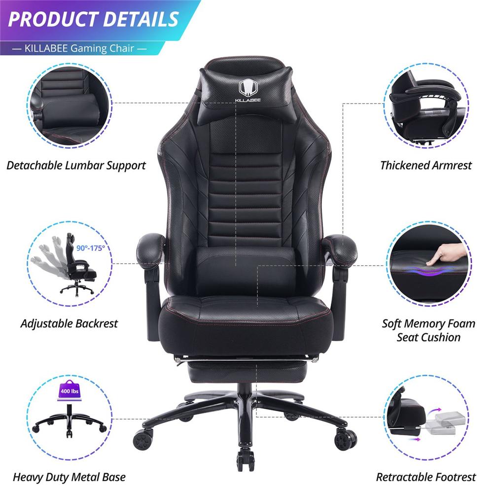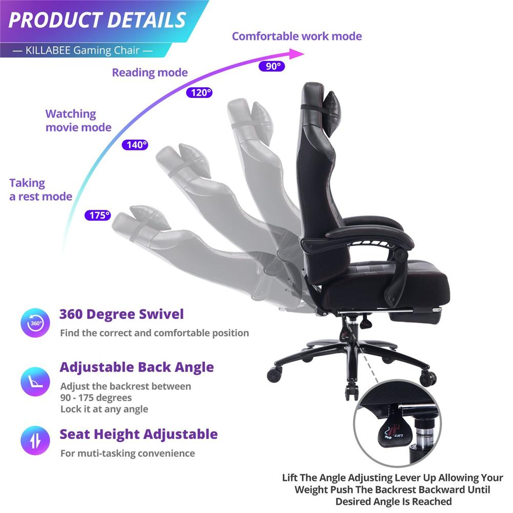 Selling Points✔ The most comfortable chair you have ever sat in: our game chair conforms to ergonomic design, with a particularly high back, gently embrace your body, and support your neck and spine.✔ Linkage armrest to enhance experience.✔ Retractable pedals, pull out the footrest to release your feet.✔ Height adjustable - everyone can use it.