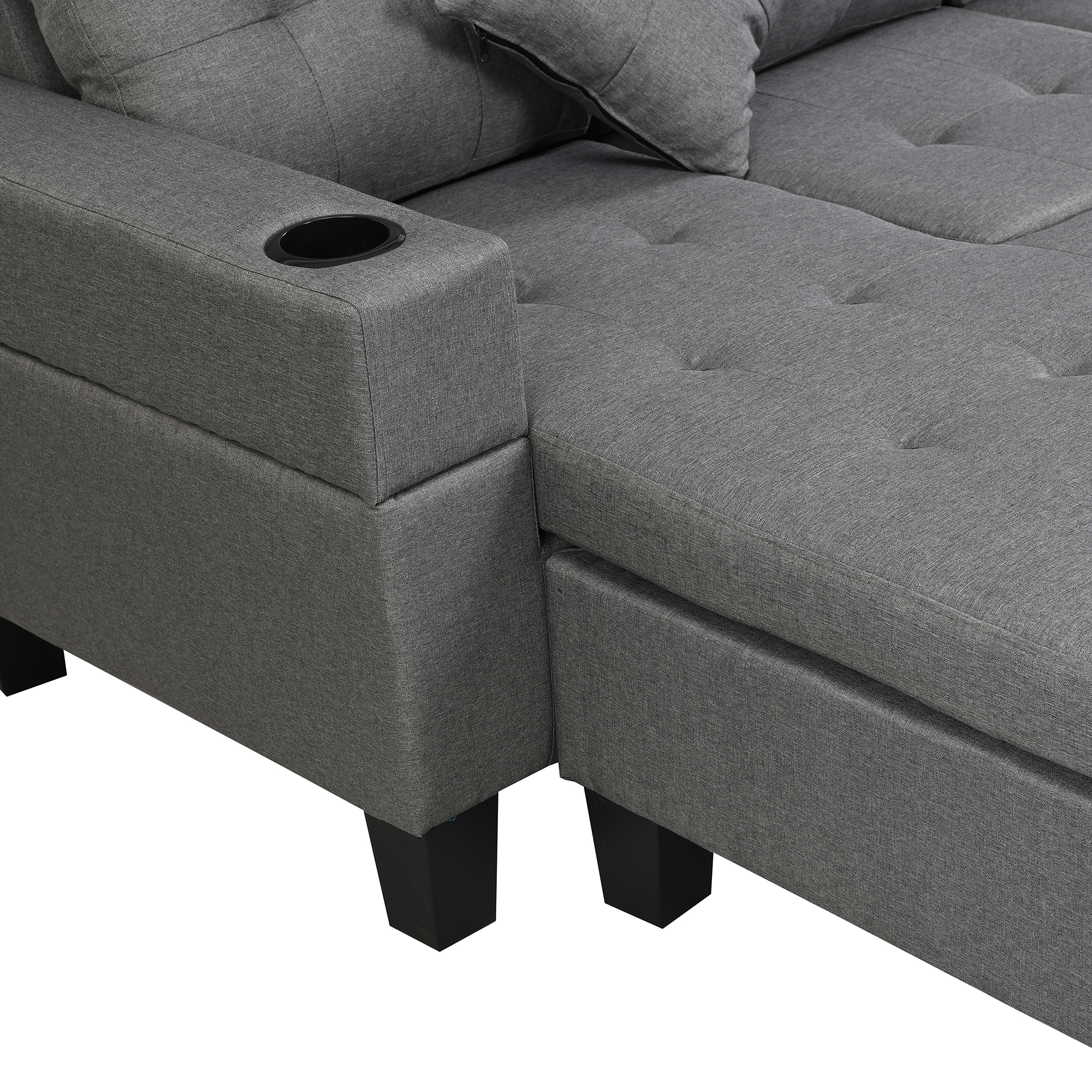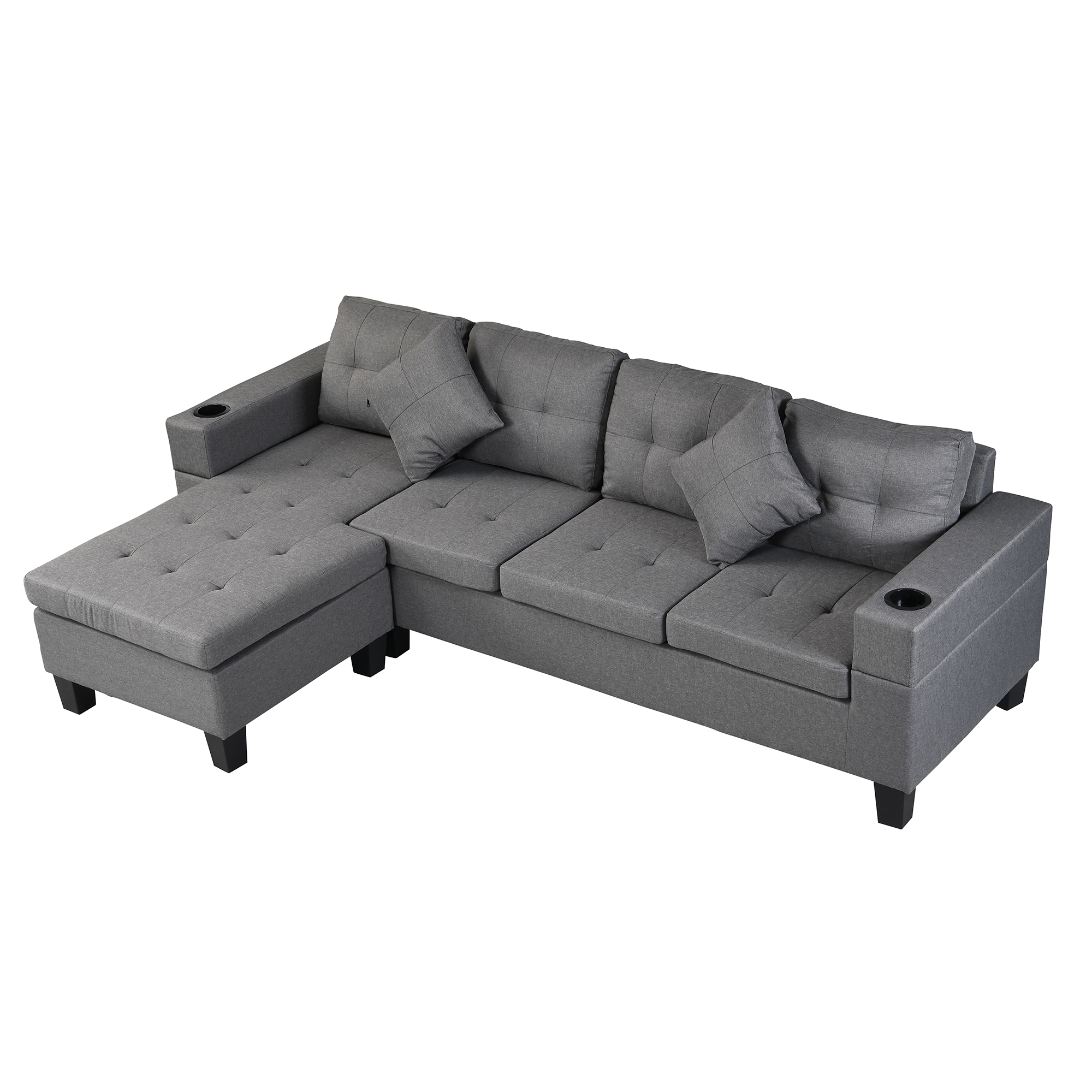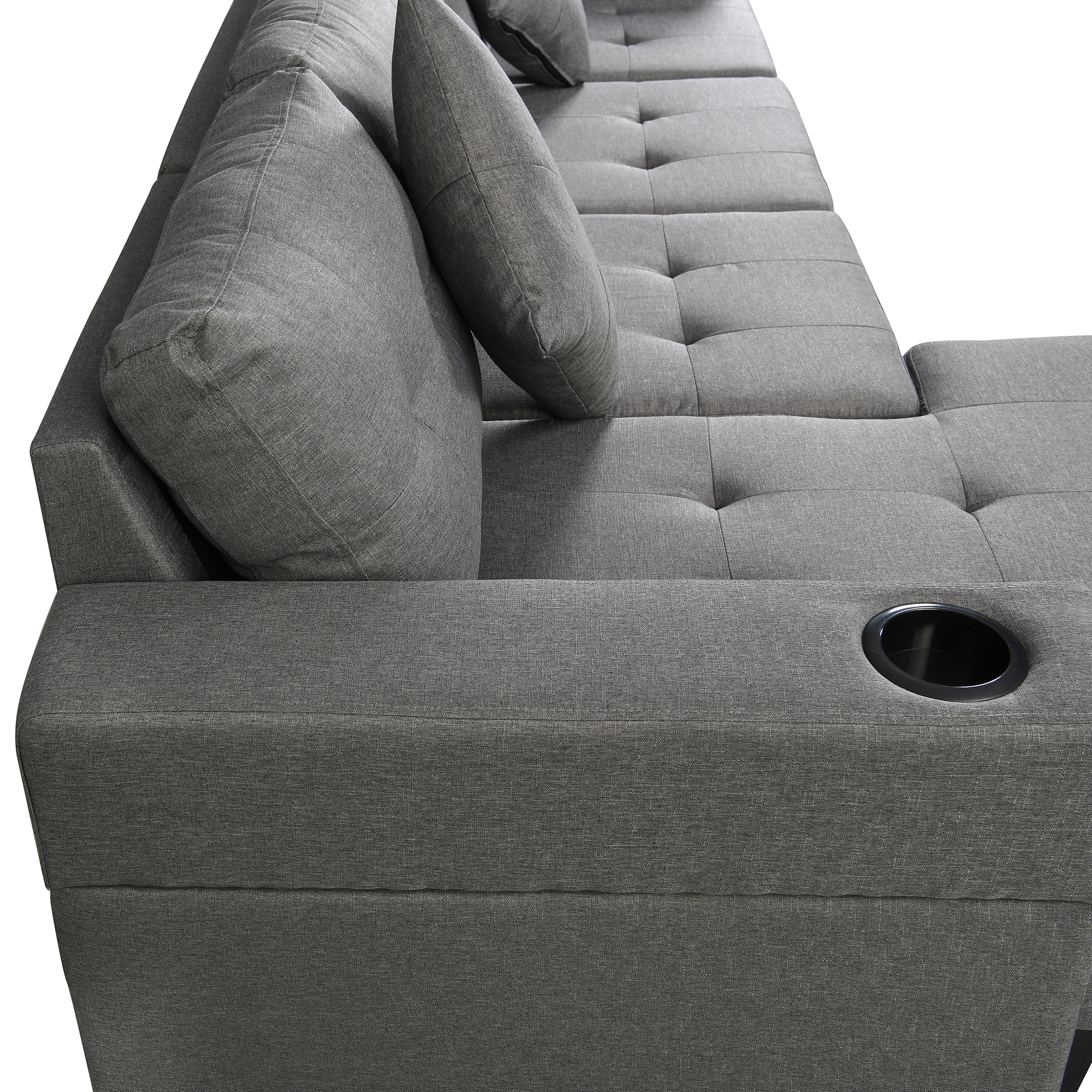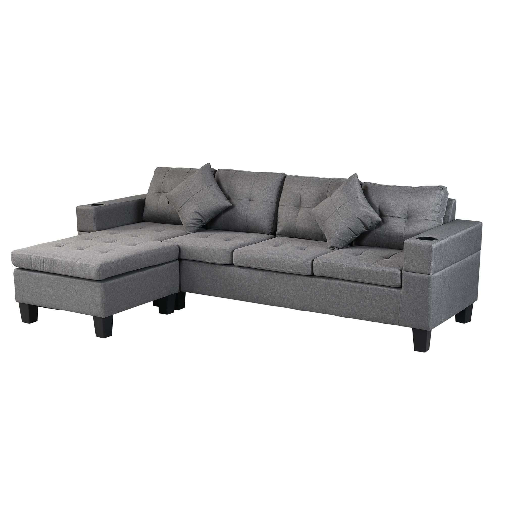 - sofa with Left or Right Hand Chaise and two cup holder (Gray)