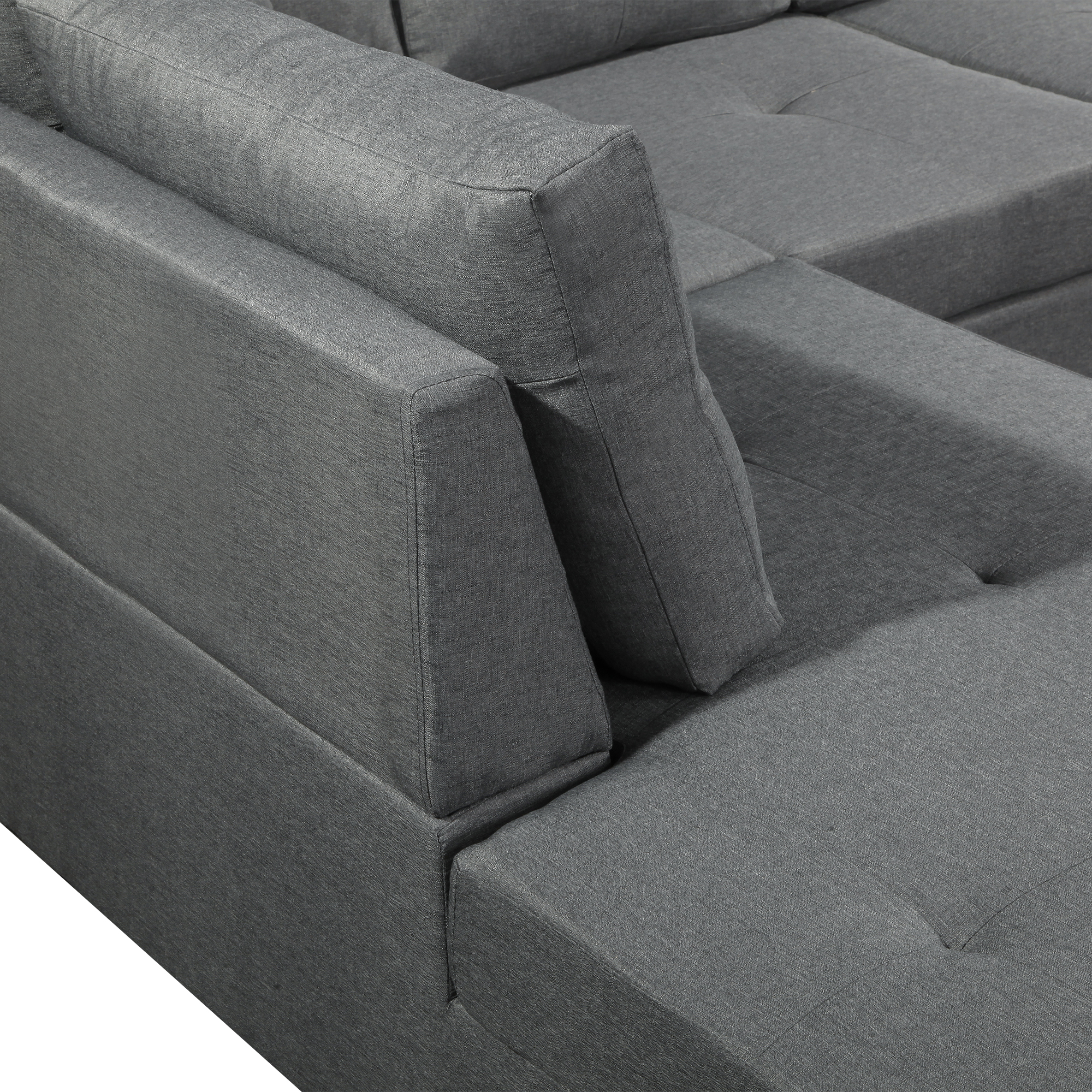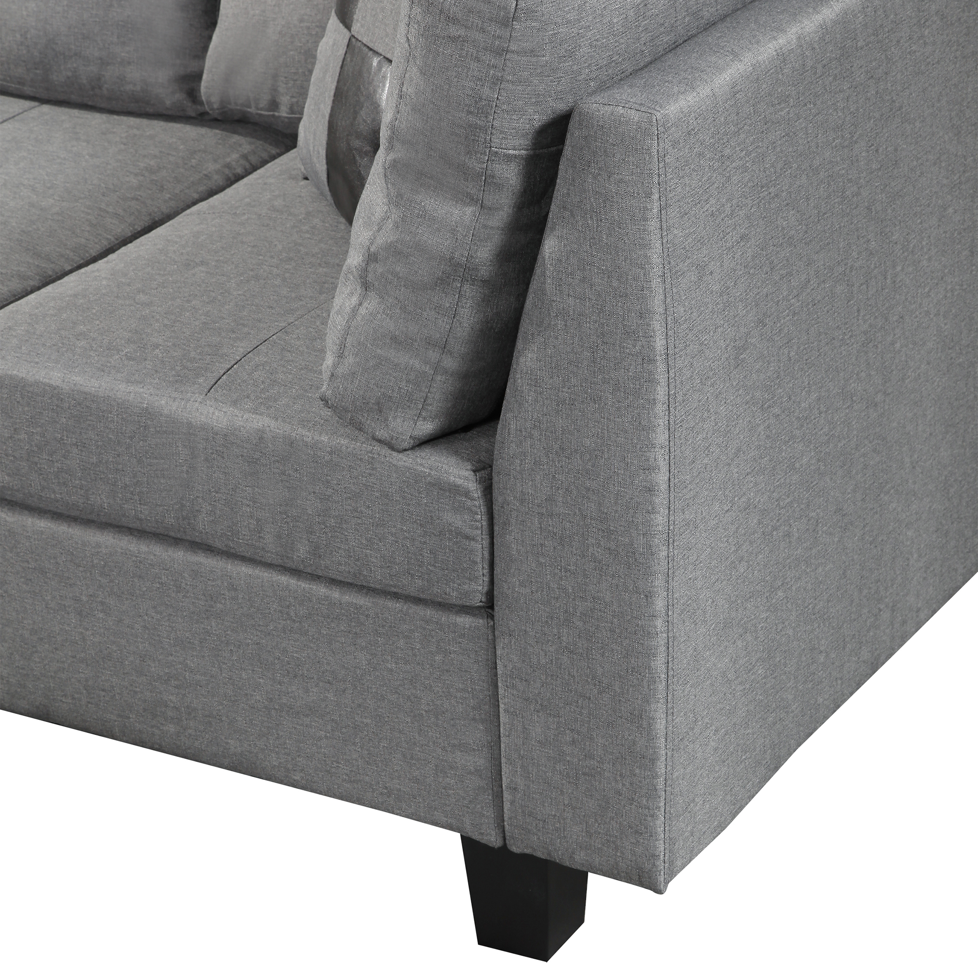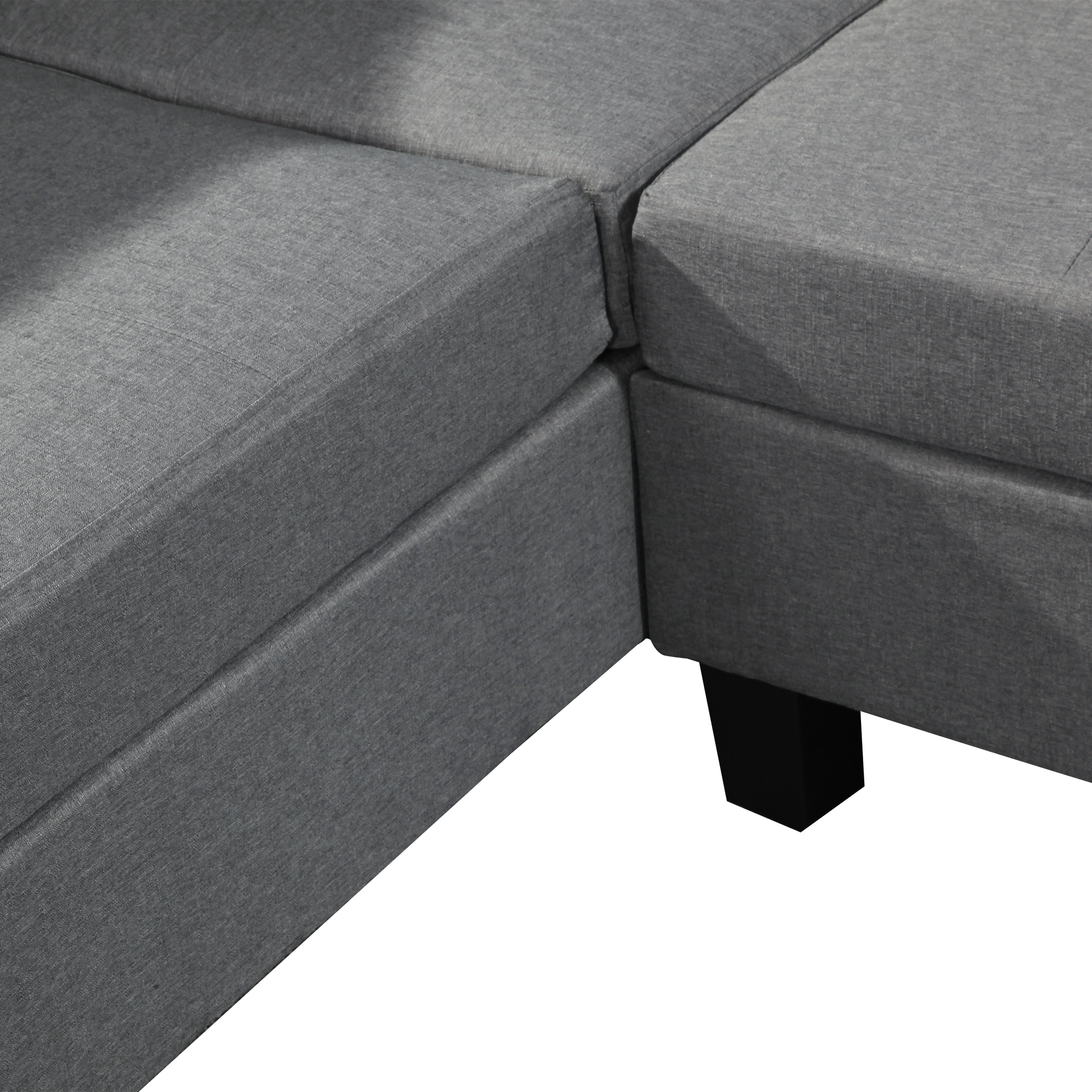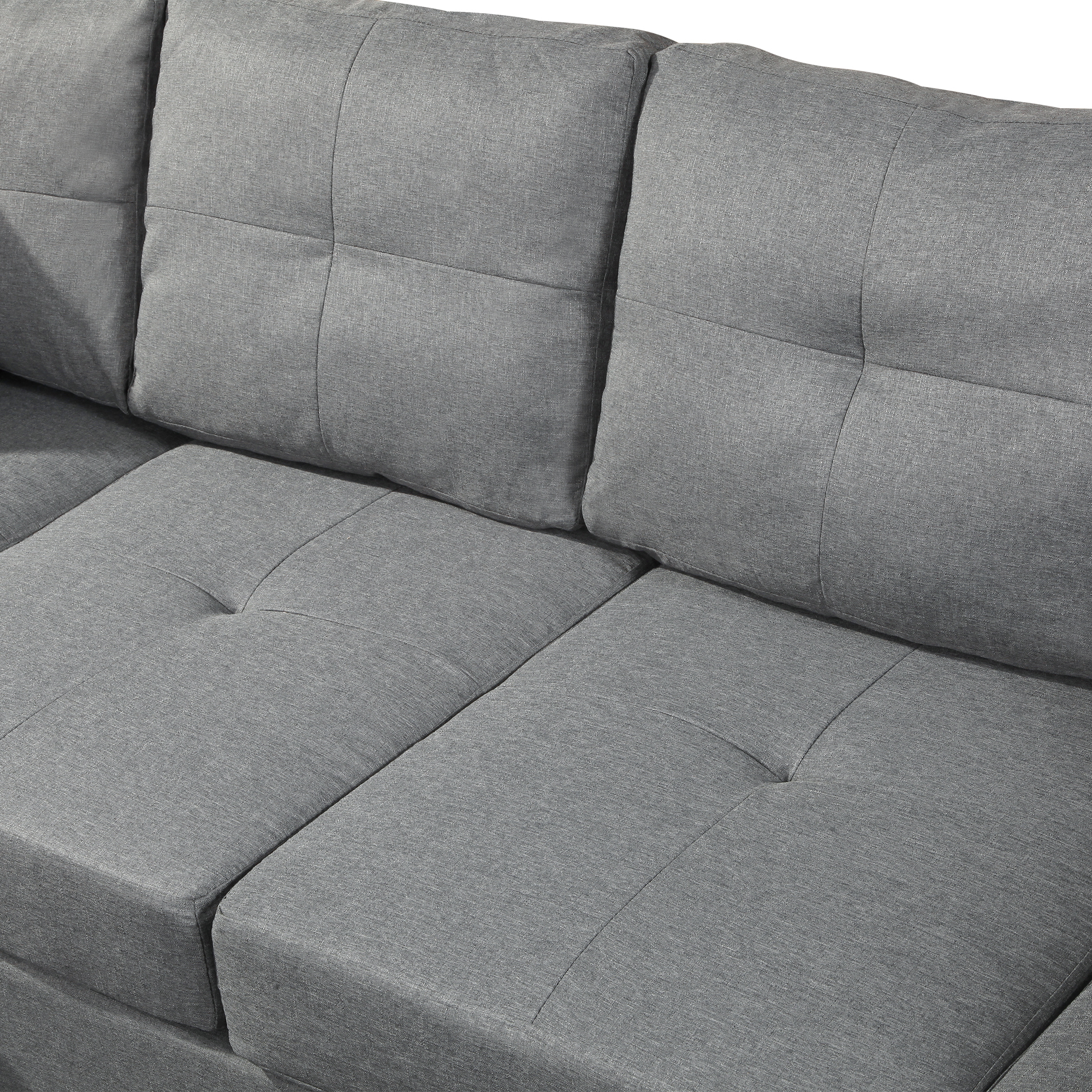 3-Piece sofa with 1 x 3-seat sofa, 1 x right chaise lounge, 1 x storage ottoman, 7 x back cushions,2 x throw pillows (Gray)