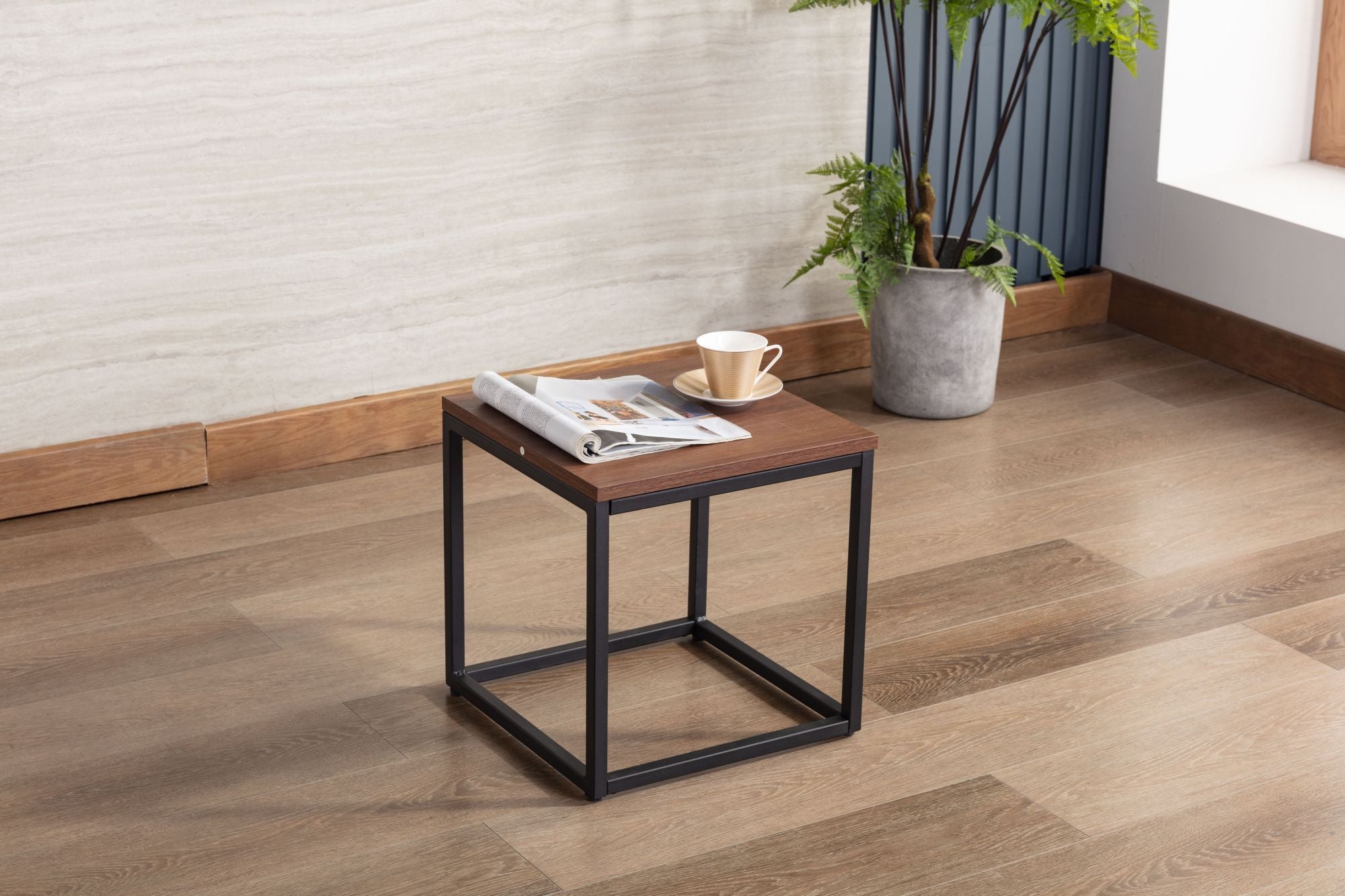 The end table is modern and stunning. With ample space for magazines, TV remotes, and other essentials, this table gives an eye-catching addition to your space that acts as the perfect finishing touch.