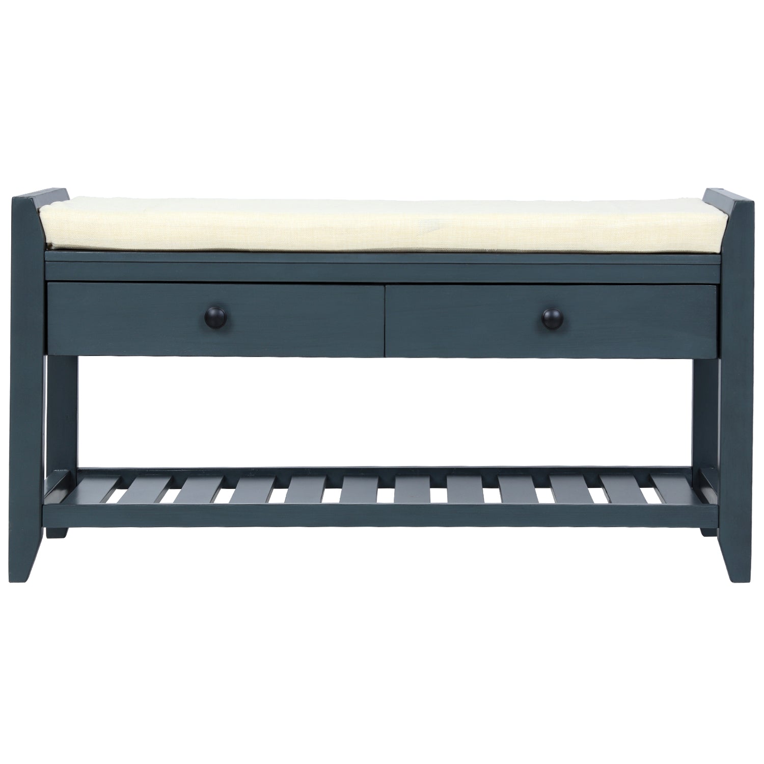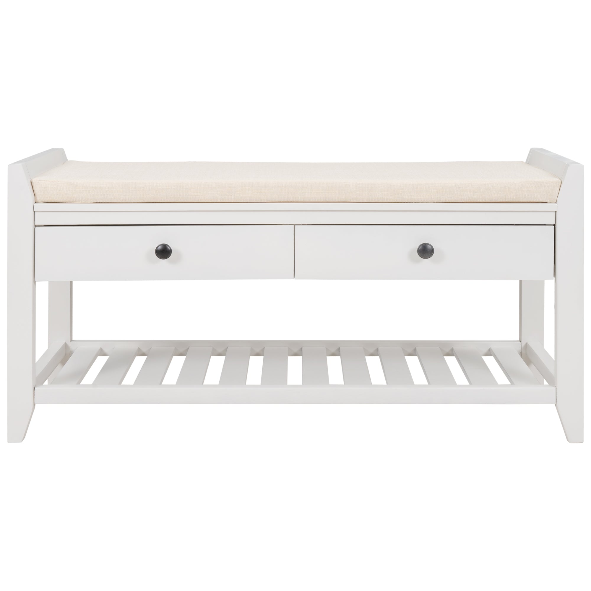Storage Solution: Ideal for family use, this classic bench functions as the perfect inconspicuous storage option to tastefully store your personal belongings rather than leaving them out in the open and accumulating clutter. Two spacious sliding drawers sit directly underneath the upper bench seating area giving you easy access to sandals, kids�shoes and more while the underside gridded rack can hold additional shoes or storage baskets to add your own personal touch.