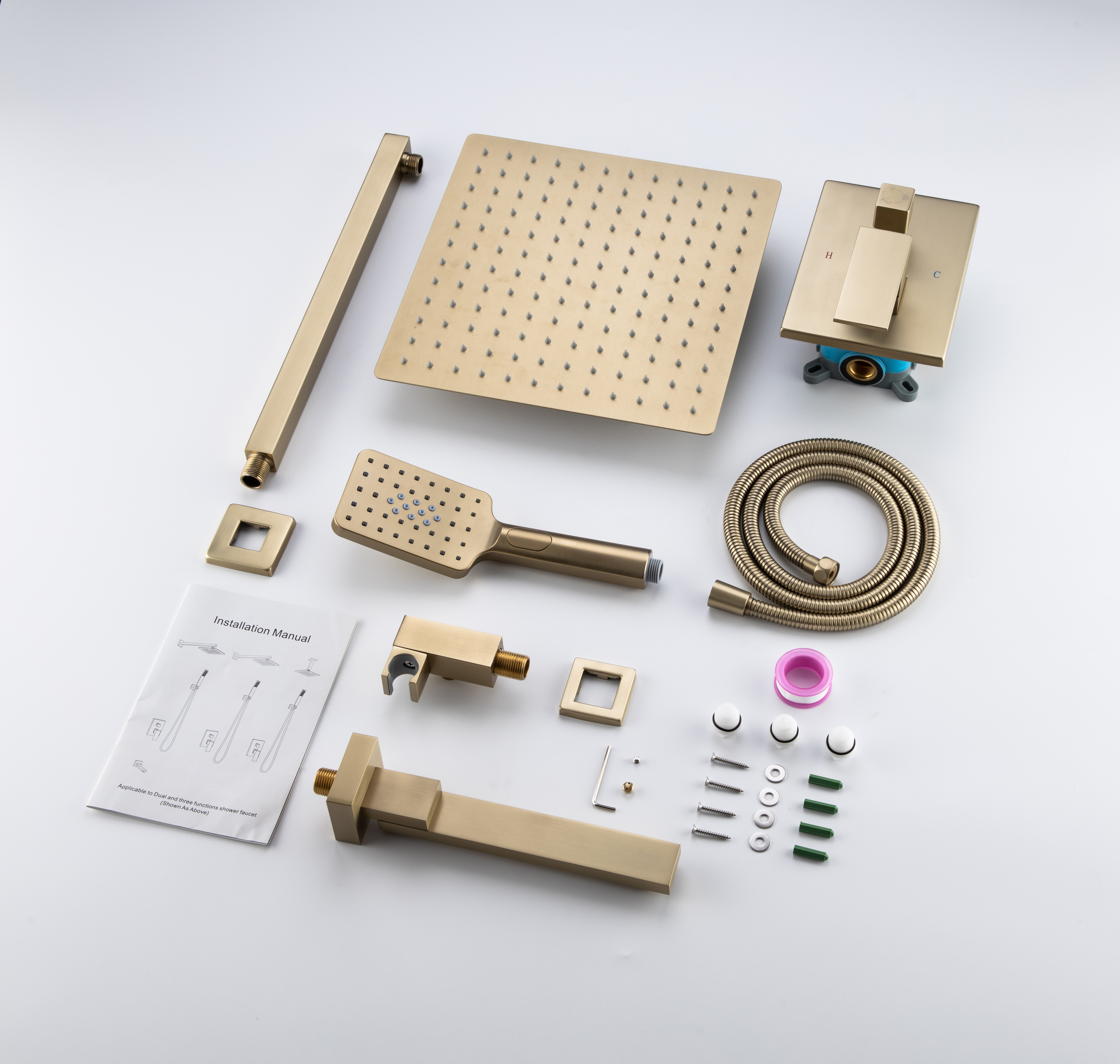 Shower Faucet with Valve: The rough-in valve body constructed of #59 solid brass is corrosion & tarnishing resistant. All the interfaces utilize US standard NPT thread and 1/2'' connection for easy installation. Ceramic Cartridge balances water pressure and protects you from any scalding or cold shock.